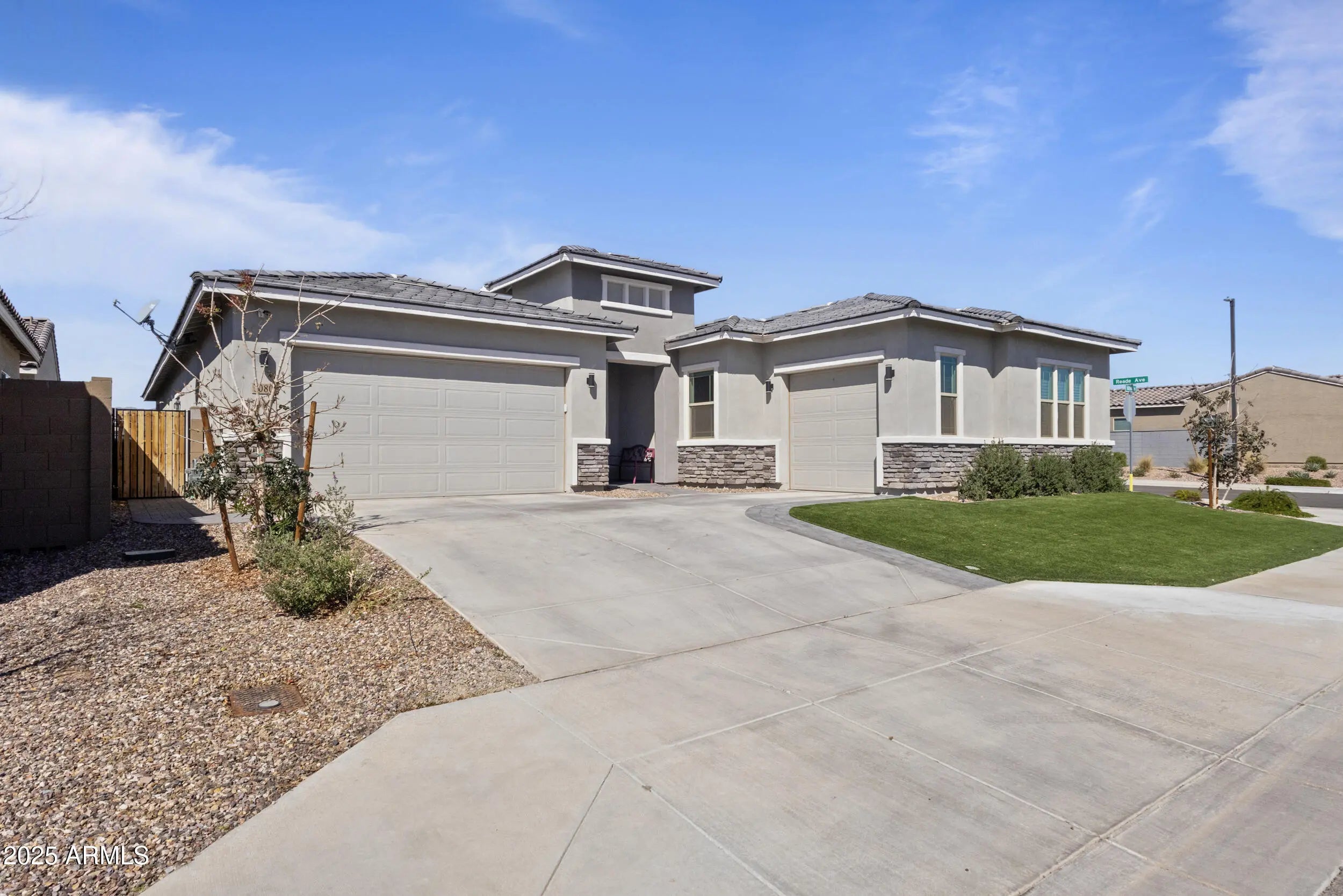 **Seller Concessions Available for rate buydown or closing costs!!** This beautifully designed home sits on a prime corner lot and welcomes you with a gated private courtyard. The backyard is made for Arizona living - low-maintenance landscaping, an extended covered patio, and stunning White Tank Mountain views set the stage for both relaxation and entertaining. A rare 4-car split garage offers room for cars, toys, gym or even a workshop. Inside, you'll find wood-look tile throughout the main living areas, abundant natural light, and designer finishes that create a warm, modern feel. The gourmet kitchen is the heart of the home, featuring quartz counters, sleek gray shaker cabinets, stainless steel appliances, a walk-in pantry, and a gas cooktop with wall oven—perfect for any home chef The floorplan is equally impressive: a formal dining room, spacious great room, flex space and a private primary retreat with two walk-in closets and a spa-like bath. Three additional bedrooms are thoughtfully placed on the opposite side of the home for privacy. Smart-home ready with Cox Fiber and built-in WiFi mesh, you'll enjoy seamless connectivity. And the location? Just 15 minutes from Luke AFB, with top-rated schools, shopping, dining, and freeway access close by. Move-in ready and designed for both comfort and functionthis one is ready to call home!