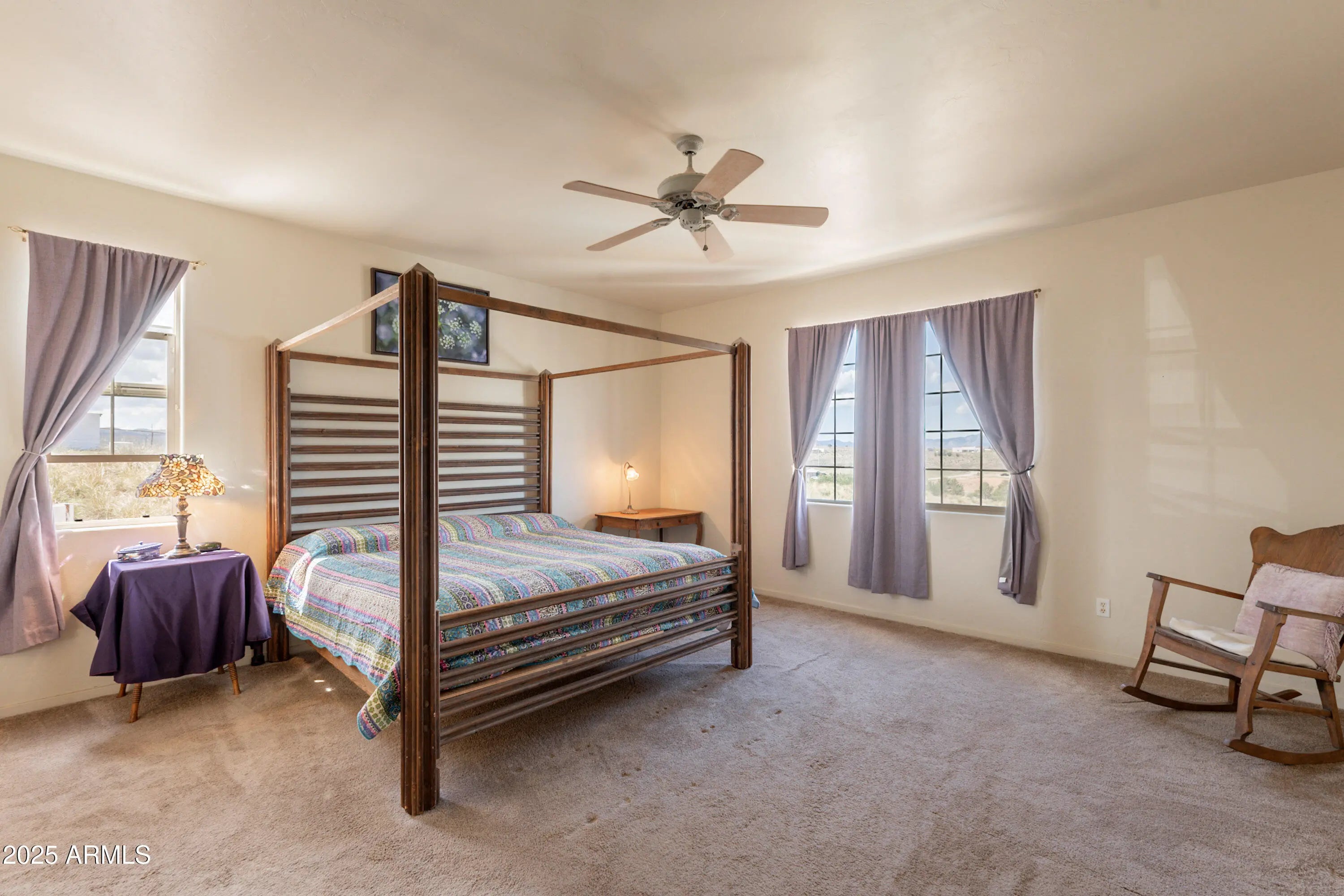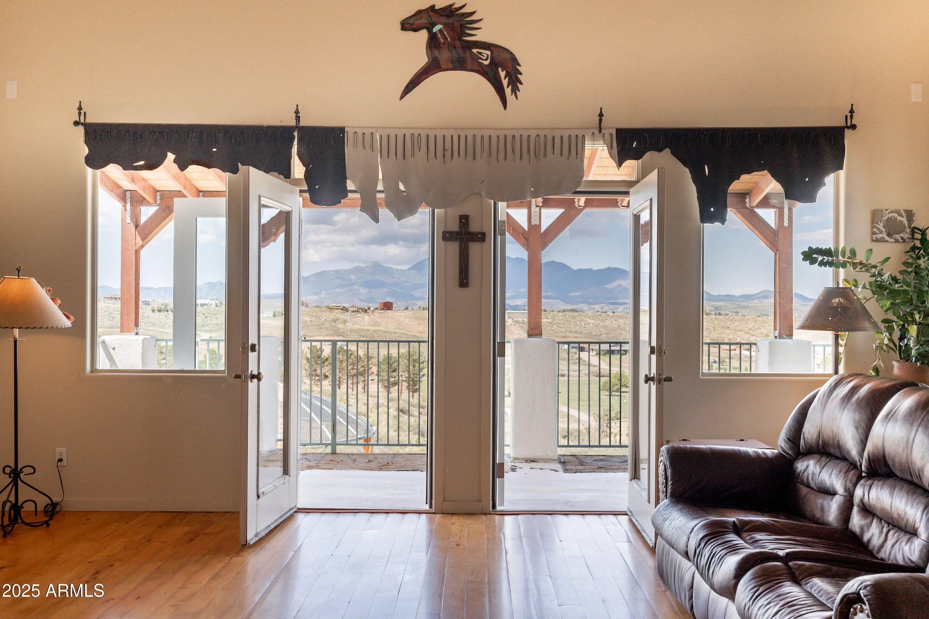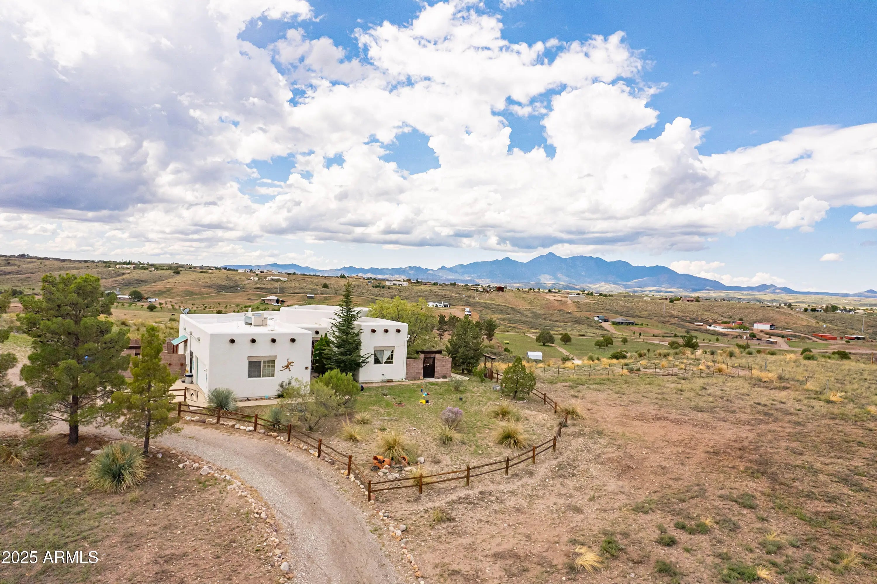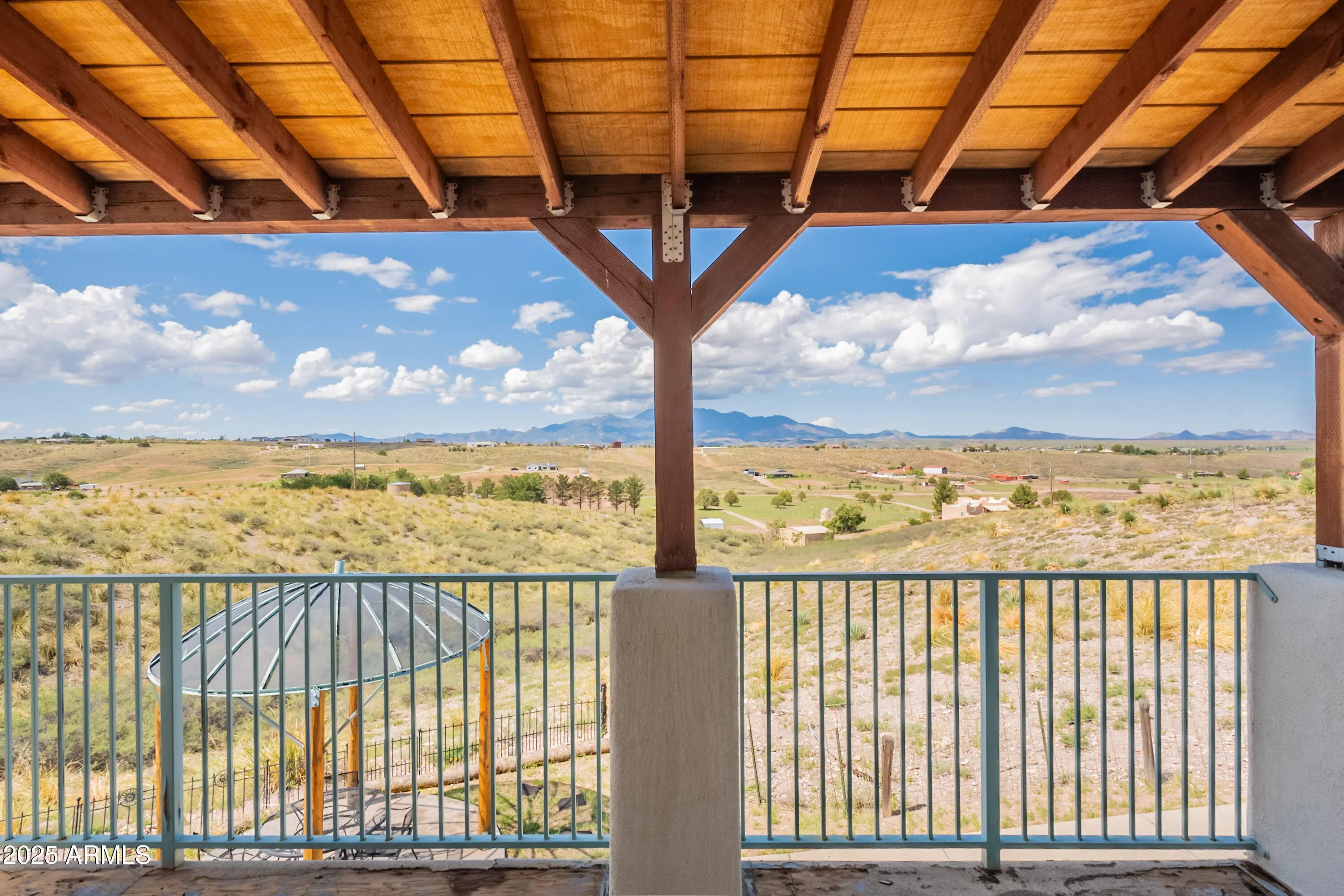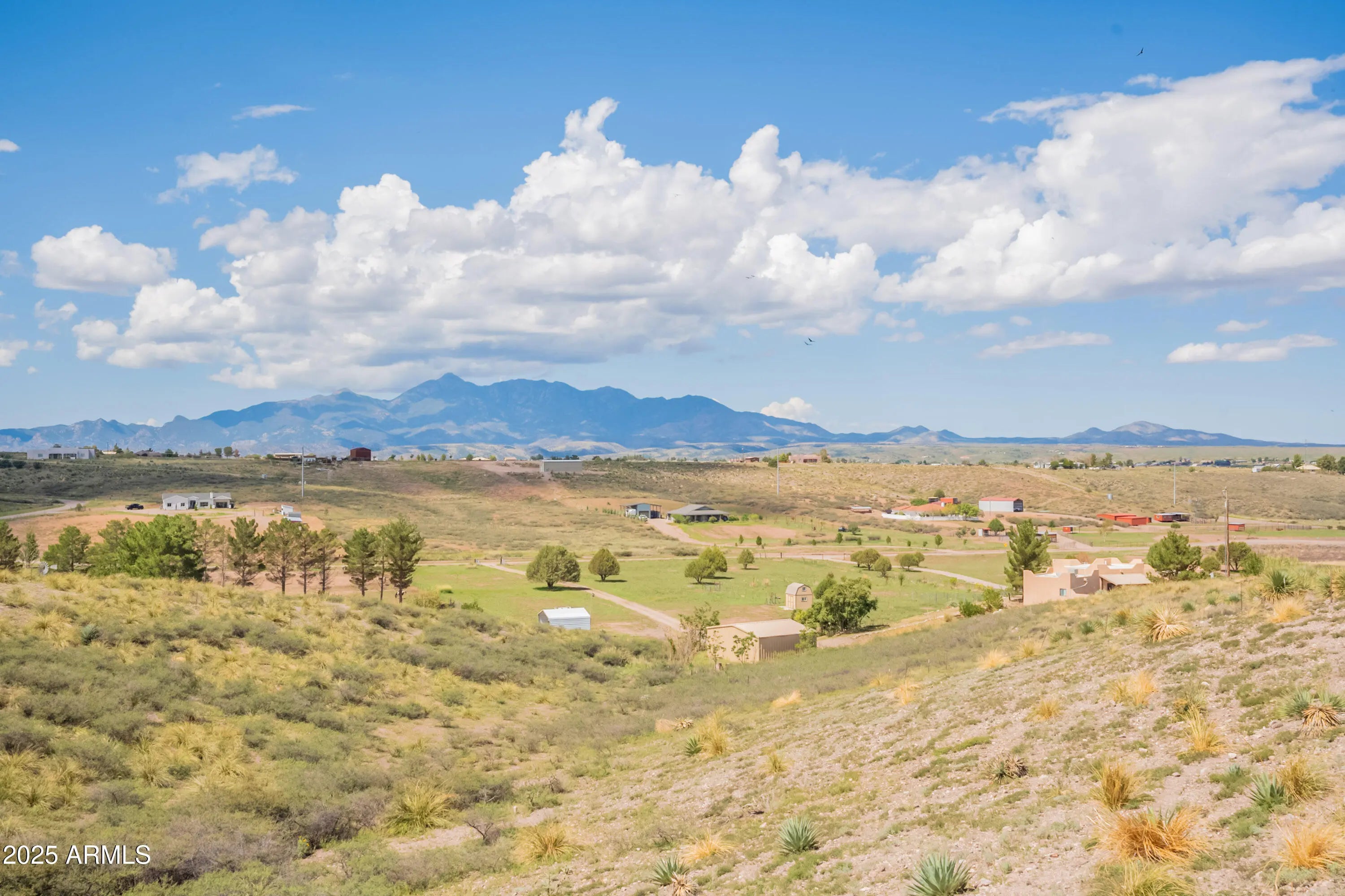 Welcome to the rare Sonoita Jewel, a 3057 square foot Santa Fe Contemporary home resting on nearly 5 acres of twilight kissed grasslands. With 4 bedrooms and 3 baths, it offers not just space but lifestyle. Nestled atop gently rolling grasslands and surrounded by the Huachuca, Whetstone, Mustang, Santa Rita and Empire Mountains, every window frames a breathtaking vista ideal for nature lovers and those valuing privacy and serenity. From sunrise over the Huachuca Mountains to fiery sunsets behind the Santa Rita Range, every moment is illuminated by sweeping views that define desert luxury. At over 3000 square foot, this Santa Fe contemporary style home offers generous living space, comfortable for entertaining, work from home flexibility or family gatherings.