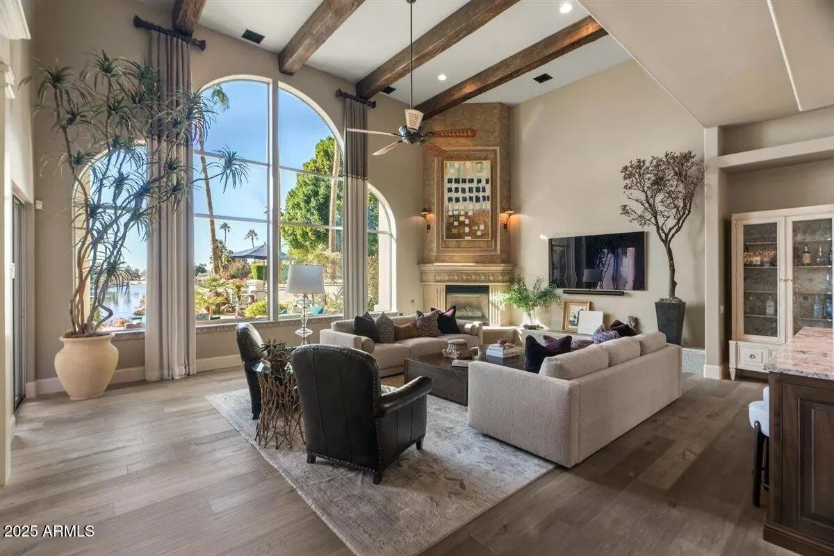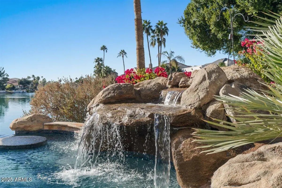 This home just won ''Best of Tour'' on the Gilbert Luxury Tour! Discover the epitome of refined living in this breathtaking waterfront estate! Nestled in prestigious West Lake Estates, this Interior Designer's personal residence offers a perfect blend of sophistication, comfort & unparalleled design aesthetic. More than a home, it is a statement of elegance, offering one of the finest living experiences in the valley. Take in all of nature's splendor w/our beautiful AZ sunsets in this impeccably designed, sprawling estate, with it's unique 1/4 mile water view. This estate home boasts 4 expansive bedrooms, 5 beautifully appointed bathrooms, a chef inspired kitchen, a beautiful and functional masterpiece featuring top-tier appliancesby Thermador, custom high-end cabinetry, double islands, and the heart of all the home's activities; all while capturing the amazing lake views! You will find multiple, expansive patios offering several places to dine, relax and enjoy the sparkling negative edge pool & spa, ideal for relaxing and enjoying the lifestyle that only Val Vista Lakes provides. Every detail in this estate has been meticulously designed including designer wall features, exquisite lighting, and sophisticated, artisanal finishes that exude timeless elegance with comfortable appeal.Car lovers rejoice, this home offers a rare, oversized 4 car garage so bring your toys! Val Vista Lakes, a pinnacle lifestyle destination in the valley of the sun offers lakes, tennis, pickleball, sport courts, walking paths, swimming pools and a full clubhouse brimming with amenities, clubs and social opportunities. Just steps away the community provides churches, schools and a vibrant dining and shopping experience. Don't miss this once in a lifetime opportunity to own one of the most beautiful homes in the valley and experience the lifestyle you deserve!
