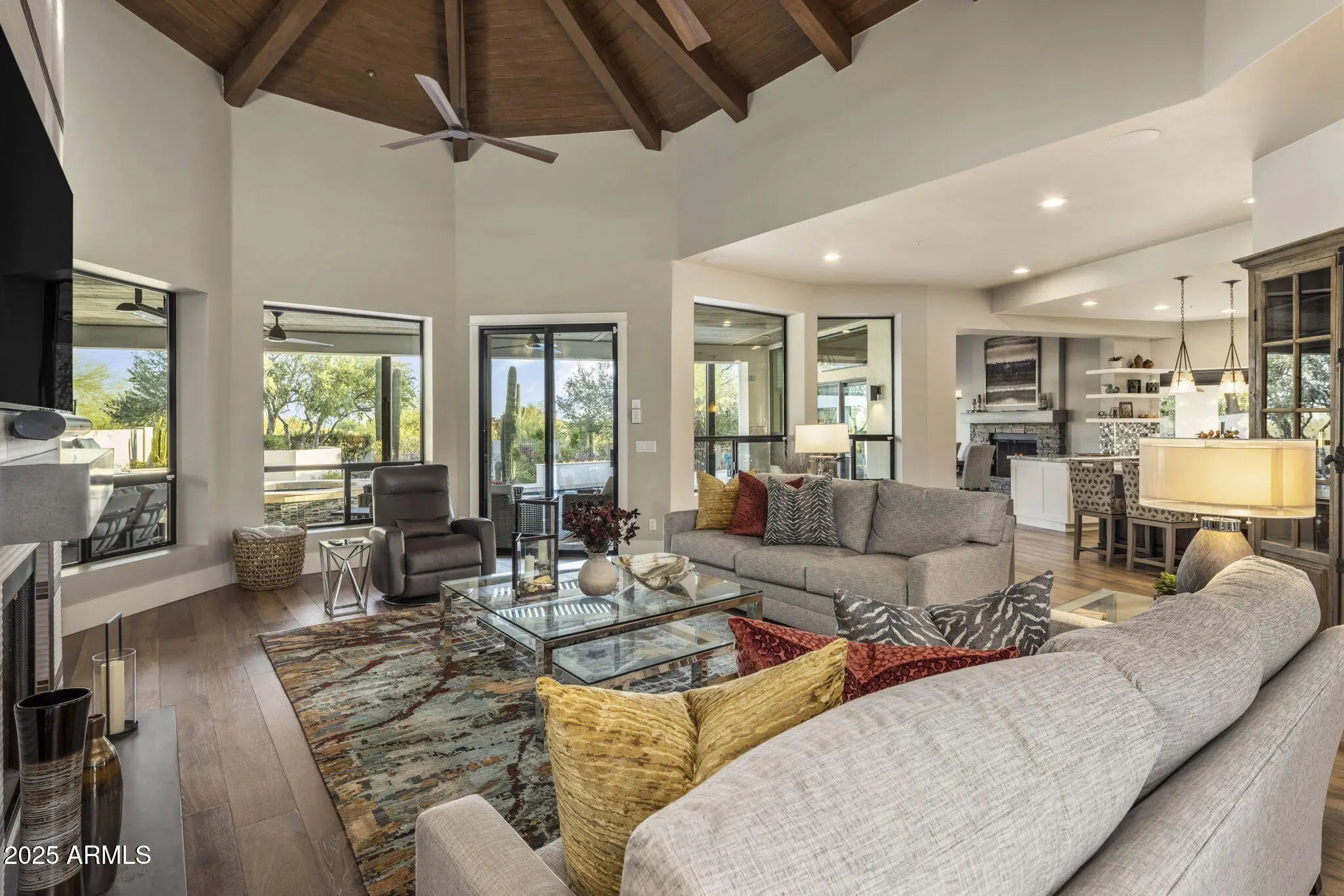 Pinnacle Peak Country Club Estates / Guard Gated Private Golf Course Community. Renovated Inside & Out, 3 Bed, 3 Bath, 3 Car Garage, 3085 sq ft Residence / Detached Two Bed, Two Bath, Full Eat-In-Island Kitchen, Laundry, Two Large NanaWall Accordion Glass Doors to the Covered Patio-Poolside 1507 sq ft Guest House / Total Living 4592 sq ft. South Facing Backyard / Mountain Views / Heated Pool/Spa / Water Feature w/Linear Fire Line / Owned Solar System / Whole-Home Reverse Osmosis System.