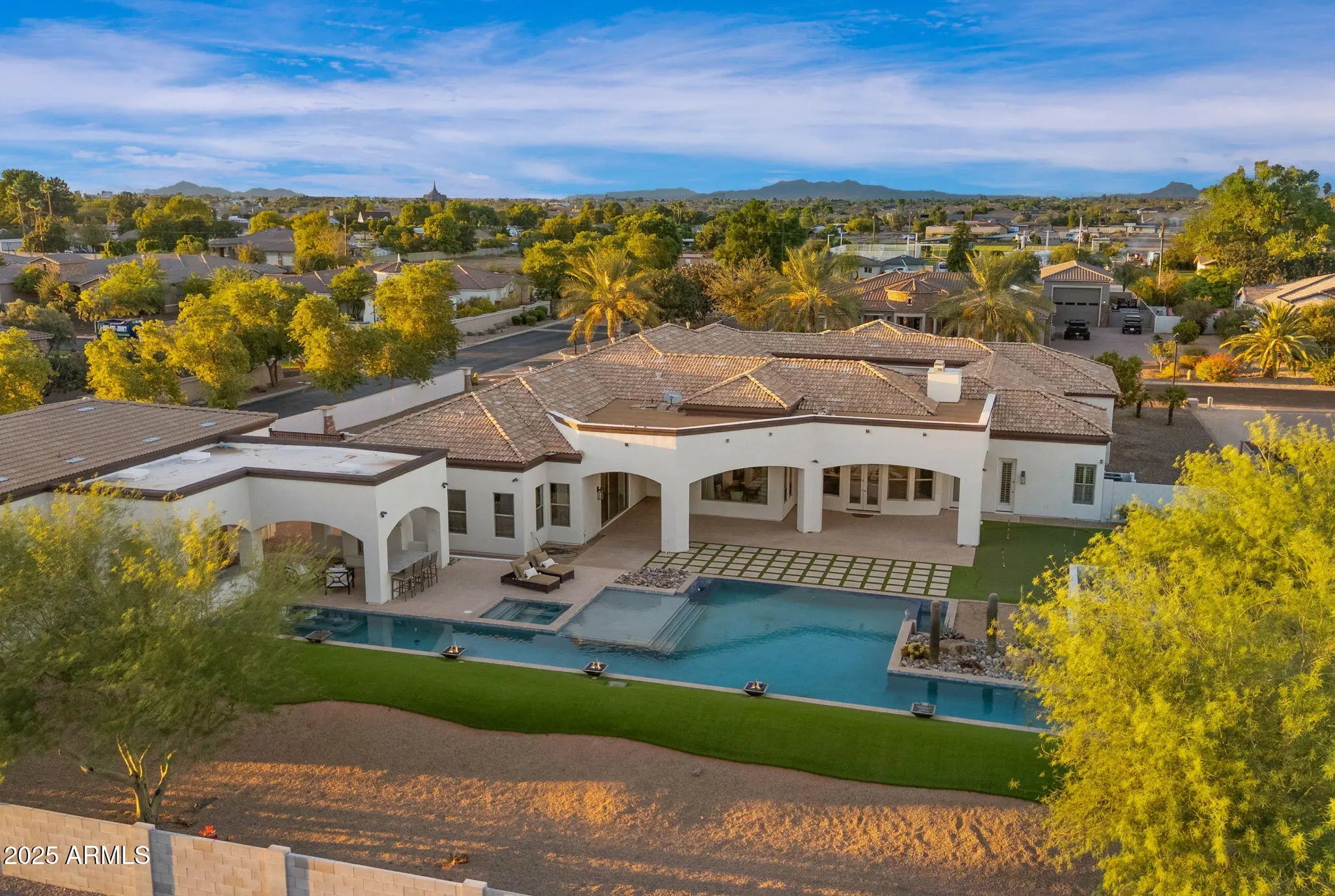 Experience elevated living in Weston Ranch, a hidden gem in Gilbert...perfect for car collectors or enthusiasts with a FULL SIZE RV garage (55'x30') with additional 4+ car storage in addition to the STUNNING 4 car showcase garage with marbleized epoxy coated floors and state of the art LED honeycomb lighting for displaying your favorite cars! This stunning 7-bedroom, 6 full + 2 1/2 bathroom estate redefines luxury with spacious living, stylish updates, and an entertainer's dream design. From the moment you step inside, you're greeted with brand-new wide-plank wood floors, fresh carpet and paint that create a light and inviting atmosphere throughout. Upon entry you'll be drawn into the courtyard in the center of the home with 360 degree views of the entire home...perfect for enjoying the fire and fountain features while having your morning coffee or an evening cocktail. This home offers plenty of room to gather, including expansive living areas and even a private home theater for the ultimate movie night experience. Outdoors, your very own resort-inspired retreat awaits on the nearly acre lot. Enjoy dipping into the oversized negative-edge pool with spillover, get your exercise in by doing laps in the extended lap pool area, or swim up and sit at the swim up bar while hosting family & friends. Relax in the spa, or practice your short game on the custom turf putting green. A built-in BBQ and outdoor kitchen set the stage for unforgettable backyard entertaining in this true resort paradise! Car enthusiasts will love the RV garage, which not only provides abundant parking (4+ cars PLUS RV) but also provides a convenient half bathroomfor the pool area perfect for seamless indoor-outdoor living. Located in the exclusive gated community of Weston Ranch, this property combines elegance, comfort, and amenities you'll enjoy every single day. Weston Ranch sits just across Queen Creek Road from Gilbert Regional Park where you'll love all of the outdoor opportunities the park provides like a splash pad, pickleball and tennis courts, children's play parks, sport courts, lake with walking trails, amphitheater for concerts in the park, and the forthcoming Surf Park with lazy river, wave pool and so much more...you can't beat this location if you tried! Minutes to San Tan Mall or Queen Creek marketplace with so many dining and shopping options you'll never need to go anywhere else! Schedule a private tour to see this amazing home!