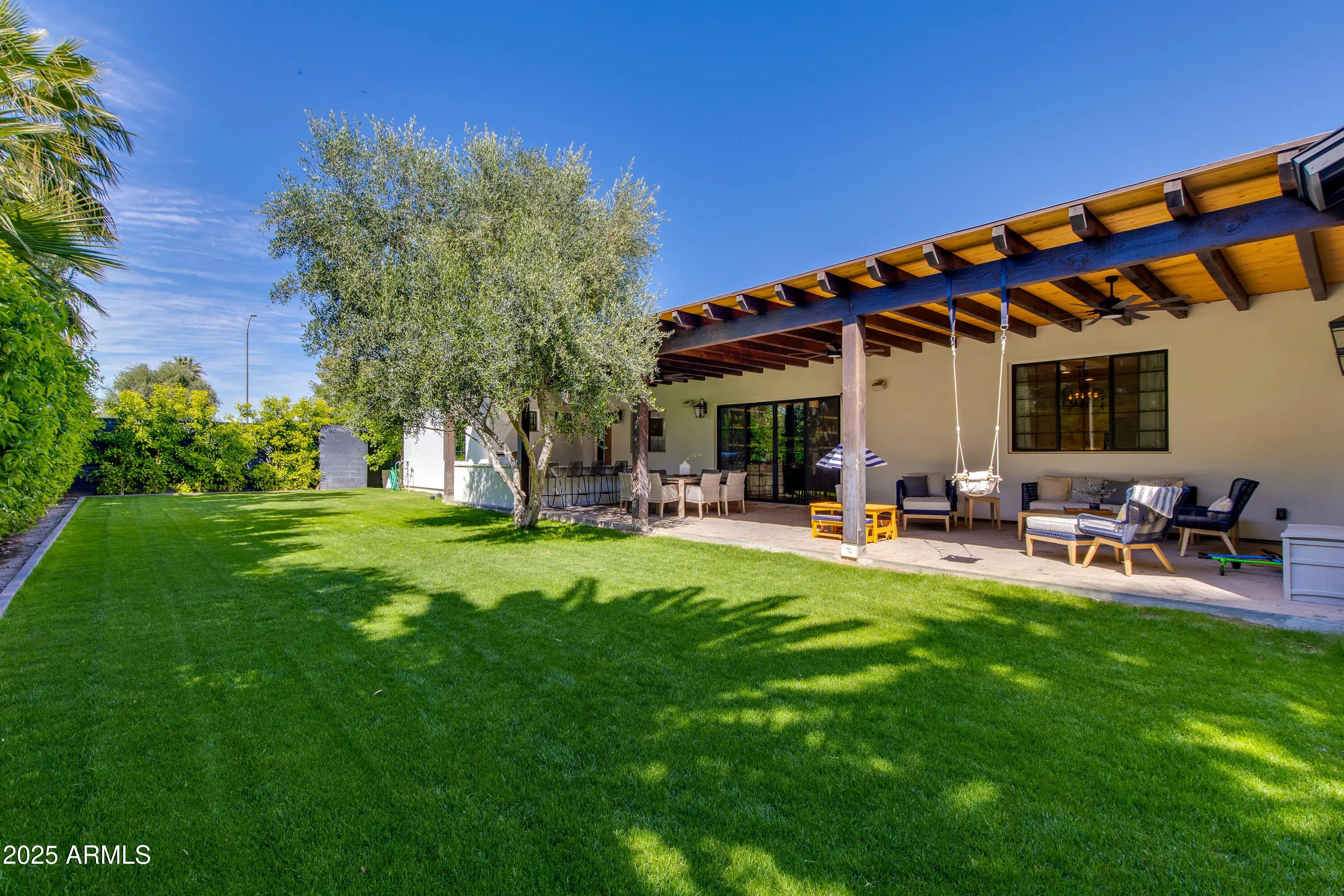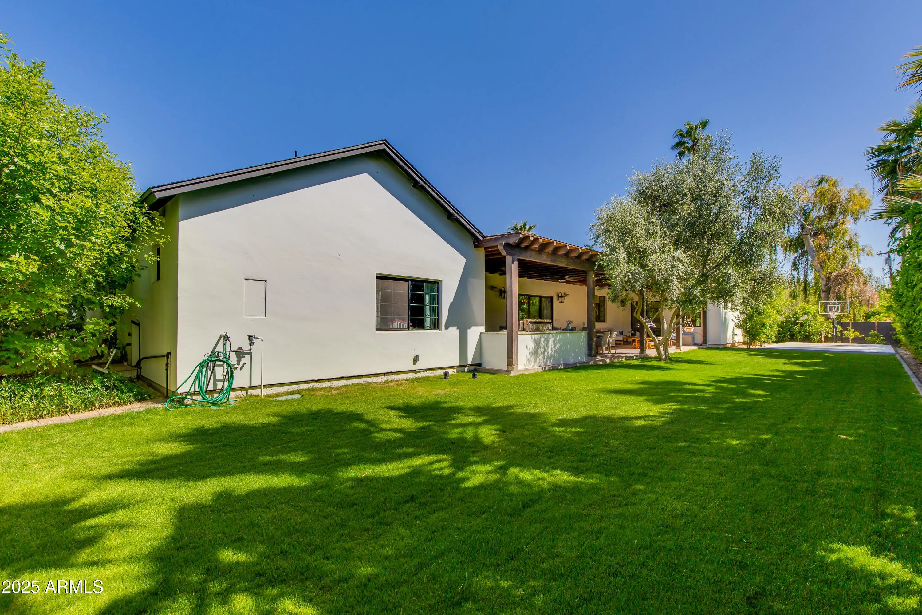Warm and spacious 5-Bedroom Custom Luxury Home built for the owners in 2021 by OPA Development, beautifully landscaped with mature trees and hedges. This expansive 5-bedroom, 5-full-bath, 2-half-bath home offers 5,810 sq ft of elegant living on a 16,884 sq ft lot. Designed for modern living, this custom floor plan offers everything a buyer could desire starting with a beautifully designed master-suite (split floor plan) including a fireplace, private backyard exit, soaking tub, rain shower, his-and-her private toilet rooms, his-and-hers separate closets. Uniquely, the home includes 2 laundry rooms, 2 home offices, a home gym, and a playroom (perfect for kids, media or your hobbies) PLUS a stunning 50FT by 15FT (750 SF) covered patio featuring exposed wooden beams! Lot also allows for an ADU, mother-in-law suite, or pool under new zoning regulations. This home is an Entertainer's Dream with a formal dining room with custom cabinetry and dual wine refrigerators, spacious office/den with French doors, and a chef's kitchen featuring Thermador appliances (36'' fridge/freezer, 48" chefs gas stove top, double ovens), quartzite countertops, eat-in-kitchen nook, and a generous butler's pantry. Each wing was thoughtfully planned for private luxury. Each bedroom with an en-suite bath and walk-in closet. Outdoor living features a private backyard with a sport court, an outdoor kitchen, 48" grill, and beautifully landscaped grounds with Arizona's natural irrigation and wireless drip systems. In the heart of North Central, you are close to Murphy's Bridle Path. Nearby Madison Simis and Madison Meadows and private schools include Brophy Prep, Xavier Prep, All Saints Episcopal Day School, St. Francis Xavier, and MTA. This home seamlessly blends luxury, functionality, and locationperfect for families seeking comfort, style, and room to grow.