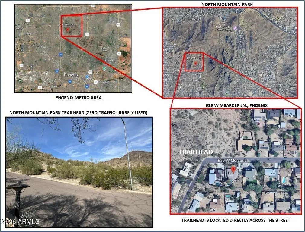 see supplemental remarks section North Central Phoenix - Rare Block-Built Opportunity with 360° Views & Trailhead Access! Prime North Central location directly across the street from the North Mountain Park trailhead - step out your door and hit the trails in one of Phoenix's premier mountain preserves! This solid block-constructed home enjoys breathtaking 360-degree panoramic views of the surrounding mountains and city lights, all from a quiet, peaceful neighborhood surrounded by million-dollar-plus homes. Standout features include: Super cool diving pool - perfect for relaxation or adding instant appeal Large lot with dedicated RV parking space Backyard suitable size for garden vegetables, chickens and goats Rare solid block construction - durable, timeless, and built to last Garage plans + complete with draft blueprint drawings already in hand for a second-story addition (expand now and capture serious upside) Excellent positioning next to high-end neighboring properties - tremendous potential to rebuild bigger and better Living next to a trailhead means stepping out your door and instantly accessing miles of hiking and biking trailsno driving, no parking hassles, just pure adventure right at your doorstep. Enjoy daily sunrise or sunset walks, spontaneous evening rides, or weekend-long explorations without ever leaving your neighborhood. The proximity to nature boosts physical health with effortless exercise, reduces stress through easy access to fresh air and scenic views, and adds a premium lifestyle factor that's hard to find in the city. Properties bordering trailheads often hold strong value and appeal to active buyers, as the convenience of endless outdoor recreation becomes a daily reality rather than an occasional outing. Whether you're training for a race, walking the dog, or simply unwinding after work, having miles of trails literally across the street transforms everyday living into something extraordinary. This is a true diamond in the rough with strong bones and incredible location. The home needs a new roof (seller offering $15,000 roofing credit at closing or scheduled replacement) and mostly cosmetic updates, but the payoff for the right buyer or investor will be substantialespecially with the trailhead access, views, lot size, and proximity to luxury homes. Sold strictly as-is. May not appraise at list price due to condition. Attention Investors & Visionary Buyers: No blind offers, please. Bring your contractor, your vision, and your best offer, this is a rare chance to transform a well-located property in one of Phoenix's most desirable areas. Owner/Agent - Arizona licensed real estate agent. Don't miss this North Central gem with trailhead access, endless views, and real potential.