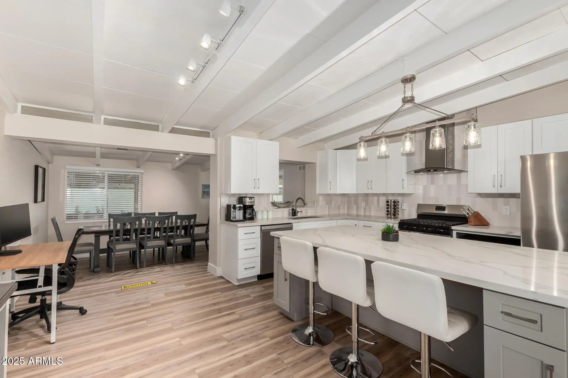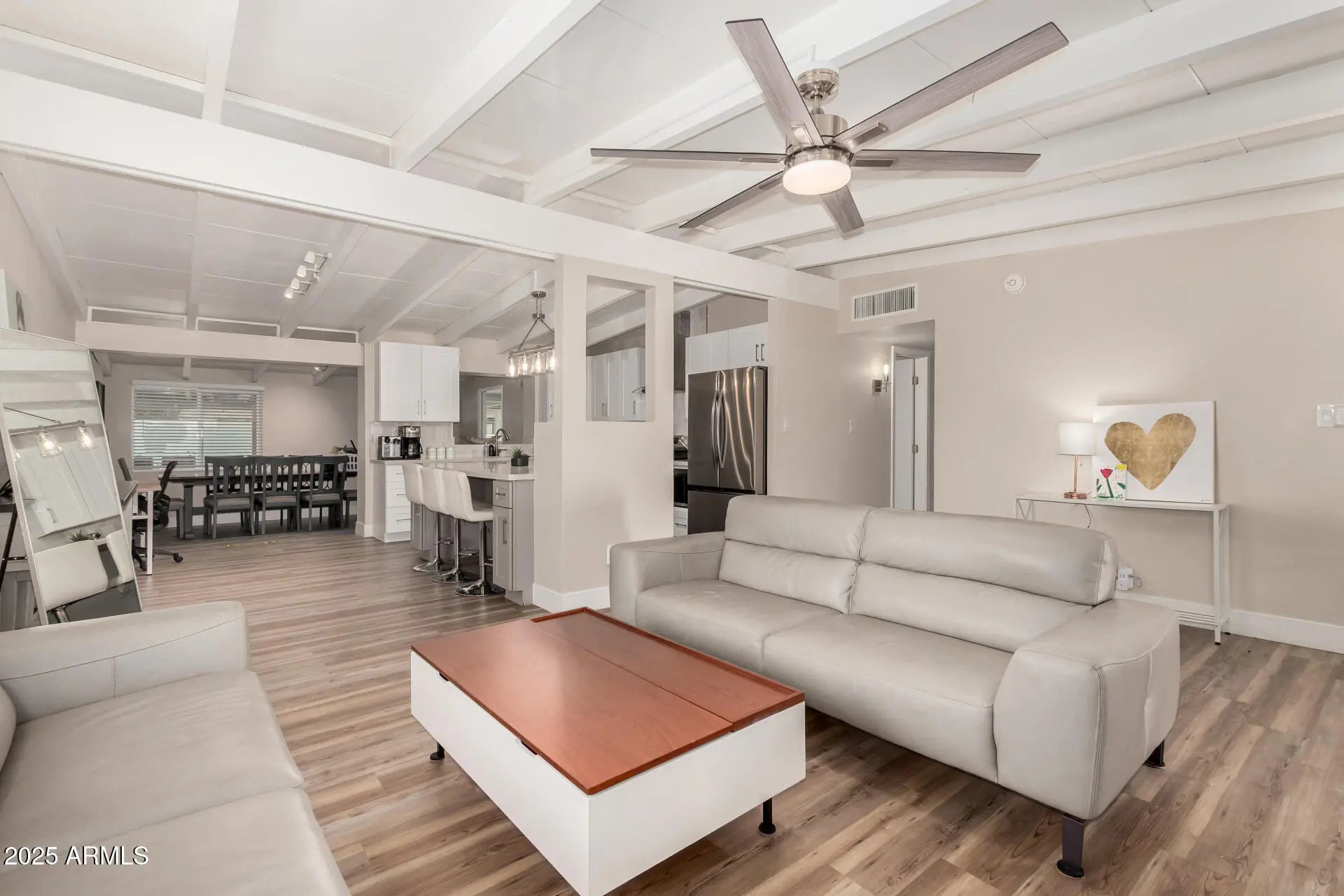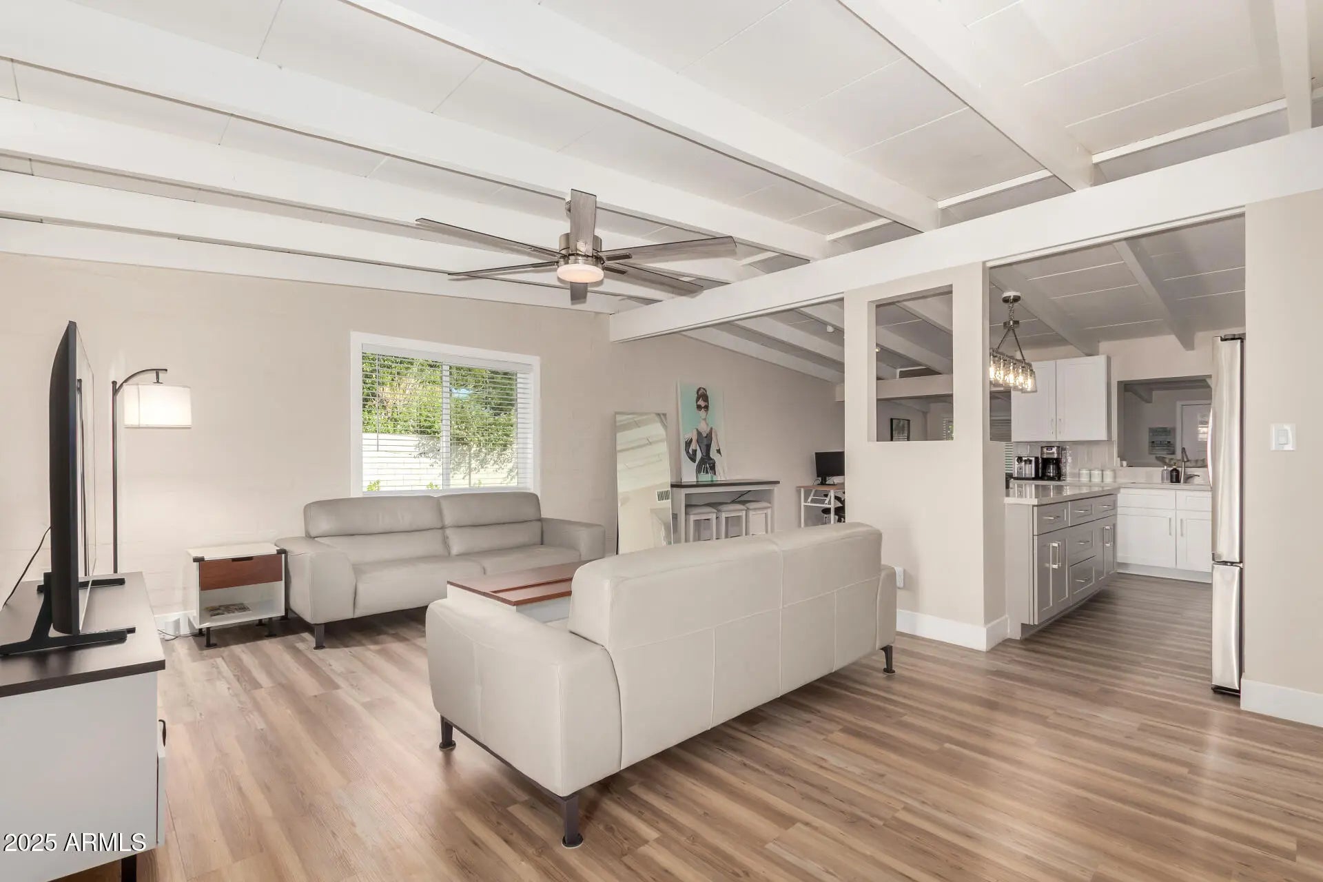 Be the proud owner of this beautifully remodeled Ralph Haver-designed mid-century modern home, showcasing Haver's iconic low-sloped roofline, open beam details, and light-filled living spaces. The inviting interior features wood-style flooring, thick baseboards, a neutral palette, a formal dining room, and a fully updated kitchen with quartz counters, stainless steel appliances, tile backsplash, and crisp white cabinetry. The spacious primary suite includes a walk-in closet and a remodeled bath with dual sinks and an elegant tiled shower. A versatile flex room offers the perfect space for an office, studio, or fitness area. Situated on a large lot with no HOA, the property includes a covered patio, synthetic grass, and ample room for a pool. Located in the desirable Marlen Grove community near major freeways, Uptown Plaza, Biltmore shopping, local restaurants, and Madison schools, this rare Haver home blends architectural pedigree with modern comfort in the heart of Phoenix.