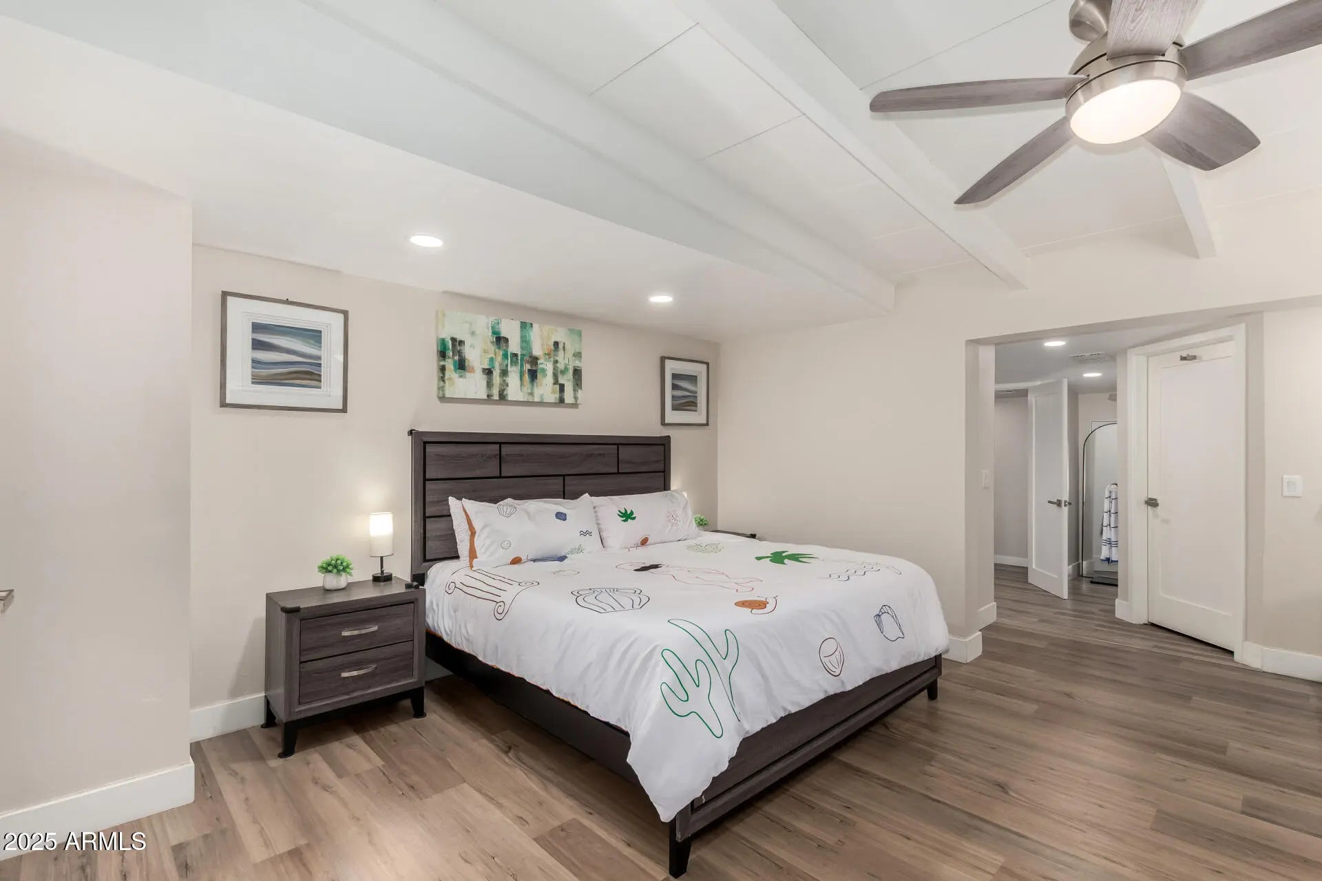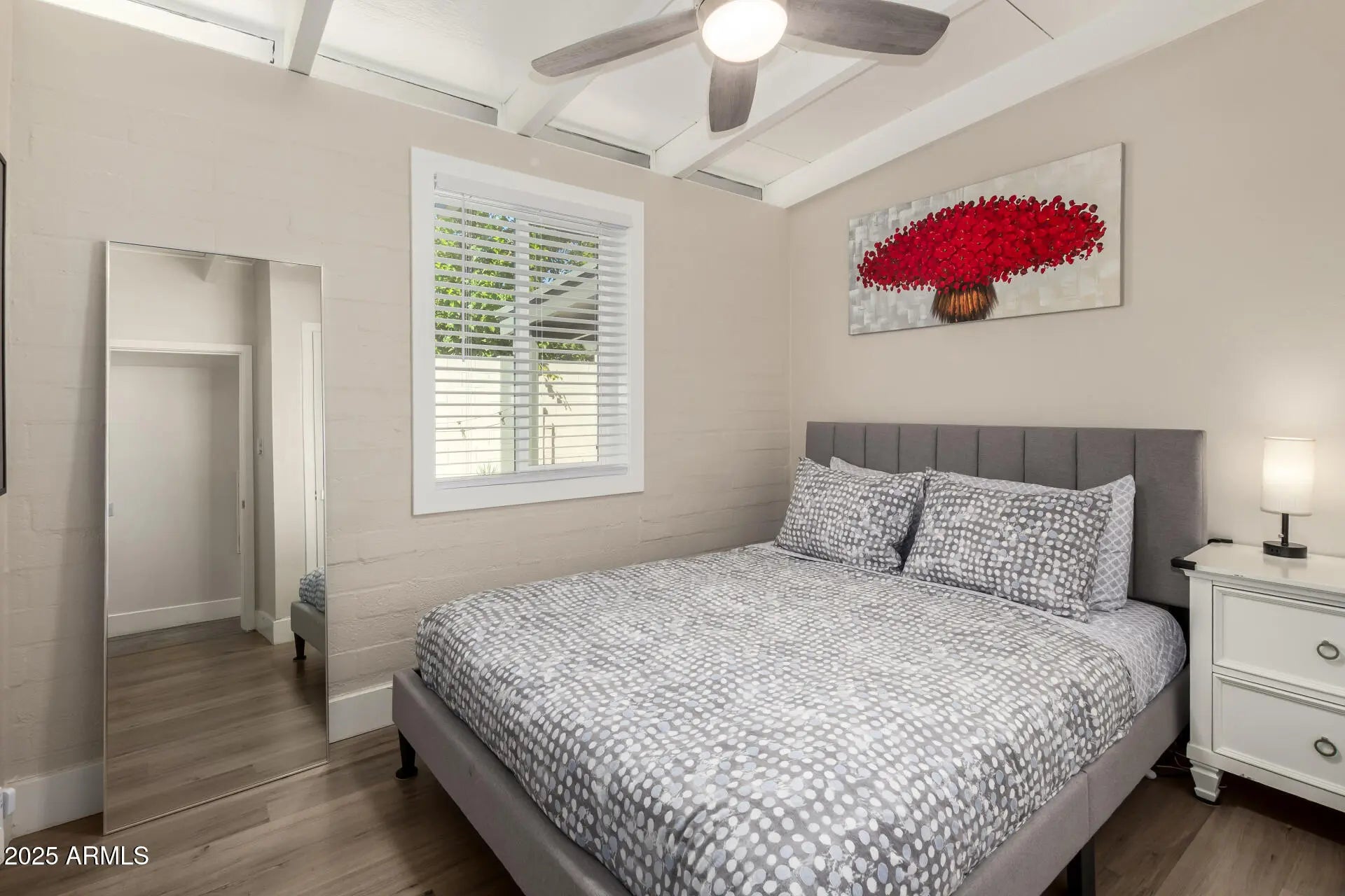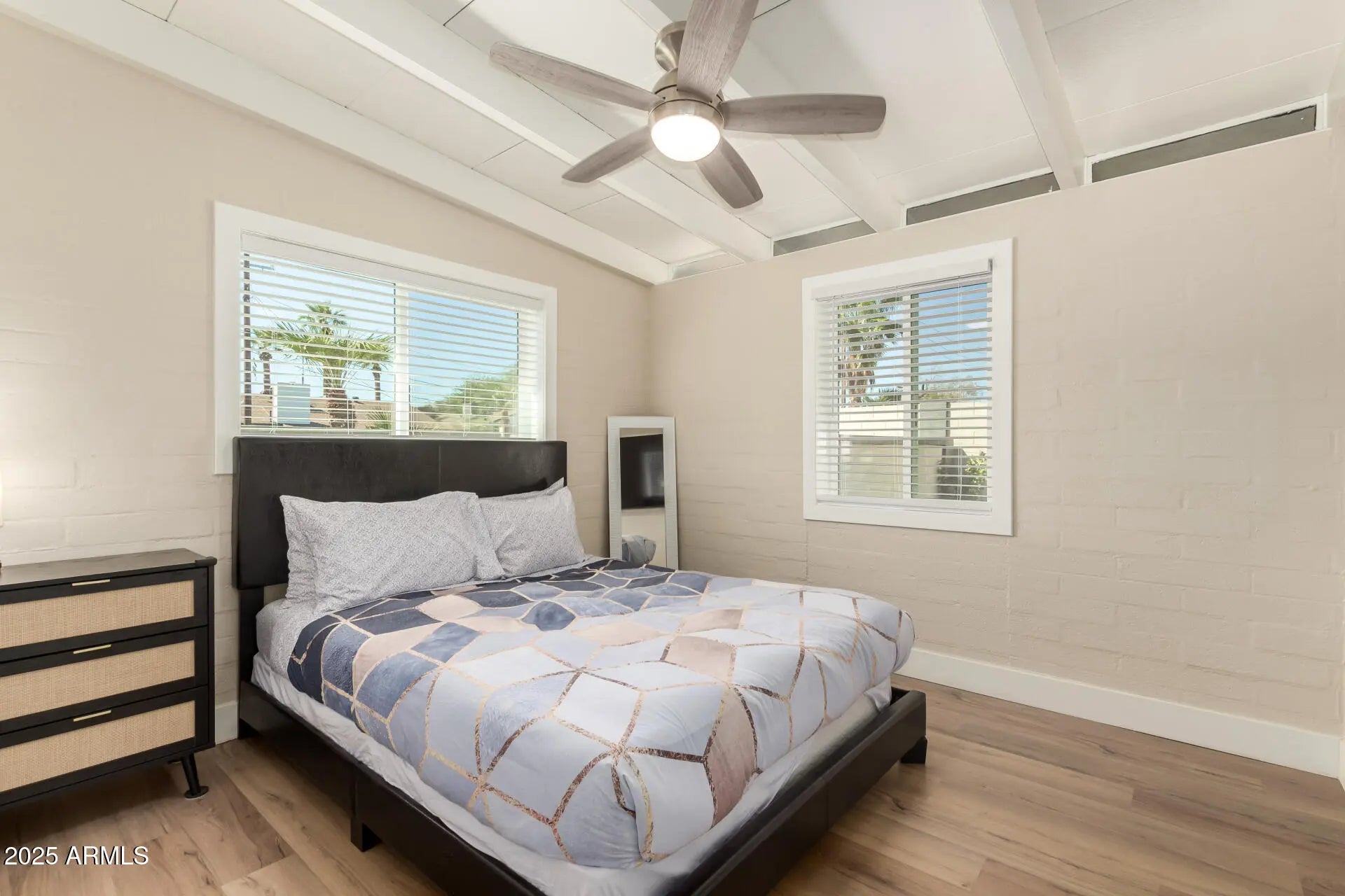 Be the proud owner of this beautifully remodeled Ralph Haver-designed mid-century modern home, showcasing Haver's iconic low-sloped roofline, open beam details, and light-filled living spaces. The inviting interior features wood-style flooring, thick baseboards, a neutral palette, a formal dining room, and a fully updated kitchen with quartz counters, stainless steel appliances, tile backsplash, and crisp white cabinetry. The spacious primary suite includes a walk-in closet and a remodeled bath with dual sinks and an elegant tiled shower. A versatile flex room offers the perfect space for an office, studio, or fitness area. Situated on a large lot with no HOA, the property includes a covered patio, synthetic grass, and ample room for a pool. Located in the desirable Marlen Grove community near major freeways, Uptown Plaza, Biltmore shopping, local restaurants, and Madison schools, this rare Haver home blends architectural pedigree with modern comfort in the heart of Phoenix.
