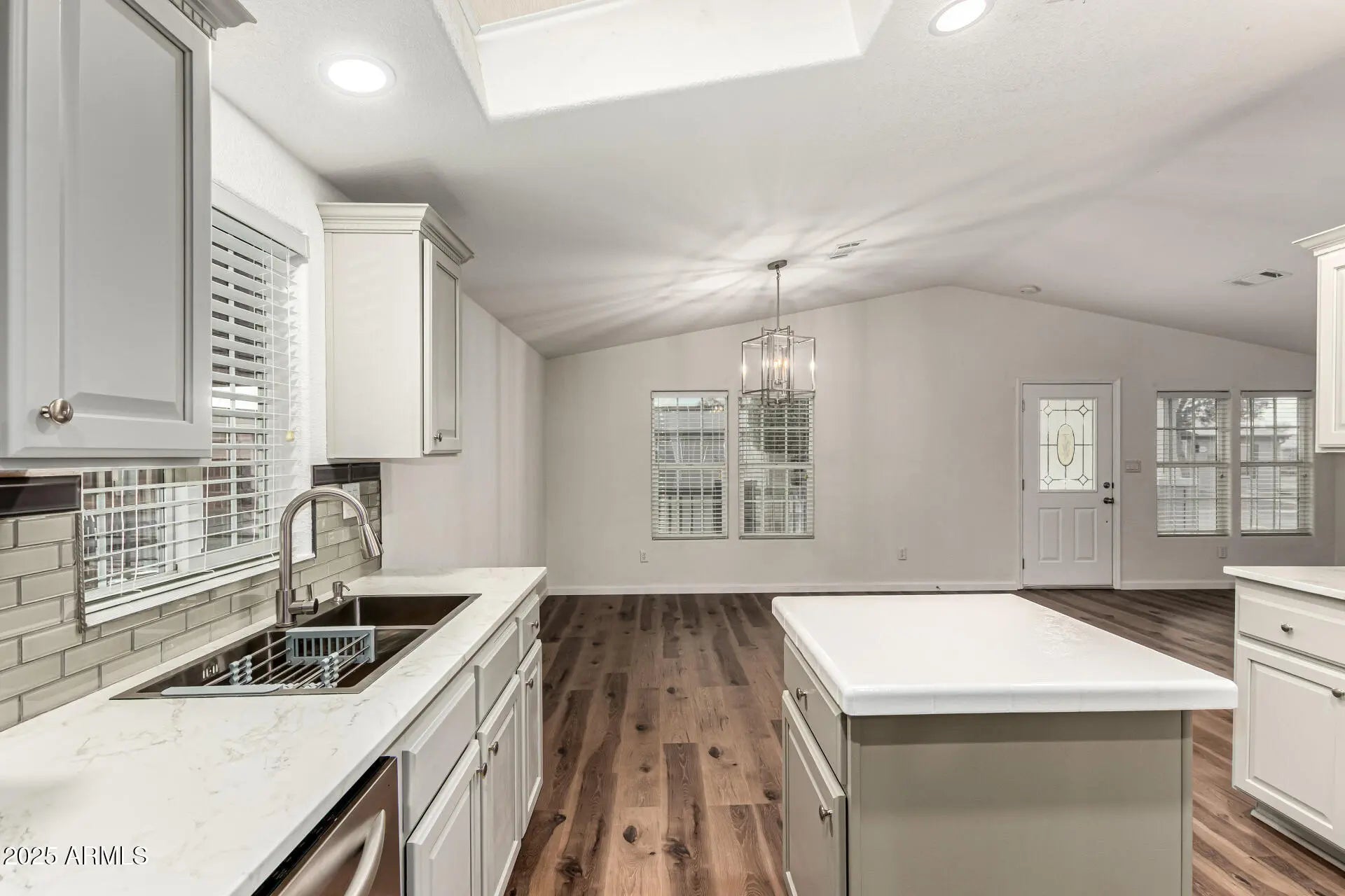 Live the resort lifestyle in Mesa's premier 55+ gated community, Crescent Run! This beautifully updated 3-bedroom home features bright open living spaces, vaulted ceilings, luxury vinyl plank floors, and fresh neutral paint. The modern kitchen offers stainless appliances, subway tile backsplash, gray cabinetry, pantry, and a center island with skylight. The spacious primary suite includes a walk-in closet and dual sinks. Enjoy easy-care living with carport and storage shed. Crescent Run residents love the heated pools & spas, fitness center, pickleball, tennis, clubhouse, dog park, and social events. Move in and enjoy Arizona's sunshine year-round!