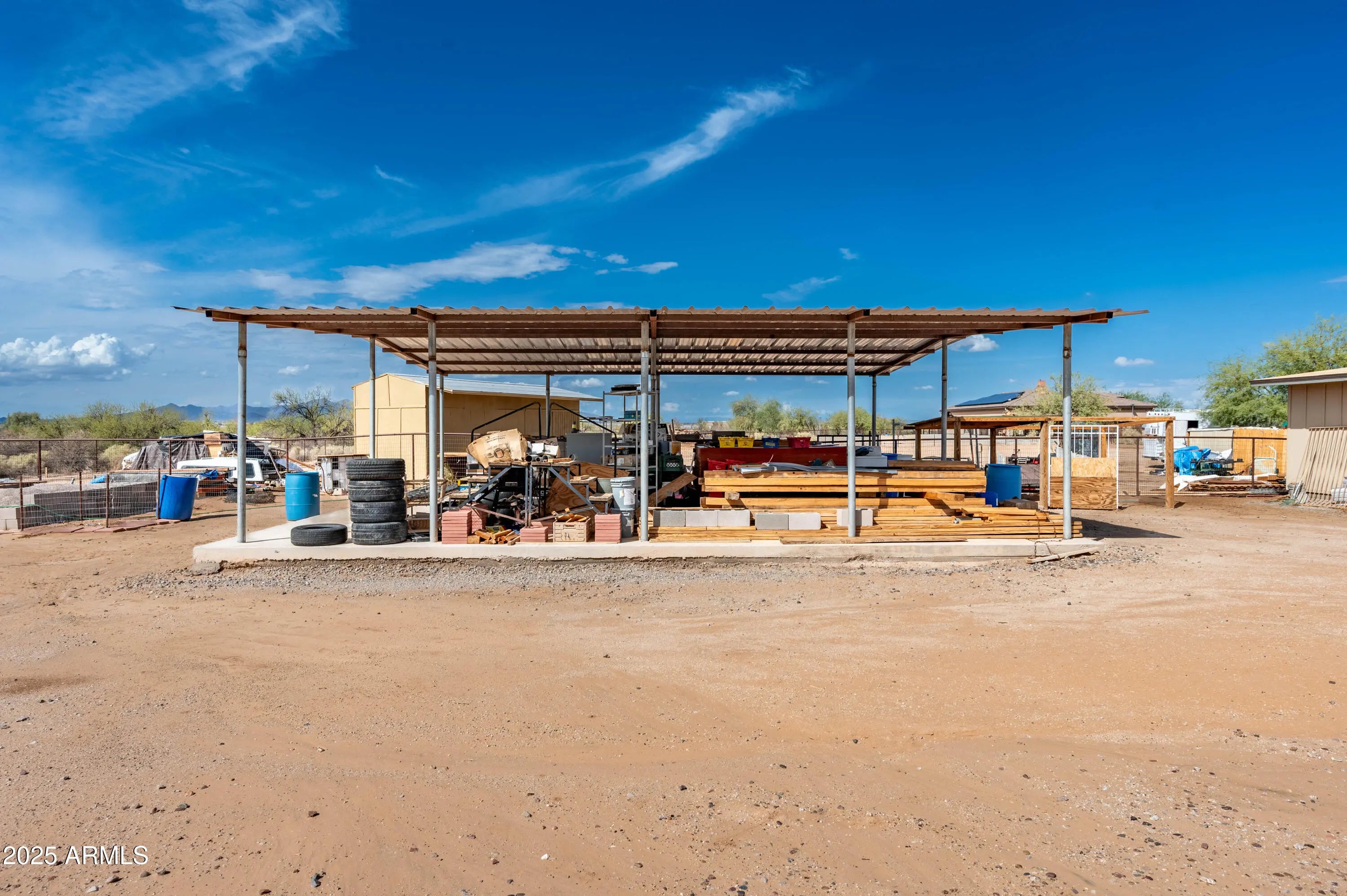 This beautifully maintained manufactured home, situated in the charming community of Buckeye, AZ, boasts energy-efficient solar panels that are fully paid off, offering you cost savings from the start. Inside, you'll find modern luxury vinyl plank flooring that flows seamlessly throughout the home, providing both durability and style. The inviting living area leads out to a spacious patio, perfect for outdoor gatherings or enjoying your morning coffee. The property spans just over an acre, providing ample room for recreational activities, whether that involves parking your toys or creating a space for animals. For those who enjoy outdoor entertainment, this home features an expansive 30x35 covered steel patio, providing a versatile space for barbecues and relaxing in the shade.