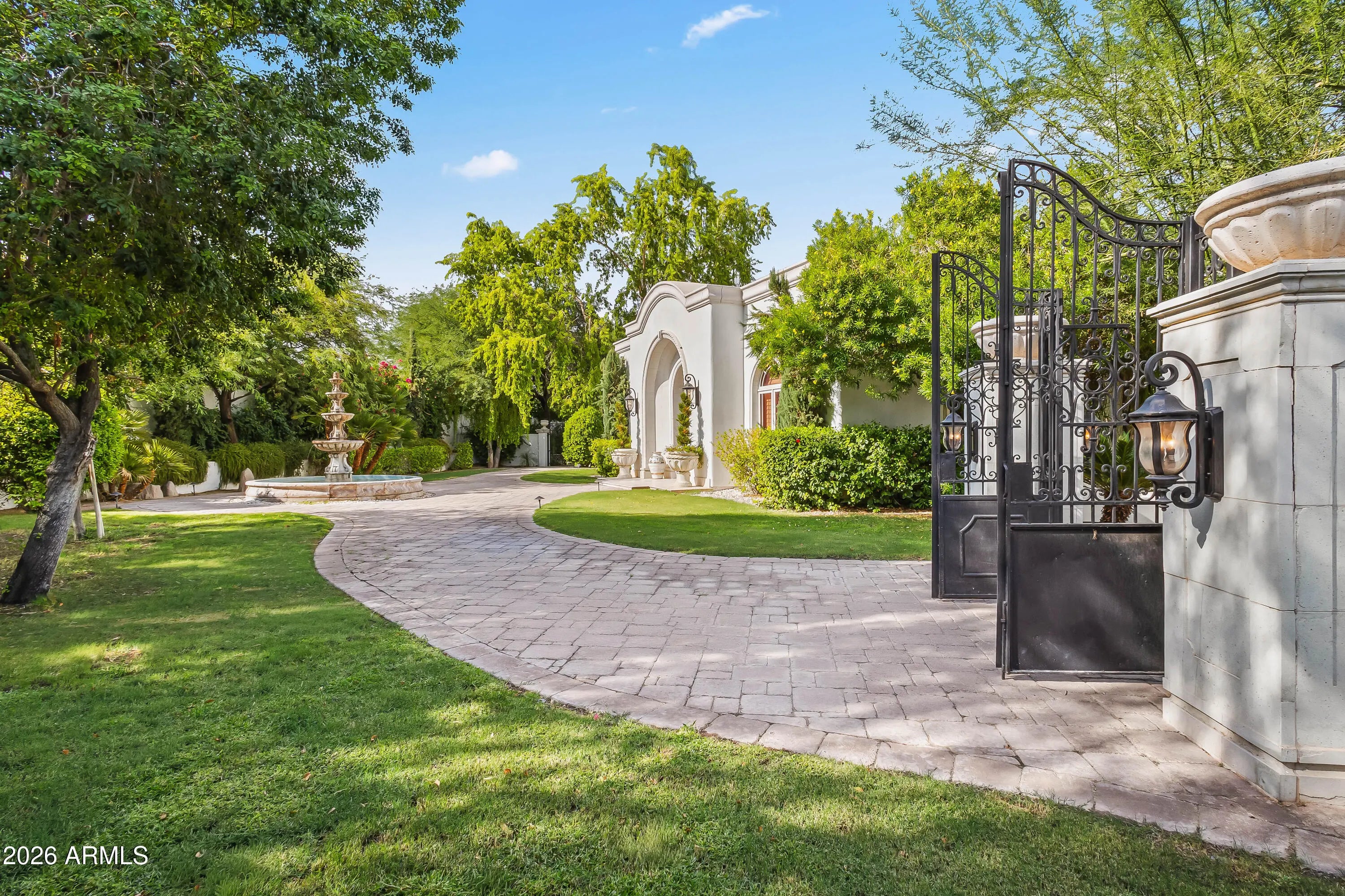 This rare gem sits directly on the 6th green of the prestigious Paradise Valley Country Club. Nestled on a private, gated lot with lush landscaping and sweeping views of Camelback Mountain, this estate blends timeless elegance with the best of refined desert living. The residence welcomes you with soaring ceilings, expansive windows, and a flowing floor plan designed for both comfort and sophistication. A detached guest house with its own garage offers exceptional privacy for visitors. The chef's kitchen is equipped with premium appliances and a dedicated wine cellar, while multiple living and dining areas open seamlessly to the outdoors for effortless entertaining. The primary suite is a true retreat, complete with a cozy fireplace sitting area, gym, spa-inspired bath, generous walk-in closet, and private access to the backyard oasis. Resort-style amenities define the backyard experience, featuring a custom pool and spa, pickleball court, outdoor fireplace, and a full outdoor kitchen with island, sink, refrigerator, and built-in BBQ ideal for hosting family and friends year-round. Just minutes from PVCC and fine dining, luxury shopping, and additional golf destinations, this property offers the perfect balance of privacy and convenience in one of Arizona's most desirable neighborhoods. Don't miss the chance to call this Paradise Valley retreat your home.