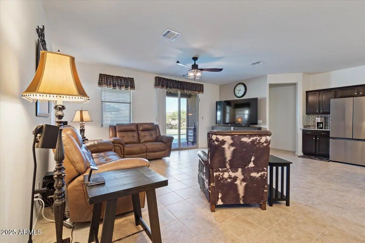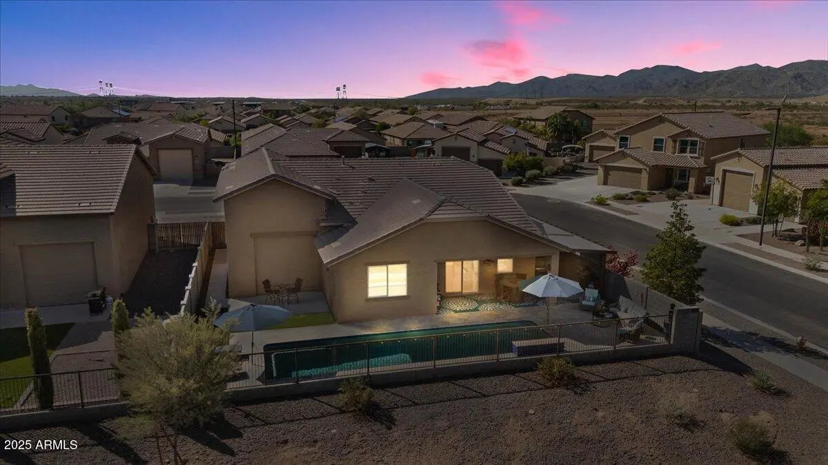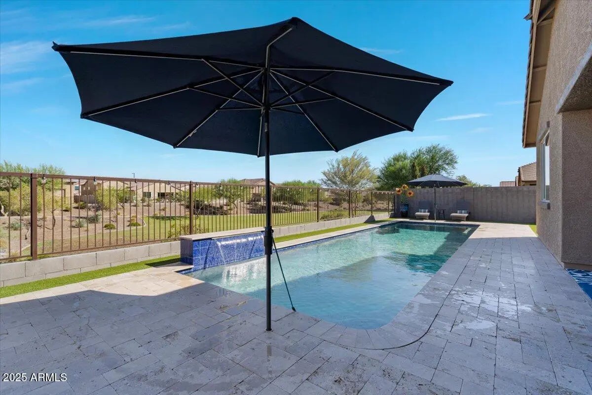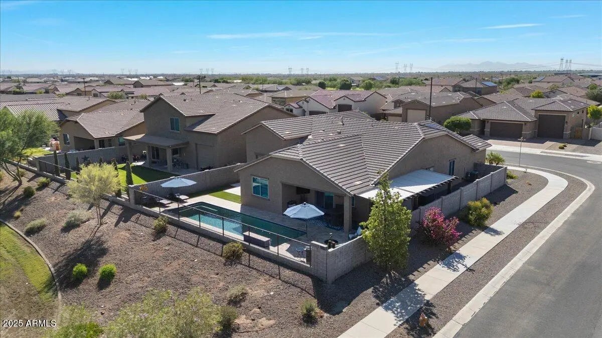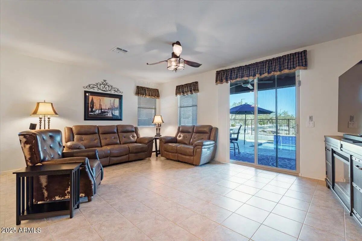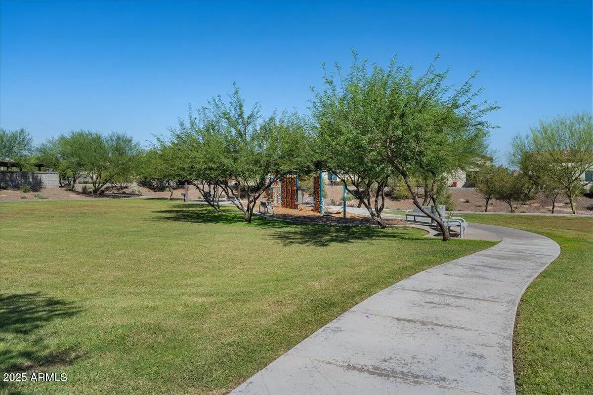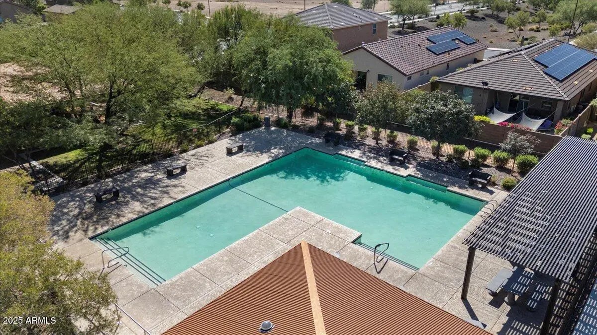 This home checks ALL the boxes of ideal living in AZ. With 3 bedrooms, 2.5 baths, and a versatile flex space, the thoughtful split floor plan creates room for connection as well as a quiet retreat. Set on a premium corner lot with peaceful green space behind, you'll enjoy both privacy, extra breathing room, and open views. The backyard is a true retreat featuring a sparkling heated pool to enjoy year-round. The 48' RV garage and 14' door, with a built-in RV dump and 50amp hookup, provides unmatched convenience for adventurers and travelers, making every getaway effortless. Every detail combines elegance with practicality, making this home the perfect blend of refined living and everyday ease. This home is a place to create the lifestyle you've been dreaming about! RV garage is 48' deep with a 14' door. Whole home built-in filtration system.