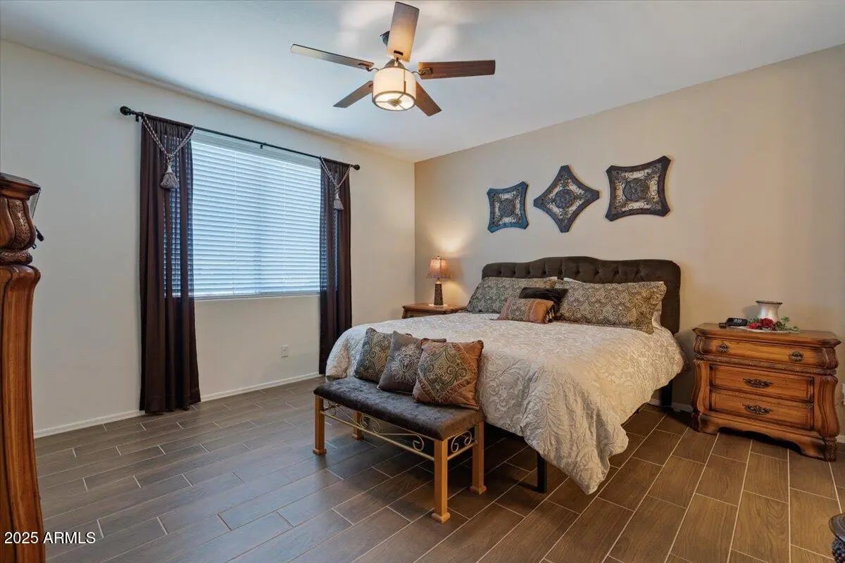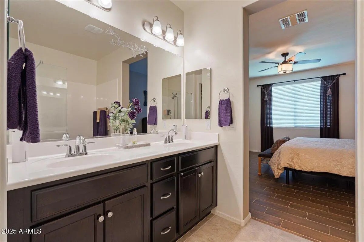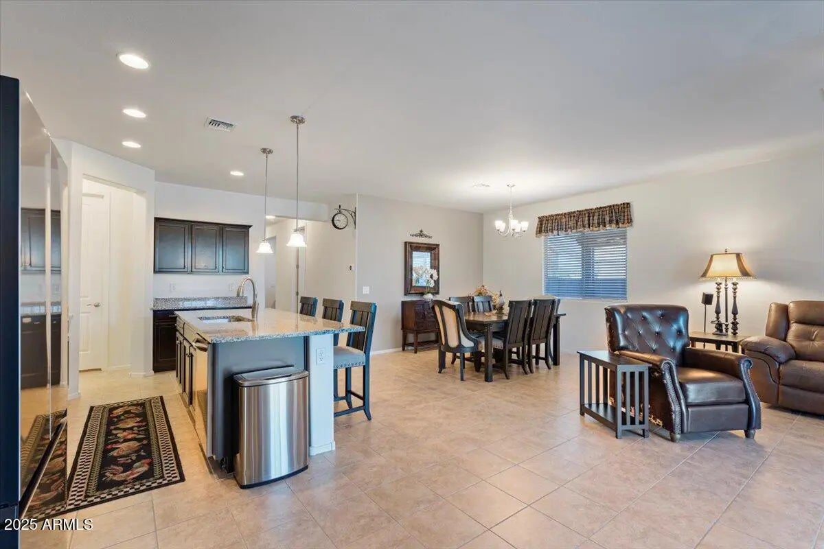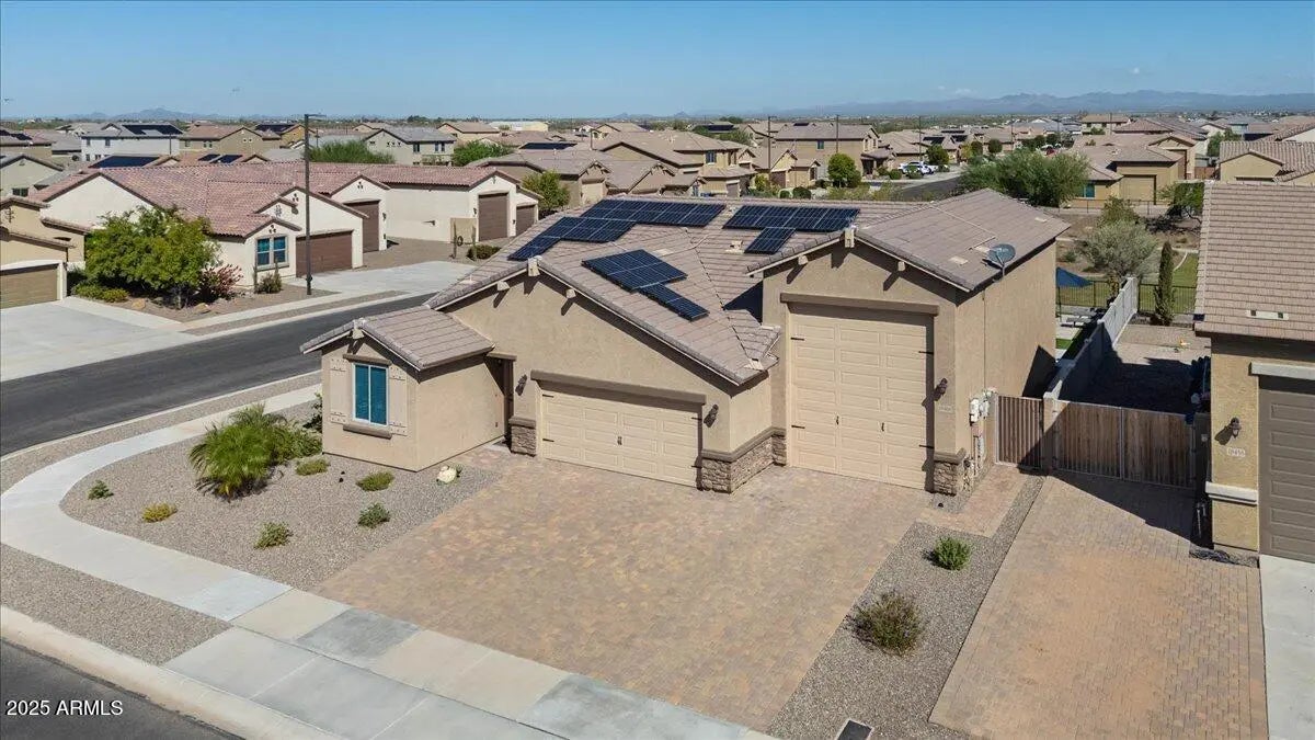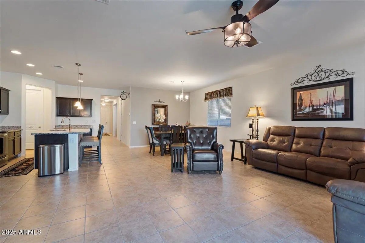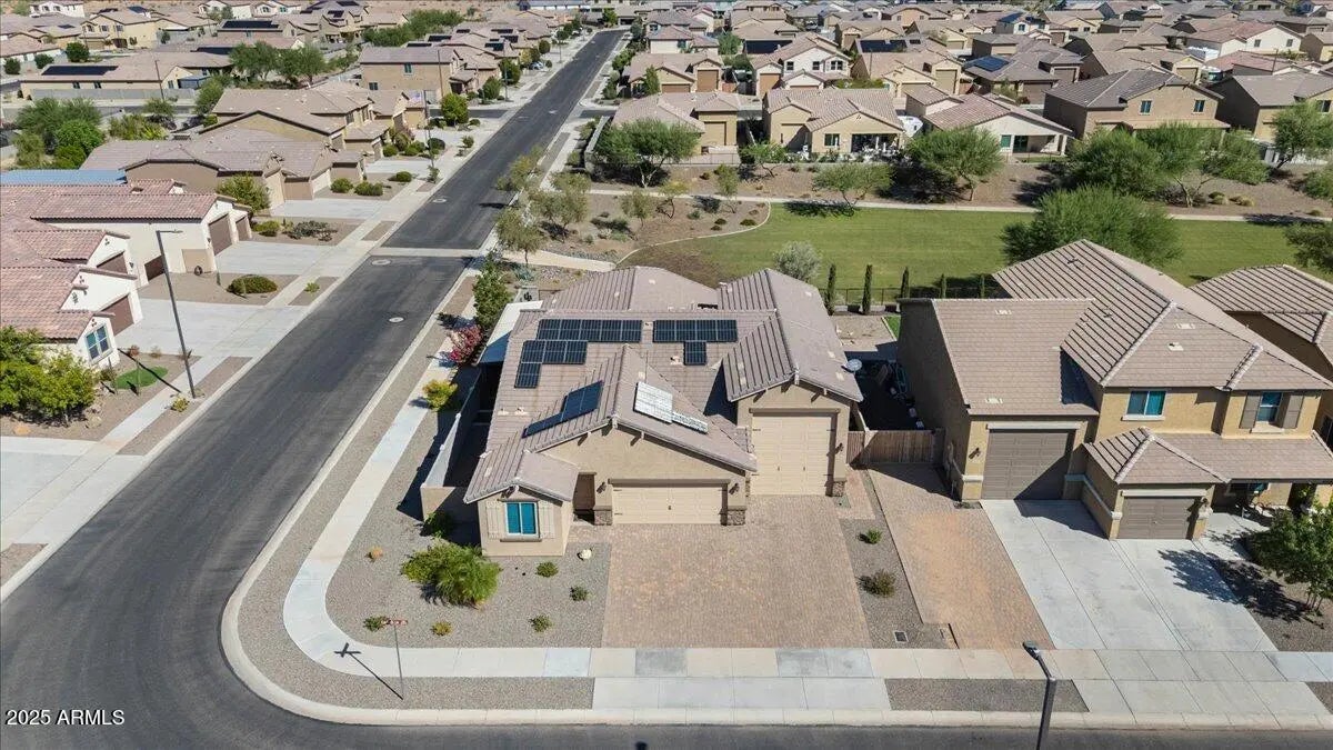 This home checks ALL the boxes of ideal living in AZ. With 3 bedrooms, 2.5 baths, and a versatile flex space, the thoughtful split floor plan creates room for connection as well as a quiet retreat. Set on a premium corner lot with peaceful green space behind, you'll enjoy both privacy, extra breathing room, and open views. The backyard is a true retreat featuring a sparkling heated pool to enjoy year-round. The 48' RV garage and 14' door, with a built-in RV dump and 50amp hookup, provides unmatched convenience for adventurers and travelers, making every getaway effortless. Every detail combines elegance with practicality, making this home the perfect blend of refined living and everyday ease. This home is a place to create the lifestyle you've been dreaming about! RV garage is 48' deep with a 14' door. Whole home built-in filtration system.