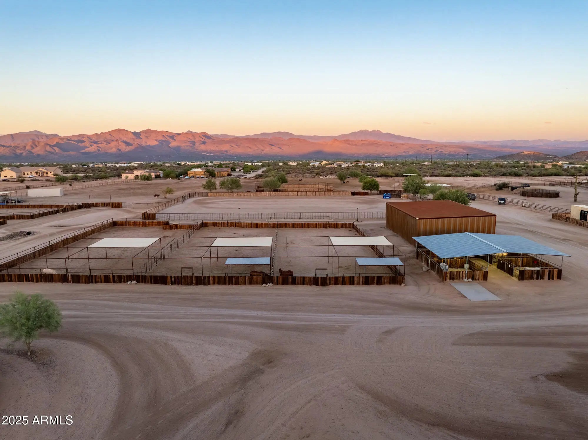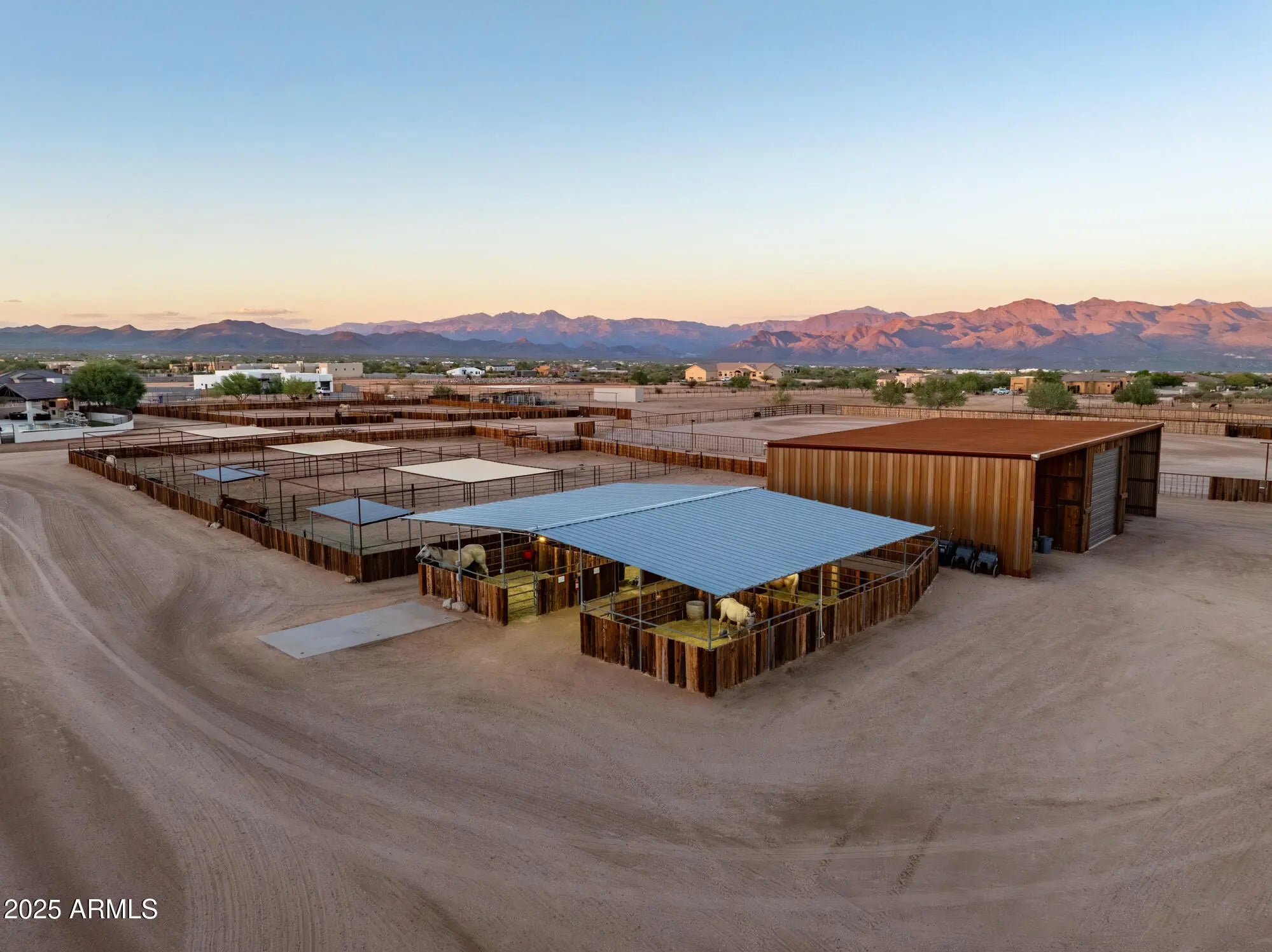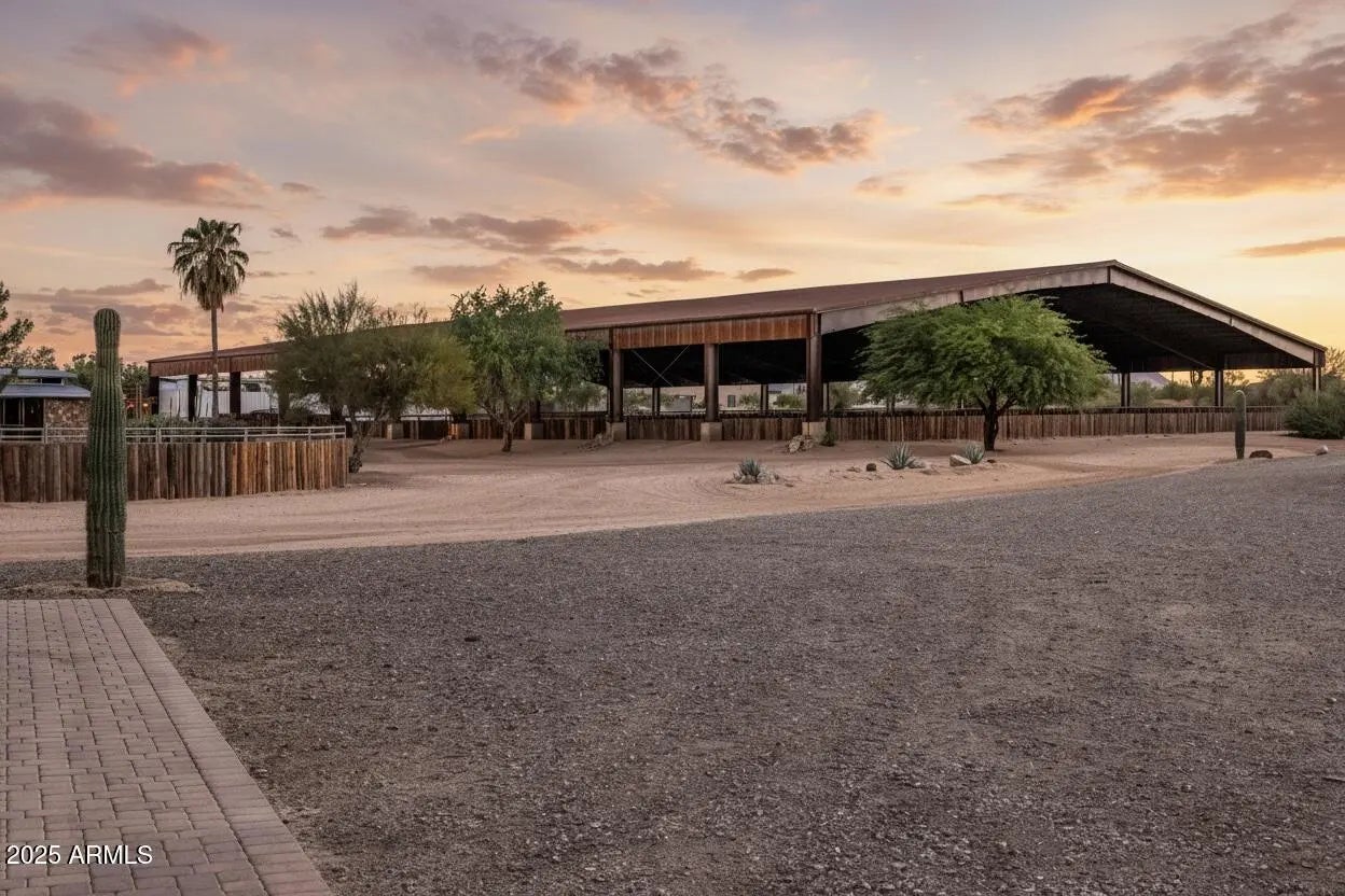 Sitting on nearly 20 acres with stunning mountain views, this equestrian estate exudes elegance and functionality. The recently remodeled main home features a timeless modern southwest design with high-end finishes throughout, 2 master suites, soaring ceilings, and abundant natural light. Expansive glass sliders open to a resort-style backyard oasis & roof deck. Overlooking exceptional equestrian facilities, perfect for a private ranch or boarding/training operation. New arena footing in both the outdoor roping (150x240) arena and covered (140x240) arena. 24-stall main barn w/2 tack rooms, casita, lounge, 4-stall mare motel, and multiple large turnouts. 2 new Alterna Container homes provide staff quarters, plus 2 RV hook-ups on this fully fenced property. Prime location, all paved roads.