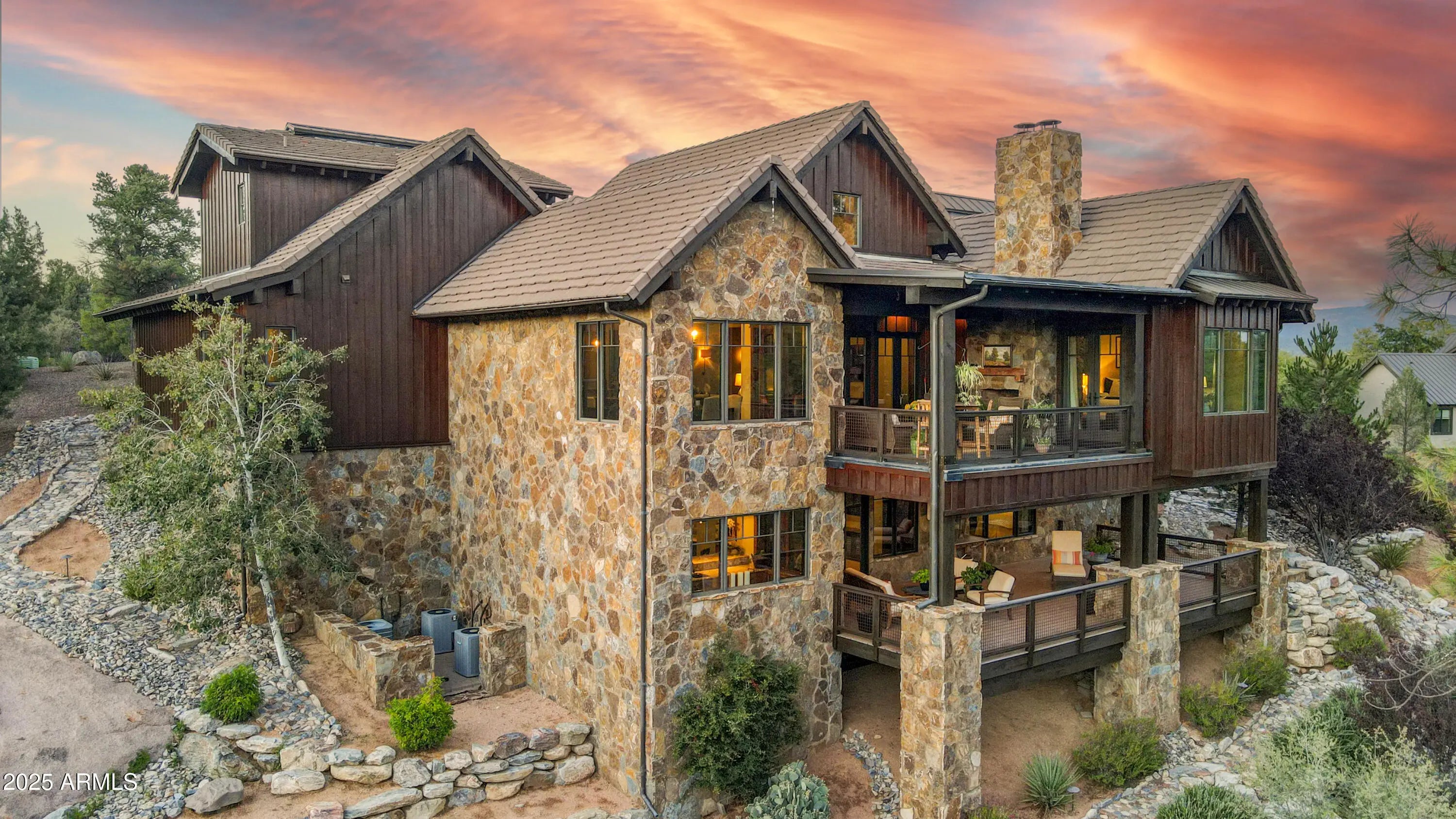 Welcome to refined living in The Rim Club, where elegance meets the natural beauty of Rim Country. Perfectly sited to capture sweeping views of the Granite Dells, this custom home blends timeless craftsmanship with modern luxury. Reclaimed hardwood floors and beams set the tone for warm sophistication, while expansive living areas invite relaxation and connection. Each bedroom offers an en suite bath and walk-in closet. Three gas fireplaces throughout, plus a firepit beneath starlit skies, create the ultimate mountain retreat—where every space is designed to inspire and every detail celebrates the beauty of Rim Country. Designed for everyday ease, the main level includes garage and front entry access, laundry, powder room, a chef's kitchen with high-end appliances, dining area, and a spacious living room warmed by a gas fireplace. The serene primary suite also features its own fireplace, while a guest suite offers a private en suite bath and walk-in closet. Outdoor living shines with a covered patio complete with a gas fireplace and unobstructed Granite Dells views. The lower level is an entertainer's dream, showcasing a large open gathering space with room for a pool table, a wet bar with wine fridge and ice machine, a temperature-controlled wine cellar, ample storage, and a powder room. A generously sized guest suite with en suite bath and walk-in closet completes this level. Outdoor living continues with a covered patio capturing the Granite Dells vistas and an uncovered area with a firepit beneath the stars. Upstairs, a versatile retreat with en suite bath and walk-in closet can serve as a fourth bedroom, office, art studio, or creative escape, all framed by inspiring Rim views. Life at The Rim Club extends far beyond the home itself. Anchored by the Tom Weiskopf and Jay Morrish-designed championship course, the community offers an elegant clubhouse with dining, a welcoming bar, fitness center, pool, tennis, and pickleball. A vibrant calendar of events, wellness programs, and recreation fosters connection, while endless opportunities for hiking, biking, and exploring the Tonto National Forest are just beyond the gates. As part of Payson's Firewise program, The Rim Club is committed to forest management and defensible space, offering peace of mind while preserving Rim Country's natural beauty. Membership is required, providing access to world-class amenities and a community built around recreation and connection. For details, consult the membership director to find the best fit.