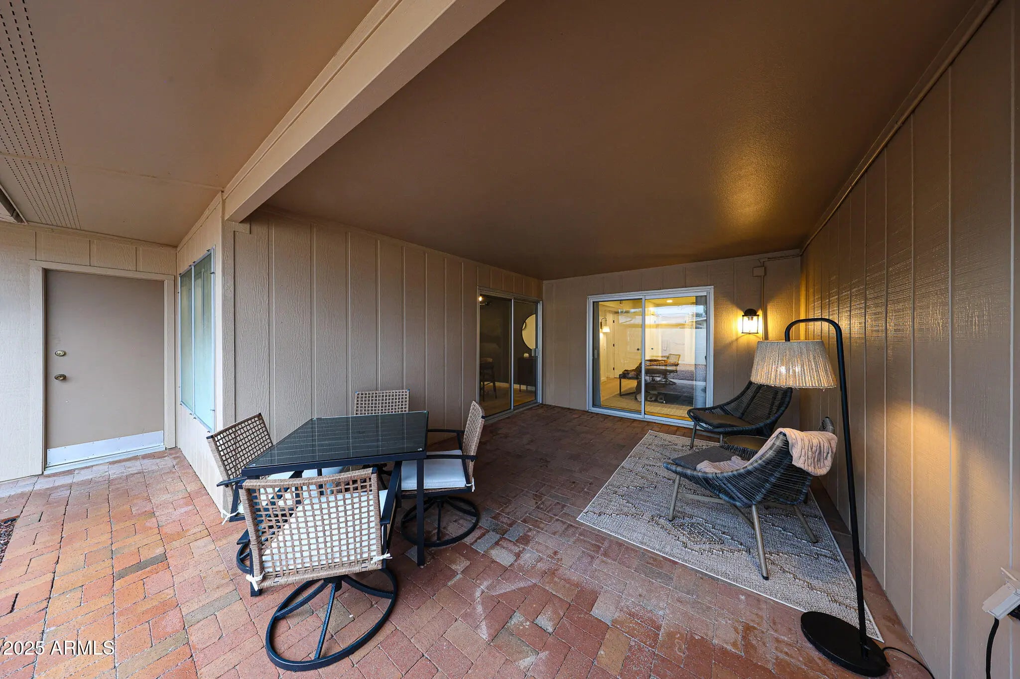 Beautiful patio home. with great outdoor space. New HVAC in 2024. New roof (HOA) 2017. New energy efficient windows in LR and both BRs 2024. New high-end waterproof rigid core luxury vinyl flooring in 2025. Spectacular upgraded lighting, trim and outlets/switches 2024. New window treatments including power shades 2025. Bathrooms updated in 2025. New WiFi garage door opener 2025. One-year home warranty included. HOA covers roof, ext maint, garbage, water, sewer, and pest control. Within RCSC area which includes 7 rec centers. Bell and Marinette centers are very close. Multiple golf courses. Exciting location near Arrowhead mall and P83 entertainment district. 55+ community. Pets allowed without restrictions. NO RENTALS. Owner/Agent licensed Realtors in Arizona.