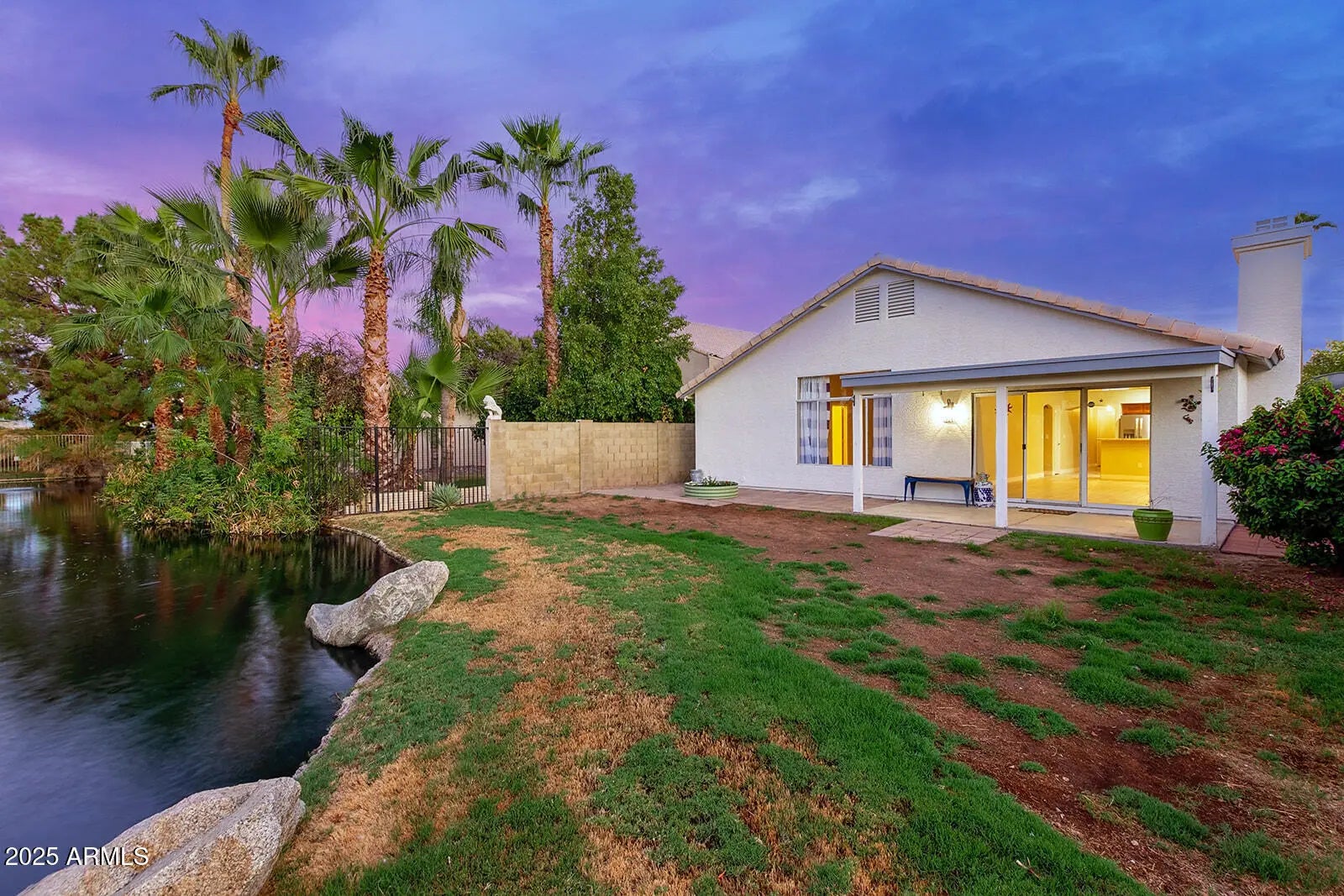 This is it! Enjoy the waterfront from the backyard of this wonderful 3 bedroom/2 bath open floorplan! Home features a bright open kitchen with a center island, large family room with fireplace, formal living/dining room and large primary suite with private bath with a large walk-in shower, double sinks and so much more. Kitchen has granite counter tops and plenty of counter space, great for entertaining! Large back yard with covered patio, grassy area all opening to wonderful flowing springs! Wonderful location with easy access to Loop 202, Loop 101, shopping, entertainment and so much more!!!