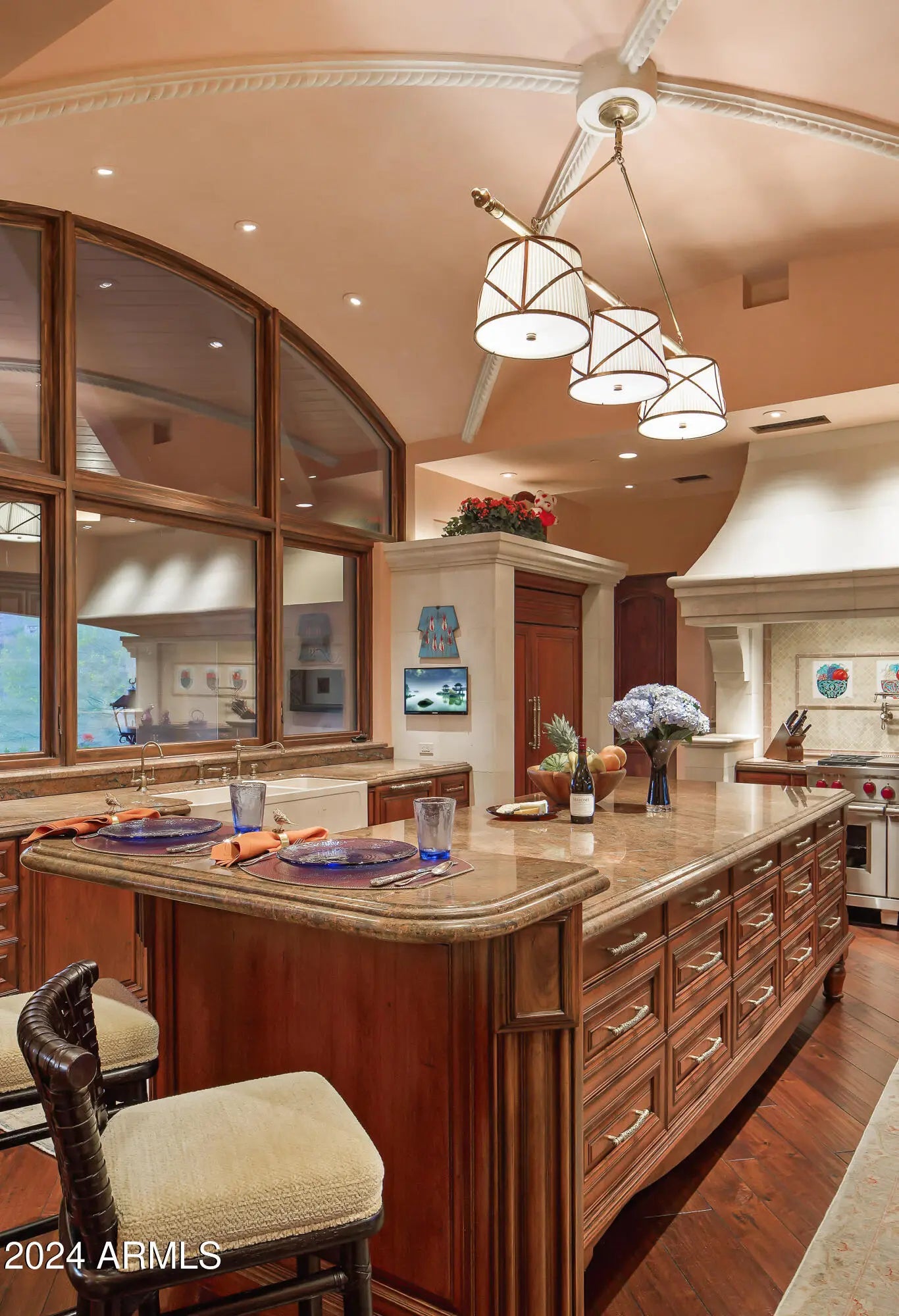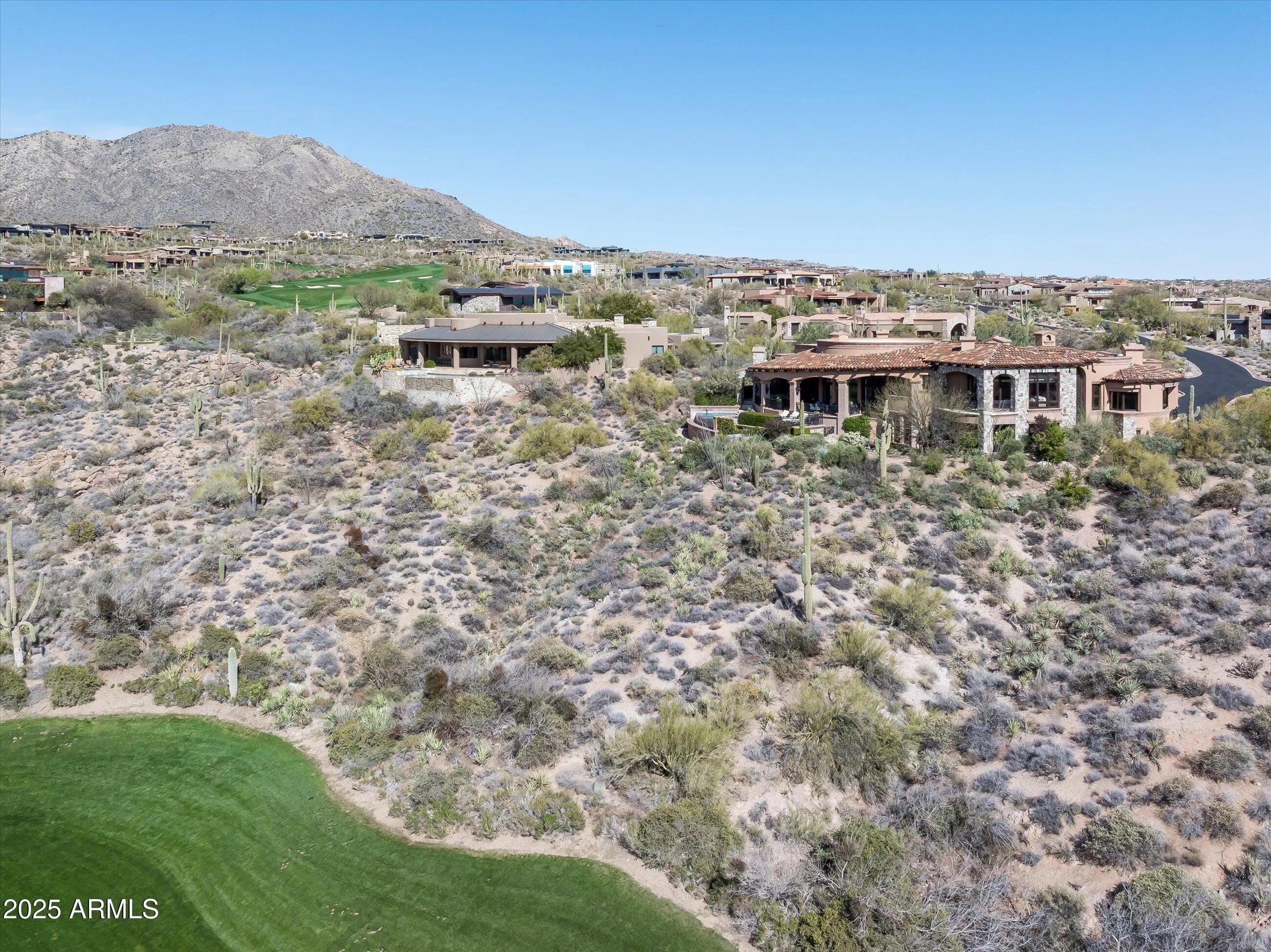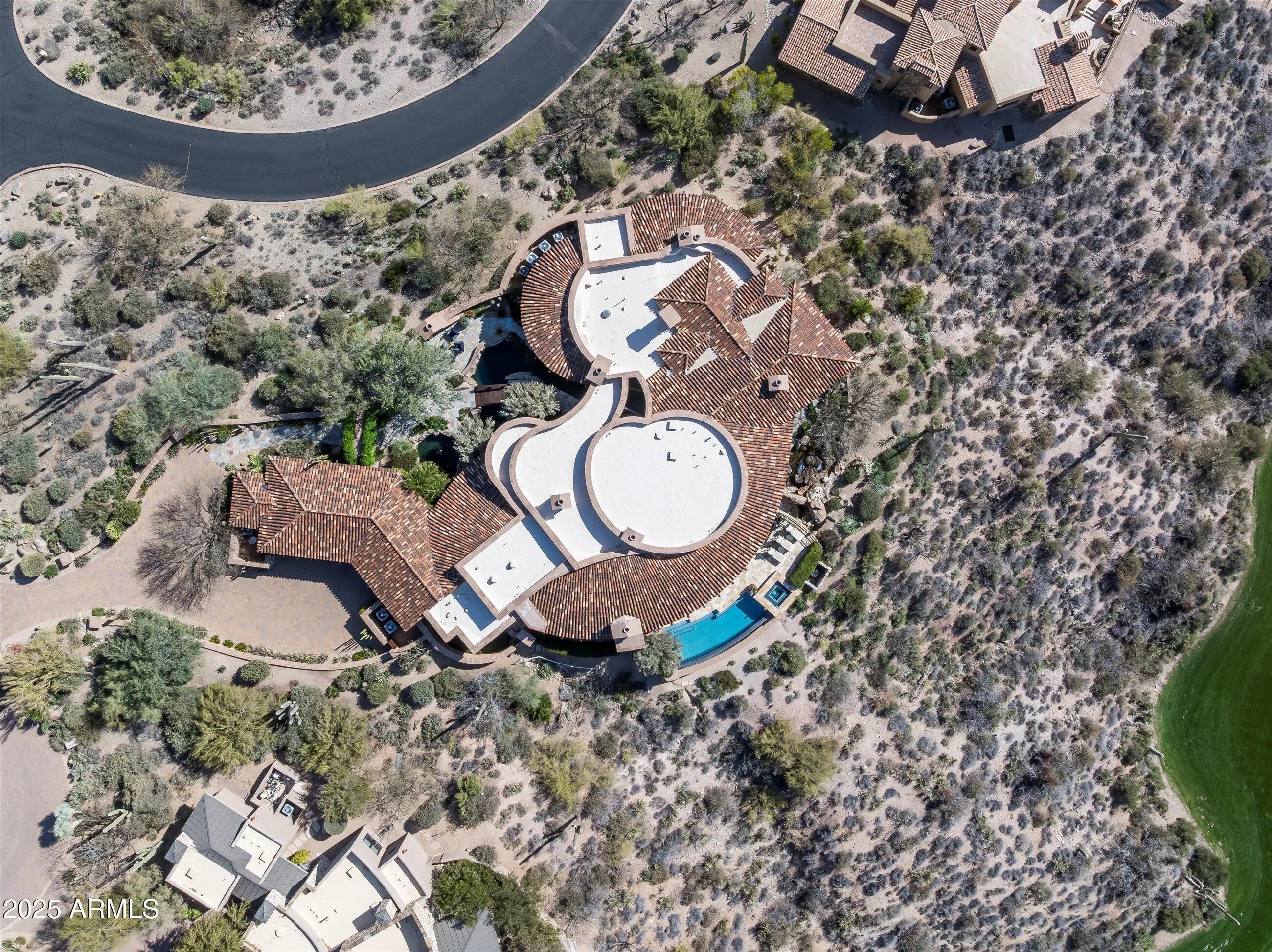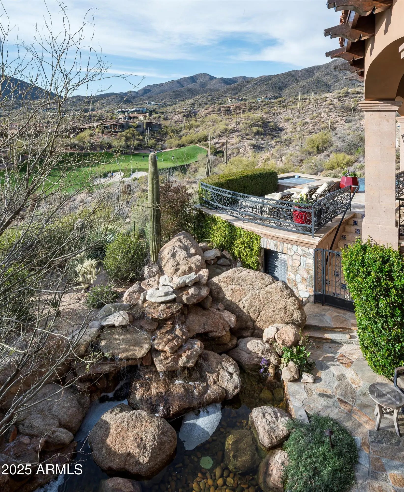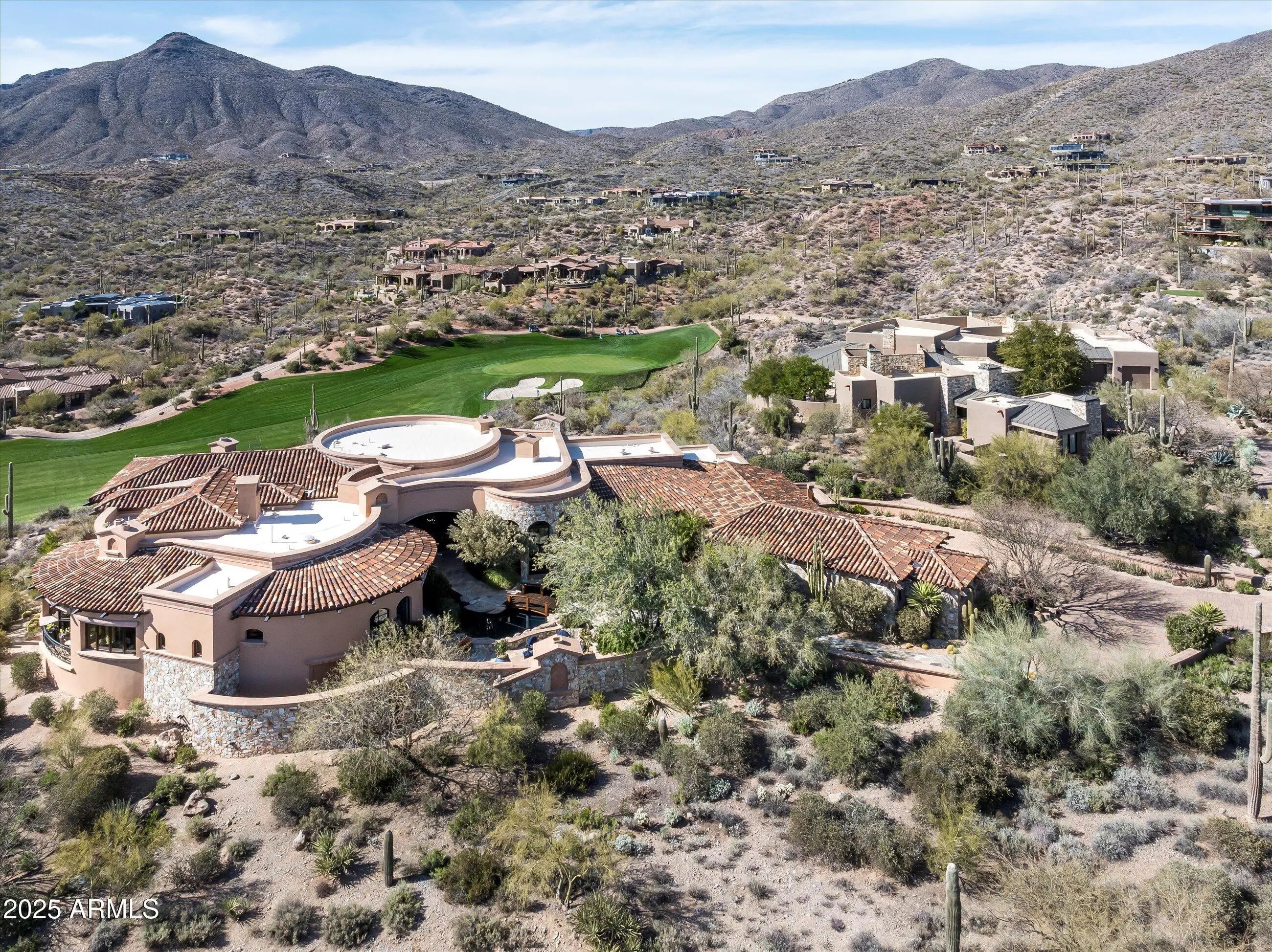 Magnificent Mediterranean Estate with Golf Membership Opportunity. Perched high above the lush Chiricahua fairways and Valley beyond, this extraordinary Desert Mountain residence offers an unrivaled blend of elegance and artistry—available for the first time, with a coveted Golf Membership. Offered stunningly furnished with art and accessories curated from world travels, this home is a true masterpiece of design and craftsmanship. The main level showcases the great room, Gatsby bar, oval dining room, chef's kitchen, cozy media room, two executive offices, and a two-story library, along with a luxurious primary retreat featuring a private vestibule, view balcony, and spa bath. A two-room guest suite with living area and kitchen bar completes the layout. The lower level—accessible by ... elevator or dual staircasesincludes a wine cellar and tasting area, full spa with steam shower, plunge pool, gym, and access to a hidden Zen garden. A