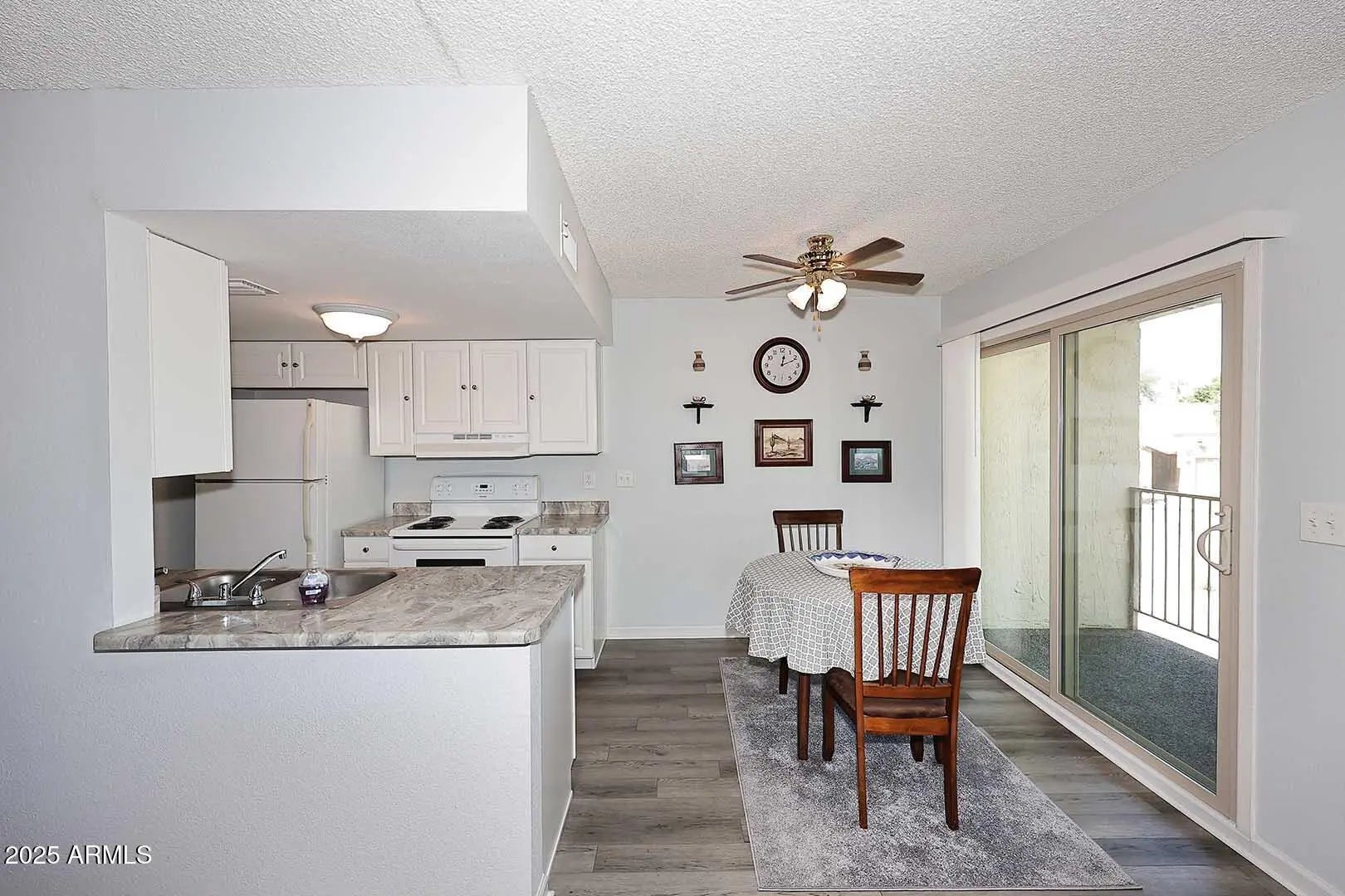 Private & Peaceful Condo - Prime Location! Just a short walk from the iconic Fountain, local parks, shopping, dining, the community center, and the vibrant Avenue of the Fountains—this charming condo puts everything at your fingertips. This lovely single-level, two-bedroom, one-bath home offers a comfortable and functional layout. Features include: Ceramic tile in the bathroom Cozy carpeted bedrooms Laminate flooring in the kitchen and living area New energy-efficient vinyl windows & slider throughout Whether you're looking for a serene primary residence or a low-maintenance seasonal retreat, this condo checks all the boxes! Furnishings... couch, love seat, chair, coffee table, 2 end tables, tv stand, wood kitchen table and 2 chairs, king bed and 2 chairs, king bed and 2 dressers, full bed, bedding stays in BOTH rooms Wall decor and shelving, 2 lamps