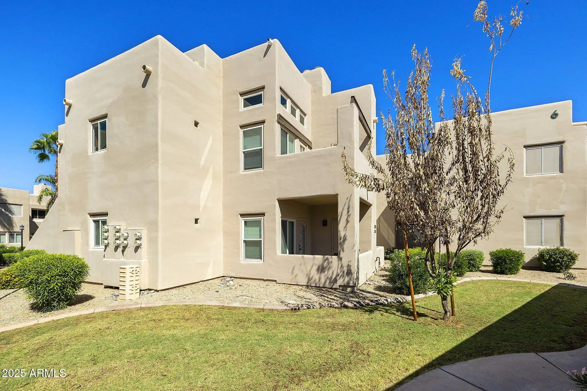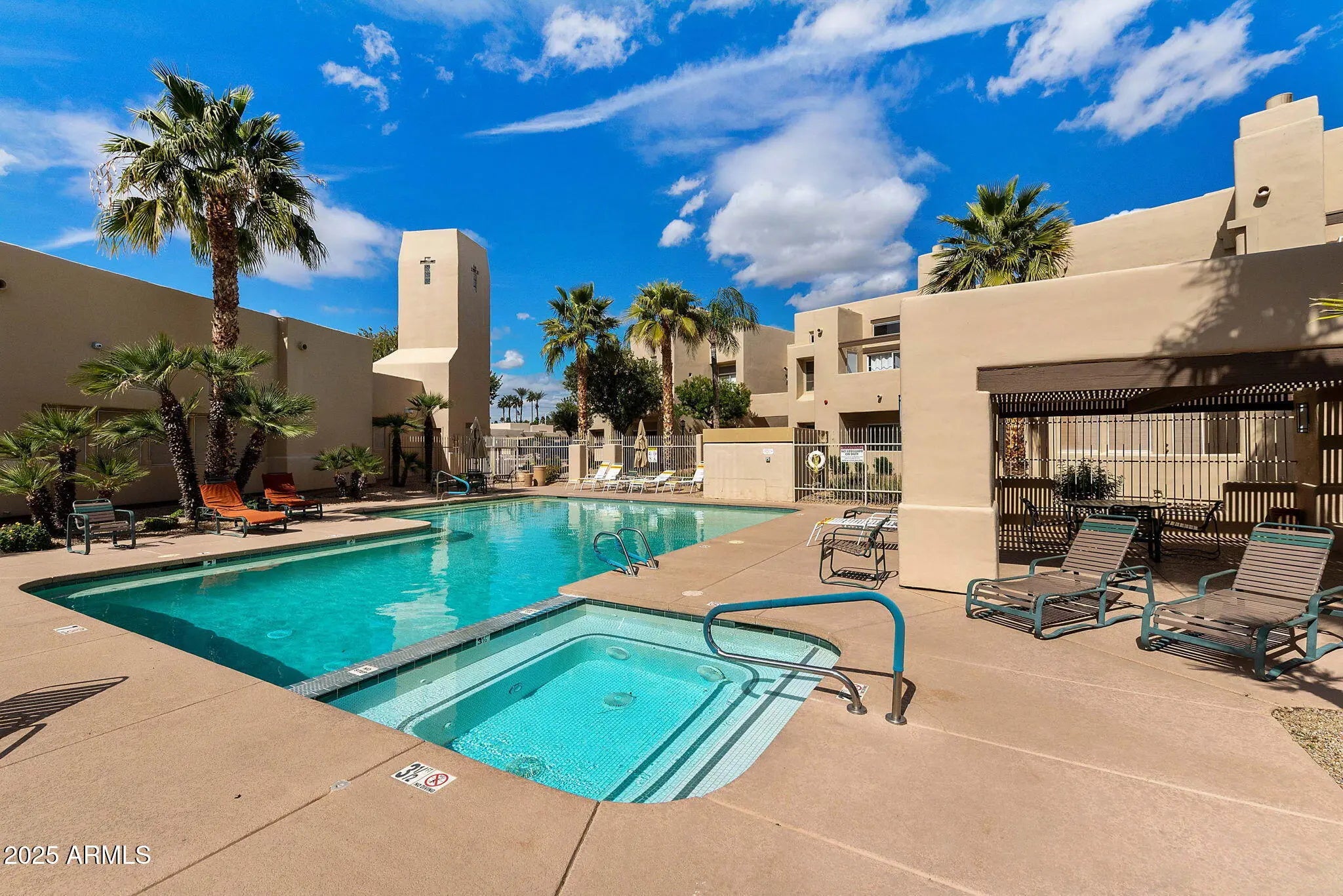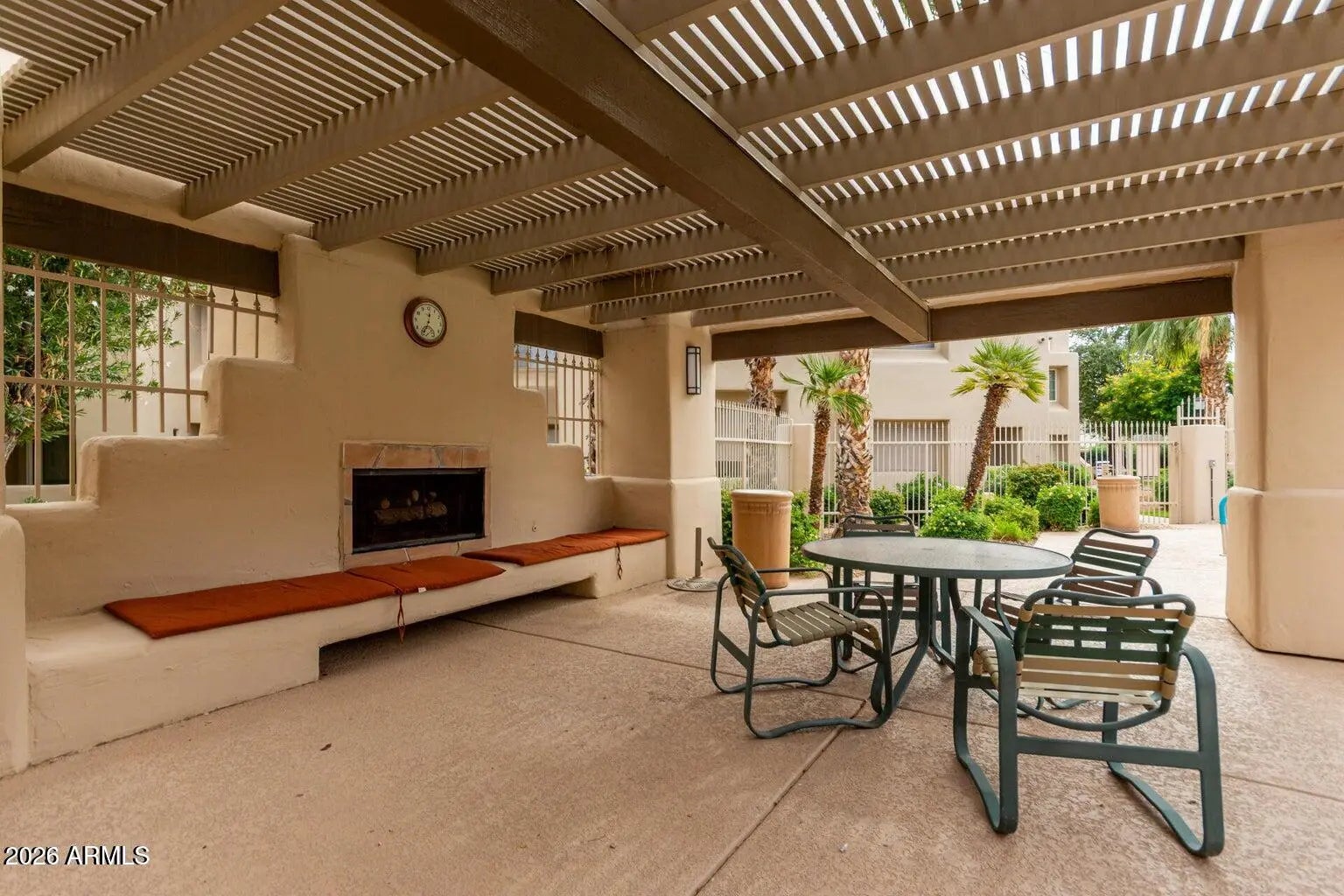 Discover resort-style living in this furnished 2 bed, 2 bath ground-level condo in the coveted Mission Del Arroyos community of North Scottsdale. Steps from the pool, this bright, open home features soaring 9' ceilings, a great room with dining space, cozy fireplace, and private patio. The kitchen shines with granite countertops, updated cabinetry, and pantry. Retreat to the spacious primary suite with walk-in closet, custom tiled shower and granite countertop. The secondary bedroom is perfect for guests or a home office. Enjoy exceptional amenities—2 sparkling pools, spas, tennis court, fitness center, BBQs, and scenic walking paths. Prime location near the greenbelt, 101, shopping, dining, and golf!