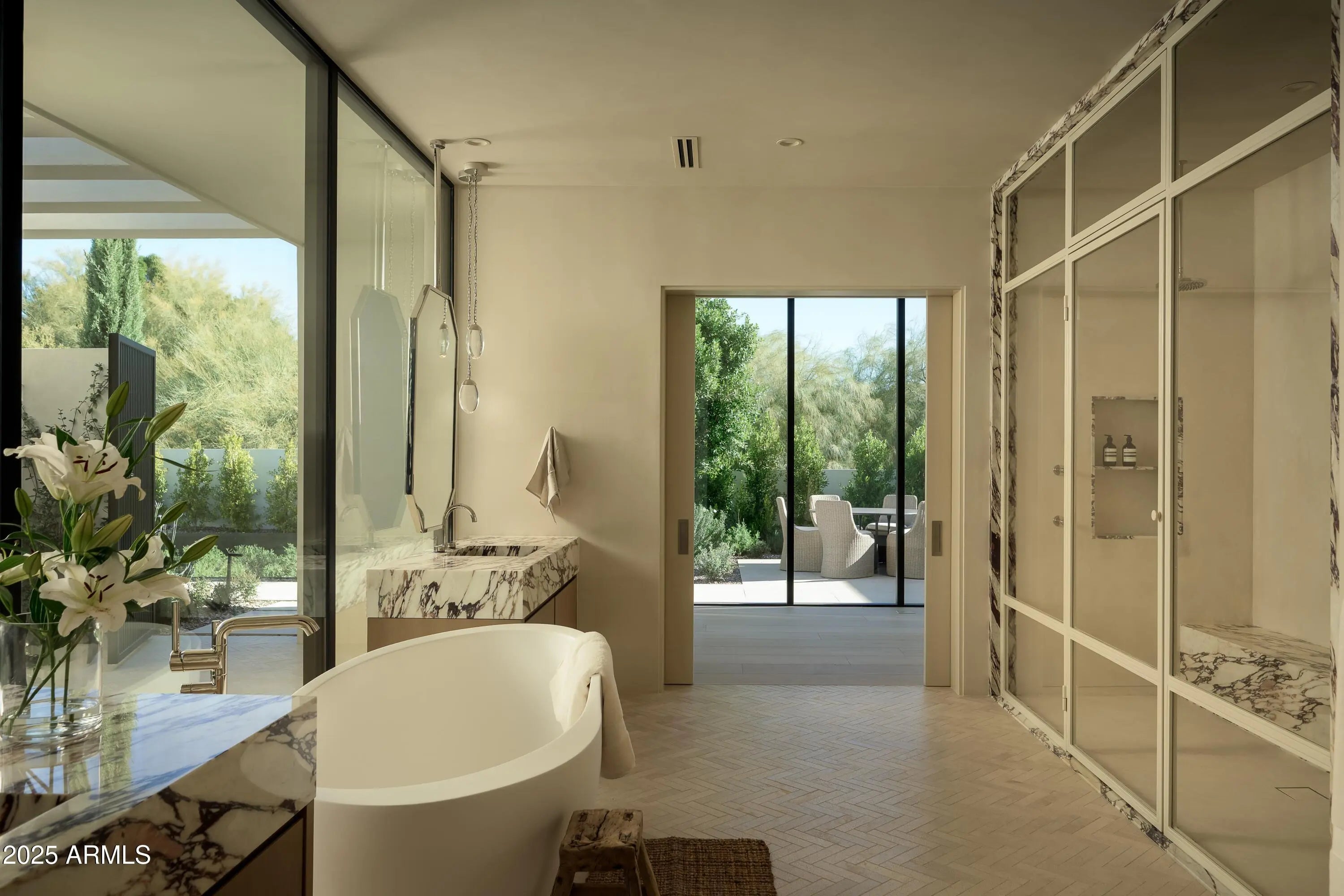 Offering a quiet retreat designed to support beautiful daily life at the highest level. Built to exceed expectations. Precise planning and honest materials—natural light, balanced proportions, and high-quality construction—aid in comfort and utility. Sited on a naturally-elevated lot on a dead-end street, the home was designed to emphasize both intimate and expansive views of Camelback Mountain, Phoenix Mountain Preserve and Mummy Mountain. Considerable engineering and hyper-attention to detail went into every element selected for durability, performance, and long-term value in Arizona. All-steel construction, plaster walls + doors, custom-quarried limestone floors inside and out, premium Roman travertine + Calacatta Viola marble counters, floating limestone hearths, incredible lighting..