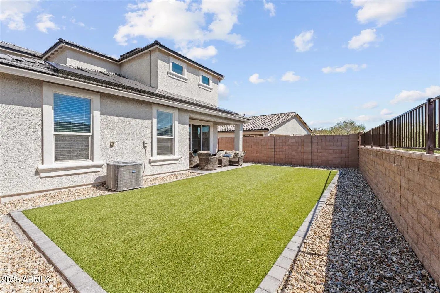 Adjacent to Wash, North/South Exposure, Gravel/Stone Front, Synthetic Grass Back