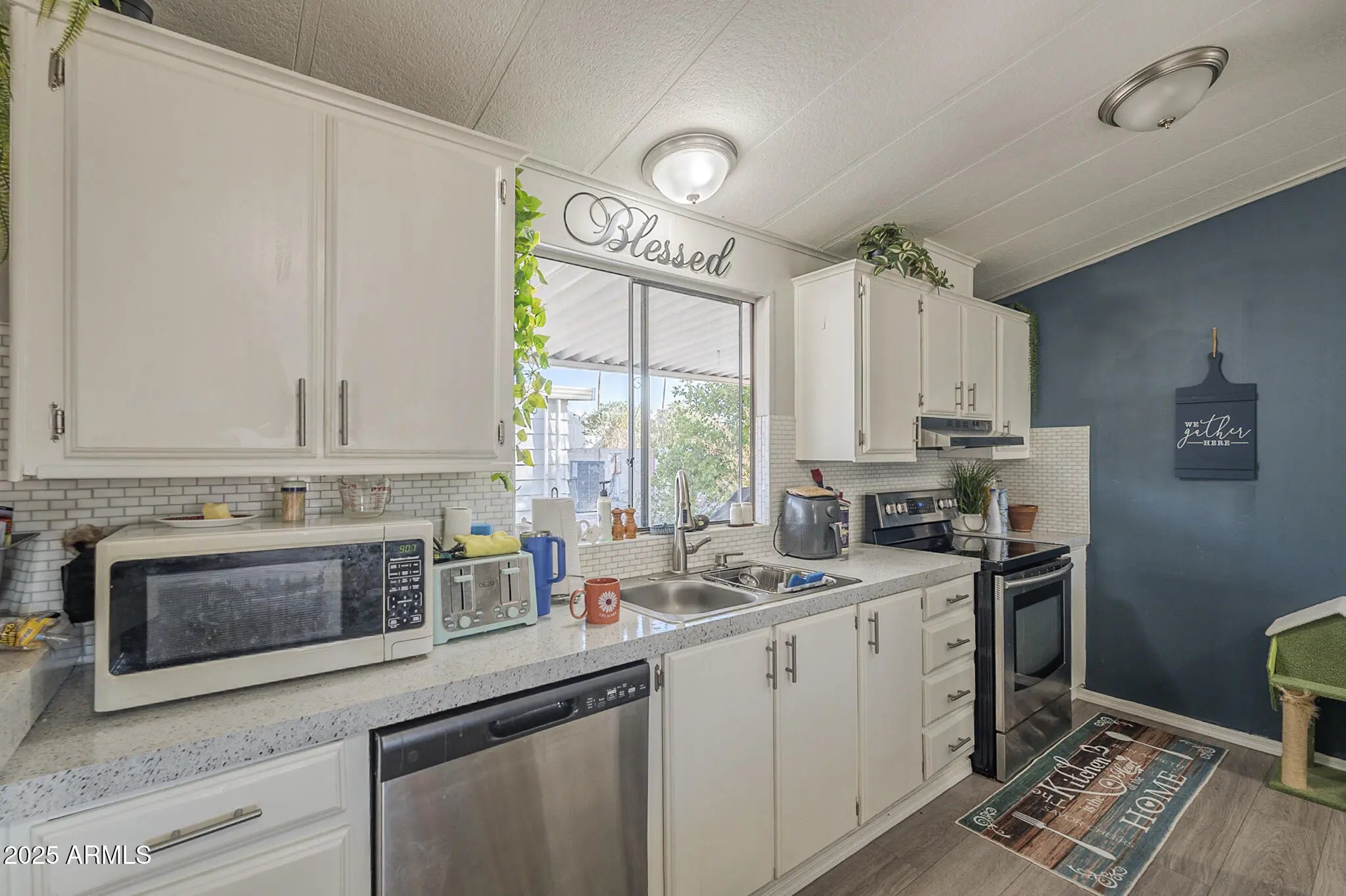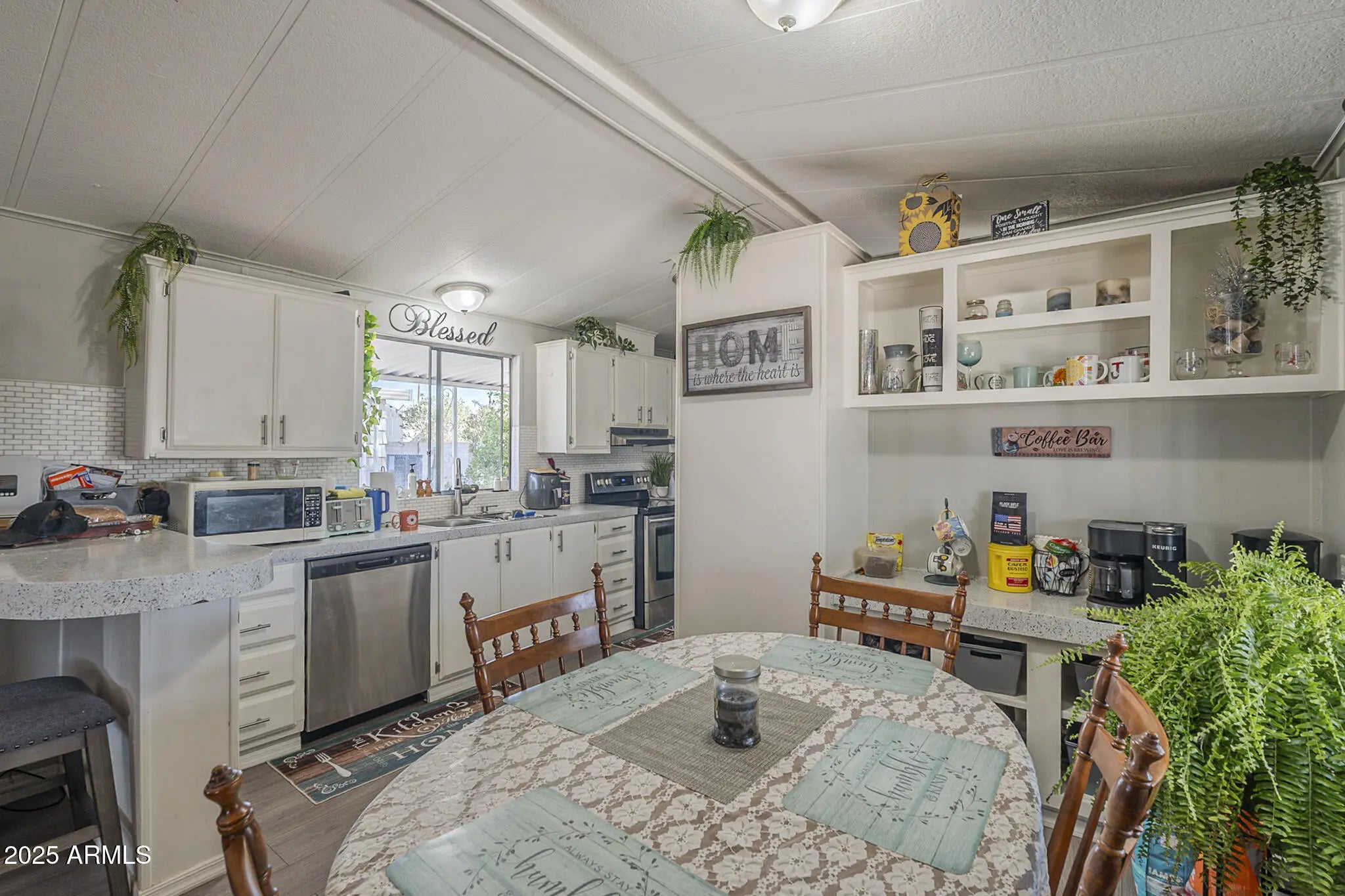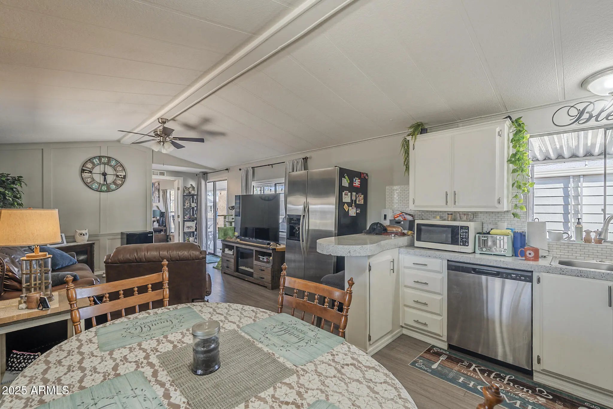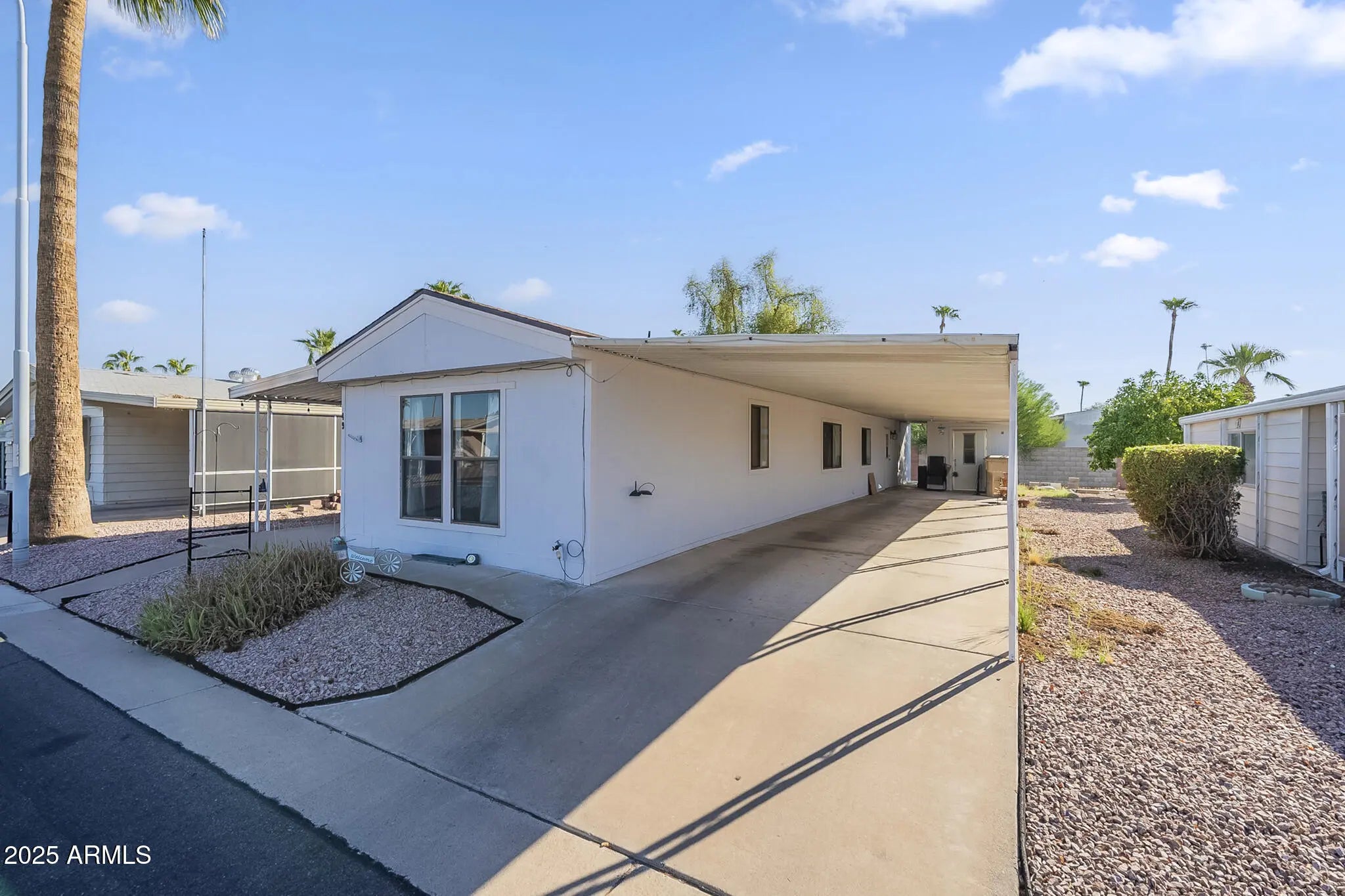 Welcome to this charming 1-story mobile home featuring 2 bedrooms and 2 bathrooms. New water heater, electrical panel and roof! Step inside to find an open layout with modern vinyl flooring, granite countertops, and crisp white cabinetry that pairs perfectly with stainless steel appliances. The spacious kitchen and dining area make entertaining easy, while the bedrooms provide comfort and privacy. Enjoy the convenience of a carport and driveway for ample parking. This move-in ready home blends style, comfort, and functionality ideal for everyday living.