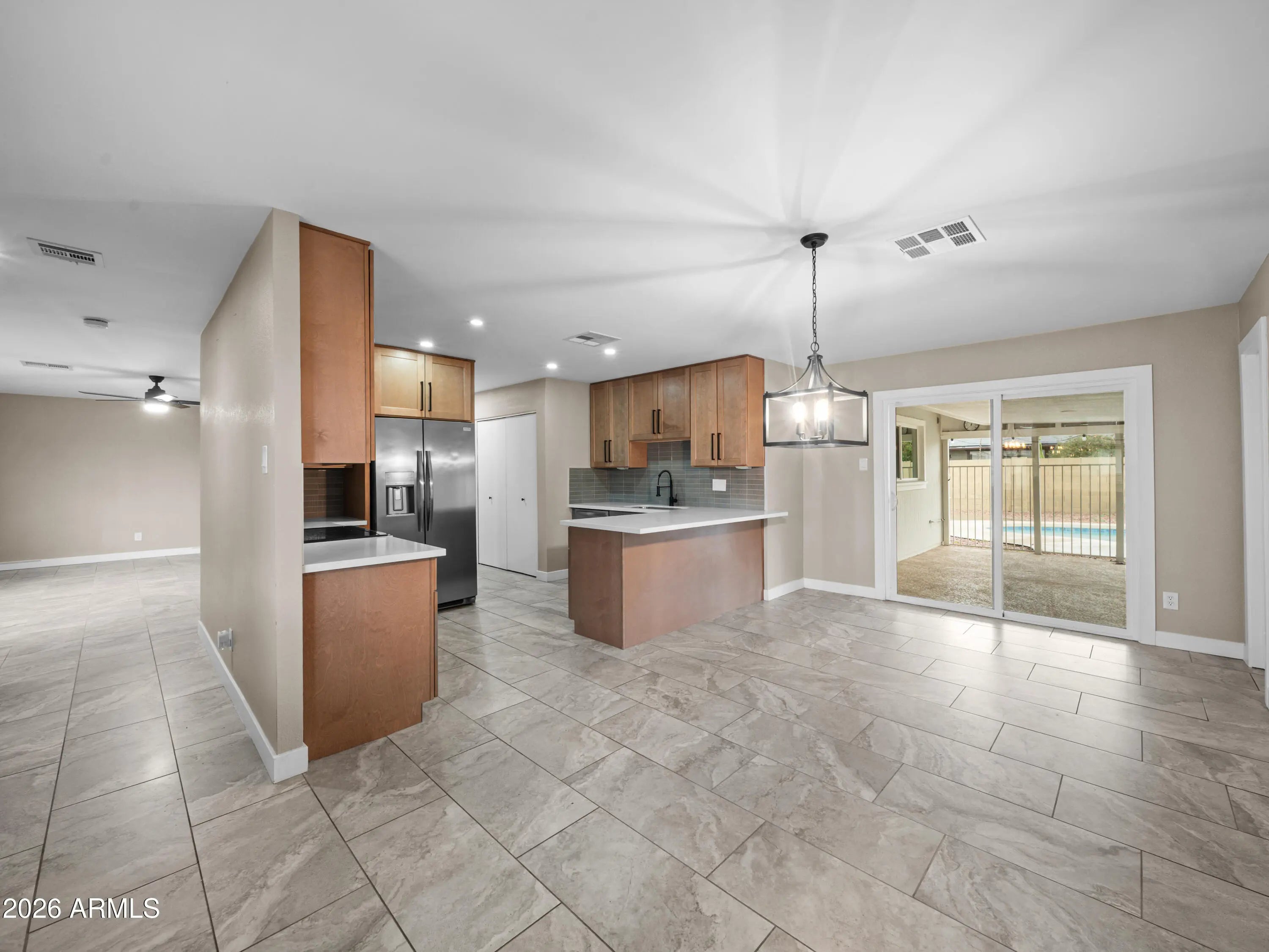 $30,000 Price REDUCTION! Cul de sac lot home with a Separate Casita/Pool House and no HOA, RV Parking! This gem's interior blends style and comfort, showcasing tasteful tile flooring, an abundance of natural light, and neutral tones throughout. The pristine kitchen boasts shaker cabinets, tile backsplash, quartz countertops, and built-in essentials for a seamless cooking experience. The primary bedroom hosts a closet and a bathroom for privacy. You'll love the convenience of the guest quarters, complete with separate living spaces and a kitchen. Enjoy outdoor living to the fullest in the backyard, including a covered patio ideal for entertaining, plenty of seating space, and a sparkling pool, perfect for sunny days! What's not to love? Make it yours!