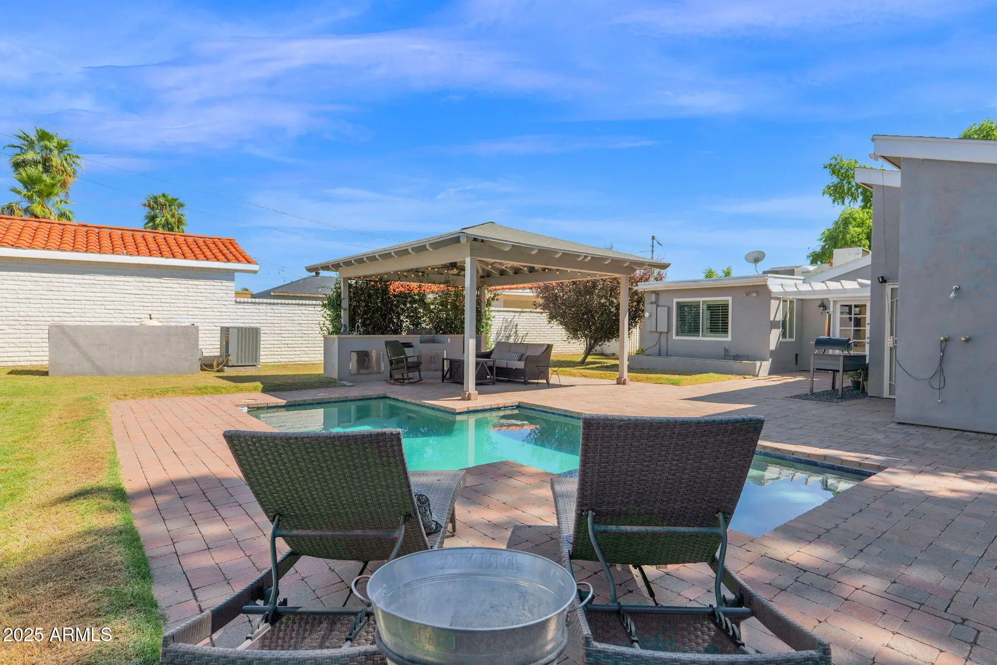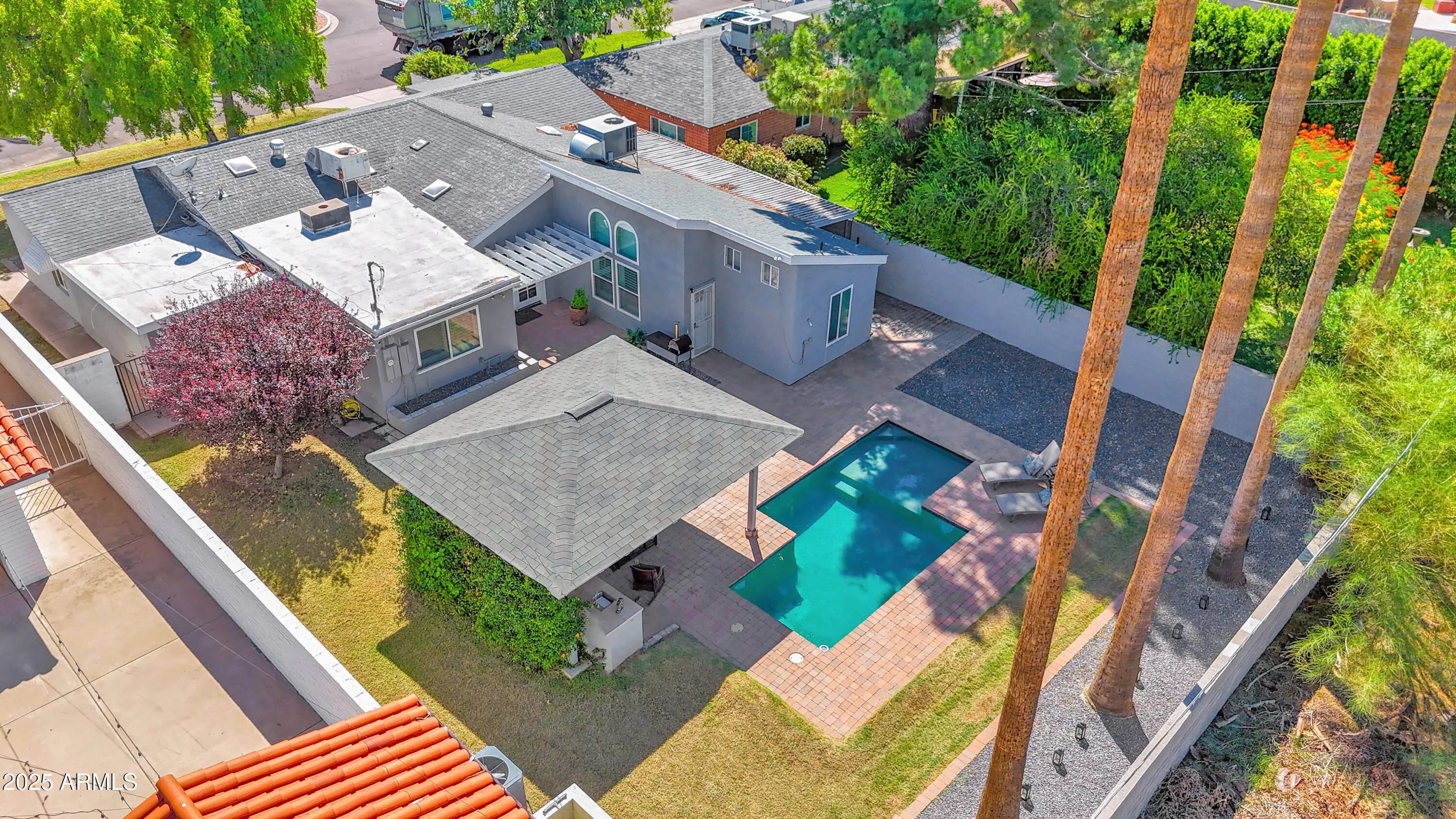 Beautifully updated single-story home located in the highly sought-after Tangerine Park subdivision in the heart of Uptown Phoenix. Perfectly situated on a north/south-facing lot, this property offers complete privacy, timeless design with modern luxury, a split floor plan, and is priced more than $40,000 below its recent appraised value. Formal living and dining rooms are filled with an abundance of natural light, vaulted ceilings, multiple seating areas, and French doors leading to the resort-style backyard.The gourmet kitchen features luxury custom cabinetry, white quartz countertops, a handcrafted porcelain backsplash, rustic ceramic tile flooring, a pantry, double ovens, built-in microwave, and top-of-the-line stainless steel appliances.The cozy family room features a charming stacked brick fireplace, picturesque windows, and a French door to the backyard.The expansive primary suite offers a separate seating area, patio access, a double vanity, an oversized glass-enclosed slate walk-in shower, and a massive walk-in closet (recently converted from an attached room for extra space). Secondary bedrooms, bath, and office/den are conveniently situated on the opposite wing of the home, ideal for family and guests.The backyard is an entertainer's dream, featuring a sparkling heated and cooled pool, custom paver decking and patios, a gazebo with ceiling fans, a built-in BBQ and wet bar, lush grassy areas, beautiful mountain views, and multiple seating areas. Additional home highlights include Mannington Restoration Collection flooring in all main living areas and bedrooms, fresh interior paint, custom lighting throughout, dual-pane windows, plantation shutters, irrigation in front and back, and a large attached storage room. Property is conveniently located near multiple top-rated restaurants, the Camelback Corridor, Uptown Plaza, the Biltmore, and freeway access.