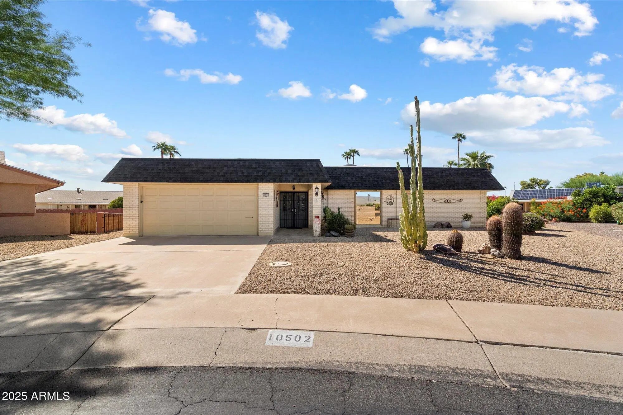 Extremely clean and well-maintained, this single-story block home is nestled in the desirable 55+ Sun City community! Step through elegant double doors into a bright and open family room featuring tall ceilings, skylights, tile flooring, and a cozy gas fireplace. The versatile floor plan includes a formal living and dining room with wood-look vinyl plank flooring, a stylish powder room, and a separate office (3rd bedroom) with French doors. The kitchen boasts granite countertops, white cabinetry, tile backsplash, stainless steel appliances with gas cooking, built-in microwave, walk-in pantry, and a sunny breakfast nook. Both bedrooms include ensuite baths and plenty of closet space, while the spacious primary suite offers a walk-in closet, built-in cabinetry, and a vanity area. Enjoy indoor-outdoor living with a covered back patio featuring tile flooring and sunshade, plus a charming side courtyard off the dining room. Sitting on a huge 10,000+ sq ft lot, this home also offers a 2-car garage with built-ins, whole-home water filtration, and numerous updates: new dishwasher (2021), roof recoated (2023), A/C (2021), water heater (2021), vinyl flooring (2020), kitchen remodel (2018), master bath remodel (2022), and upgraded electrical panel (2018). Conveniently located near recreation centers, golf, lakes, and medical facilitiesthis home combines comfort, function, and Sun City living at its best! Most furniture available on a separate bill of sale. Welcome to your next chapter in Sun City, AZ where 55+ living meets resort-style amenities. This vibrant community gives you unlimited access to 7 recreation centers, 7 golf courses, 18 lighted tennis courts, 9 swimming pools, and a 25,000-square-foot fitness center. Dive into arts, woodworking, ceramics, computers, and more in the many clubs and activity spaces. With miles of walking paths, year-round classes, and a calendar bursting with social events, you've got all the ingredients for fun, friendship, and wellness right at your doorstep.