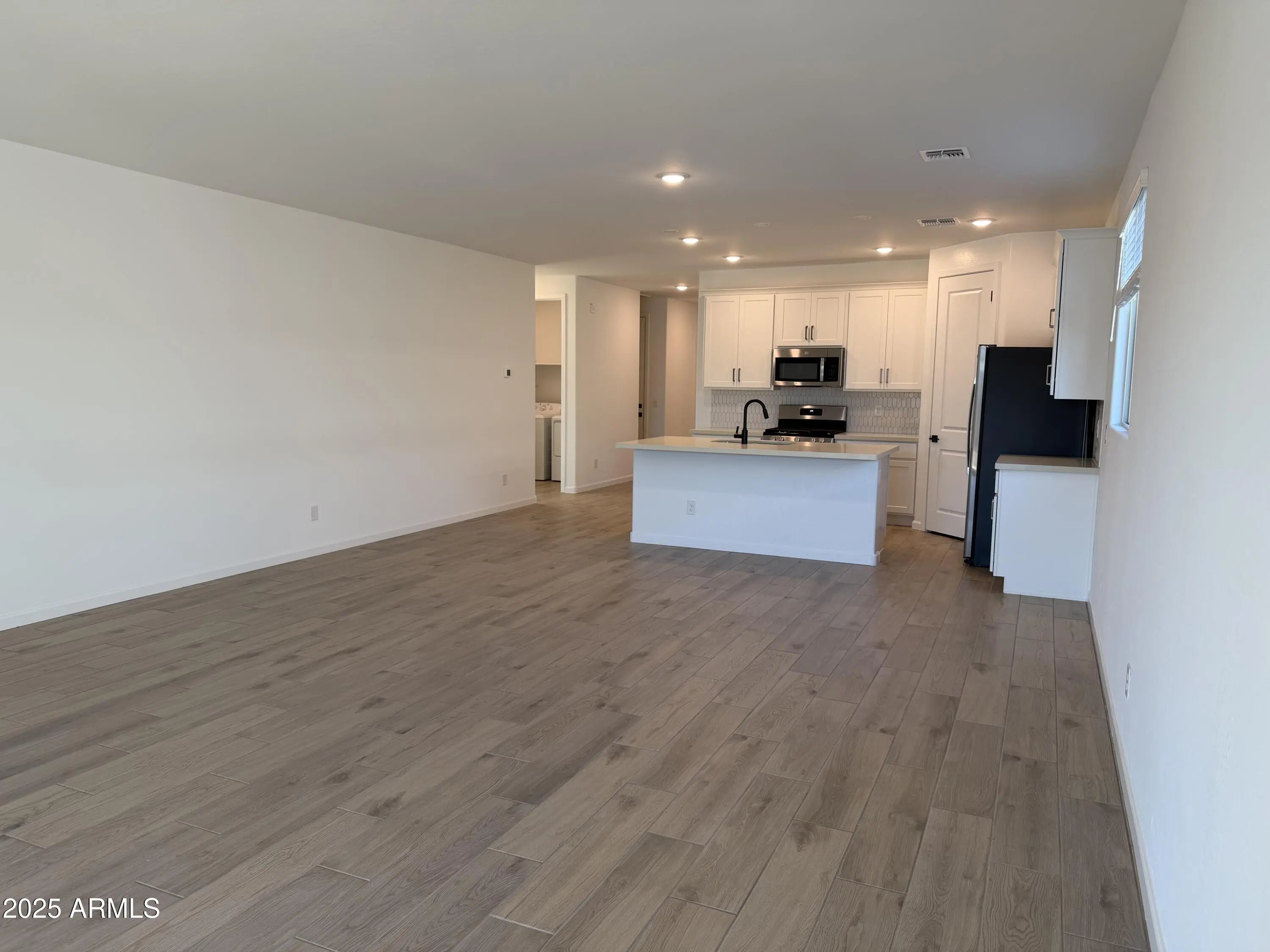 Welcome to the Sunflower Floorplan — a beautifully designed single-story home boasting 2,219 sq ft of thoughtfully crafted living space. This spacious residence features 4 bedrooms, 3 bathrooms, and a serene guest retreat perfect for visitors seeking privacy and comfort. The 2.5-car garage includes a convenient garage door opener and driveway enhanced with elegant pavers, adding curb appeal with a Farmhouse style. Step inside to discover an open-concept kitchen ideal for entertaining, complete with a large island for meal prep, a walk-in pantry, and stainless steel appliances including a range, microwave, dishwasher, and refrigerator. The kitchen shines with our Harmony collection, featuring pristine white 42'' cabinets, quartz countertops, a chic white mosaic backsplash, and pendant light prewires allowing you to personalize your space with your own flair. Rich wood-look plank tile flows through all the right areas, creating a warm and inviting atmosphere. Included are a washer, dryer, 2" faux wood blinds, and a soft water loop for enhanced water quality throughout your home. The great room opens through a stunning 4-panel center sliding glass door to a covered patio, seamlessly blending indoor and outdoor living. Imagine cozy gatherings or lively celebrations with friends and family in your private backyard sanctuary. Nestled in a prime location close to dining, freeways, parks, and entertainment, this home offers the perfect balance of comfort, convenience, and style.