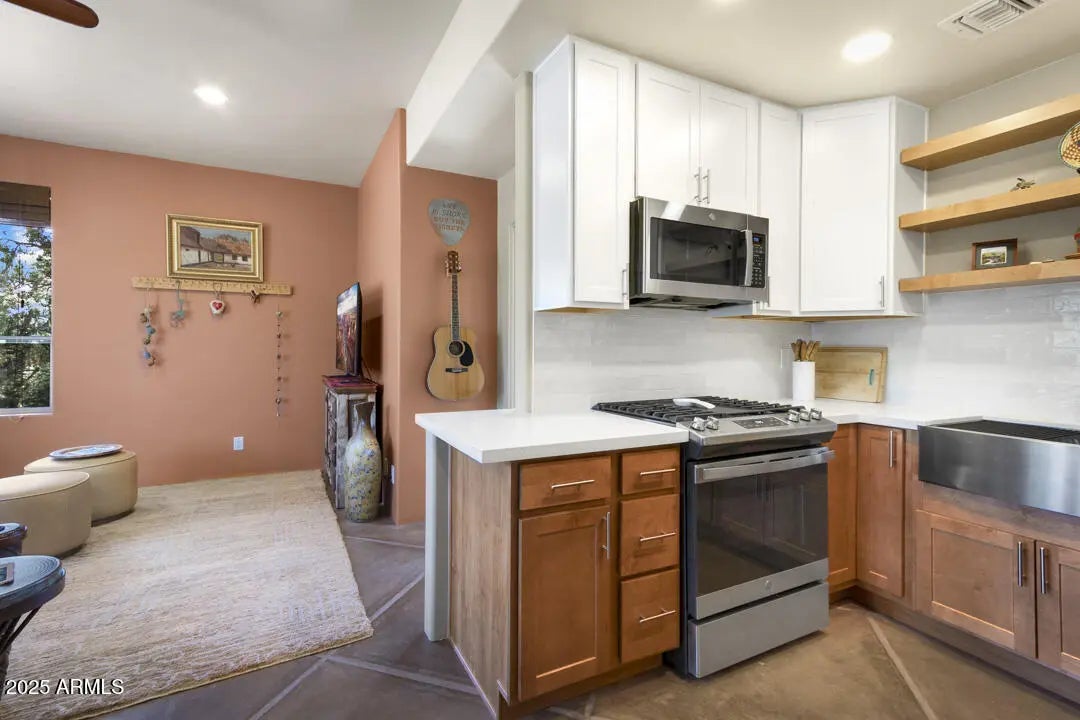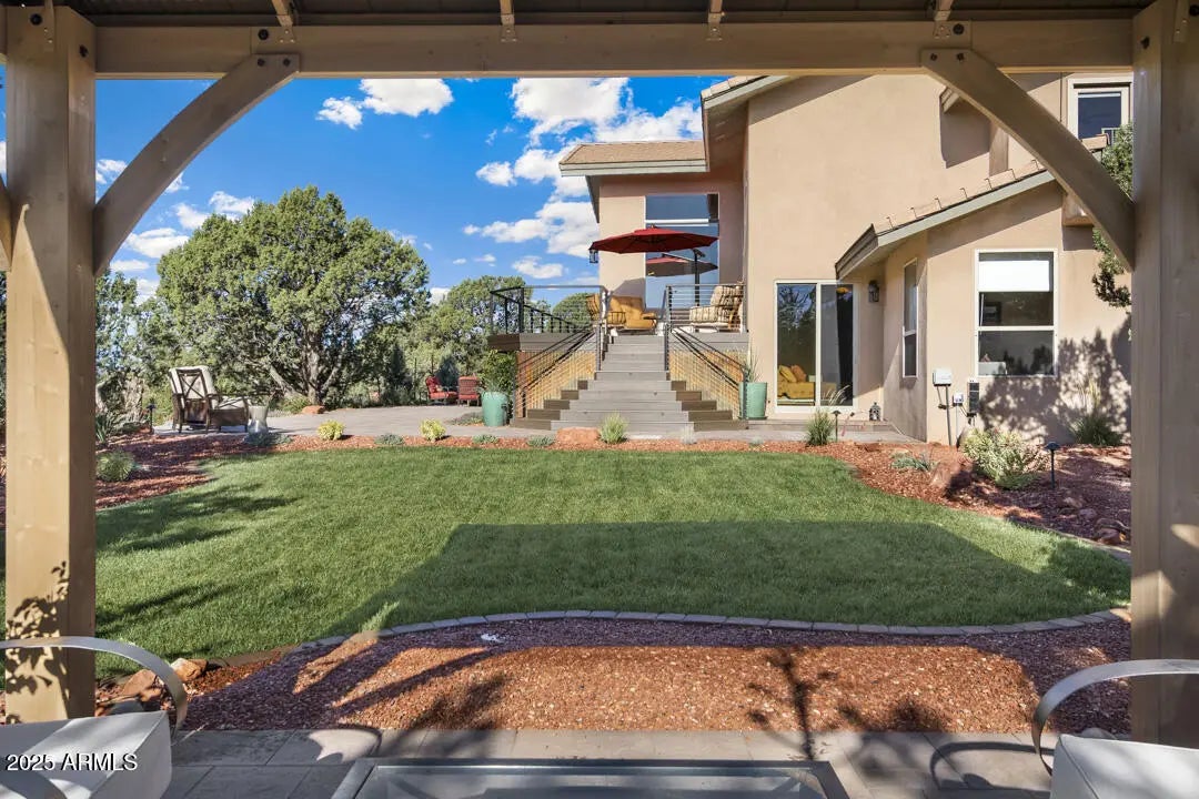 Sedona is calling-are you ready to answer? The serenity of six different outdoor living areas welcome you to our Red Rock country from this Southwestern abode. From views, to privacy, full RV hook-ups w/ample parking, and a full one acre in the no HOA subdivision of Kachina complete the package. Located in West Sedona, w/one of our best schools less than a mile away, combined w/coffee shops, juice bar, the local brew pub, a pizza parlor, the public library, and so much more right at your fingertips, this split-level home has a laundry list of upgrades. From new paint to new HVAC, to new landscaping, new decking, new massive sliding glass doors, to new lighting and beyond, you have a home here ready to roll with a mother-in-law quarters that can be completely locked off from main living. The mother-in-law quarters is totally private from the rest of the home, complete with laundry and kitchen, and proper ingress/egress. A fenced yard with real grass, beautiful pavers, landscape lighting with drip irrigation, a gas firepit, and a pretty gazebo to keep you shaded all combine to create the perfect outdoor oasis. Nearby trailheads include Thunder Mountain, Andante, the Stupa, Girdner and more, all barely two miles away. Come experience your heaven with this light, bright, happy home in Sedona now.