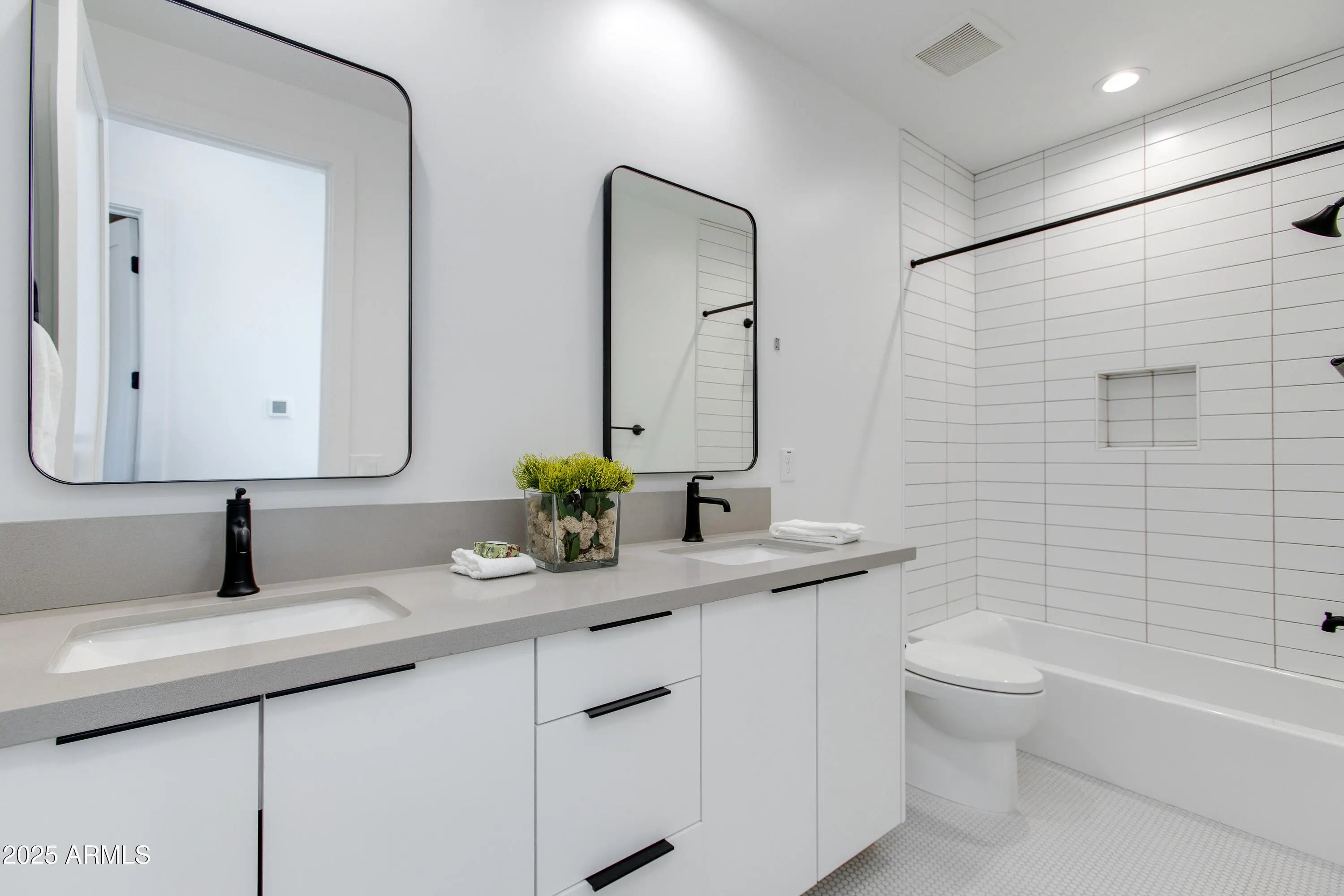 VOTED BEST HOME ON SOUTH SCOTTSDALE TOUR. Thomas James Homes presents a rare chance to acquire a brand-new, move-in ready in a quiet cul-de-sac in one of Scottsdale's up & coming neighborhoods. Just minutes from Old Town, this 5-bedroom, 4.5-bath, 3-car garage modern home is positioned for long-term value. The first floor offers highly desirable amenities for families and guests alike: an open-concept layout, private office for those remote workers, spacious game room, ensuite guest room, and seamless indoor-outdoor flow. Outdoor living is a major draw with a pool, built-in BBQ, and fire-pit ideal for Scottsdale's year-round lifestyle. Upstairs, a large covered terrace captures mountain views, while a loft and flex space provide versatility for work or leisure. Four additional bedrooms, a luxurious primary suite, perfect for large families, group stays, or executive rentals. With its unbeatable location near Old Town's dining, shopping, TPC and entertainment, plus modern construction requiring minimal maintenance, this home is a standout investment in Scottsdale's thriving housing.