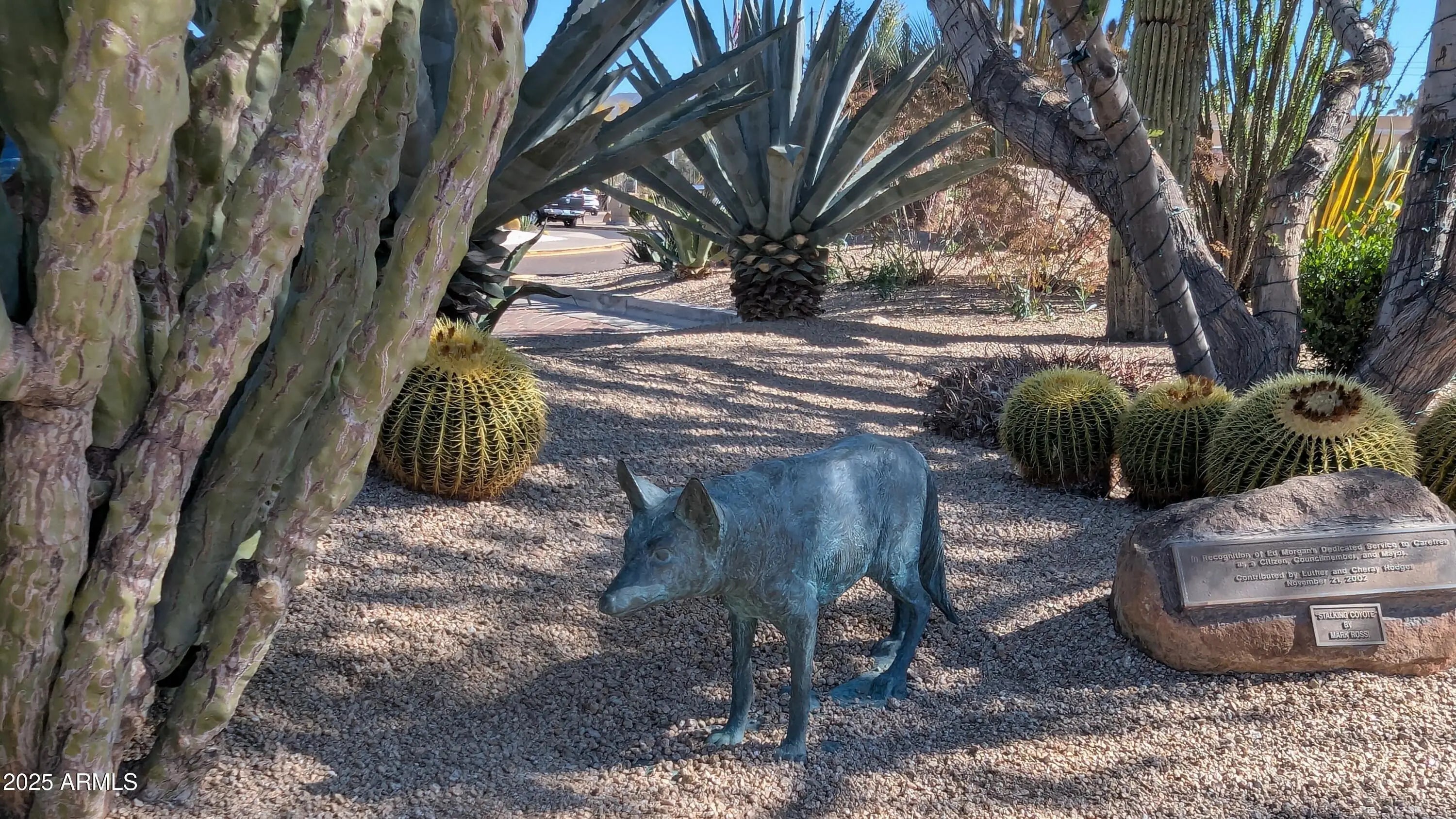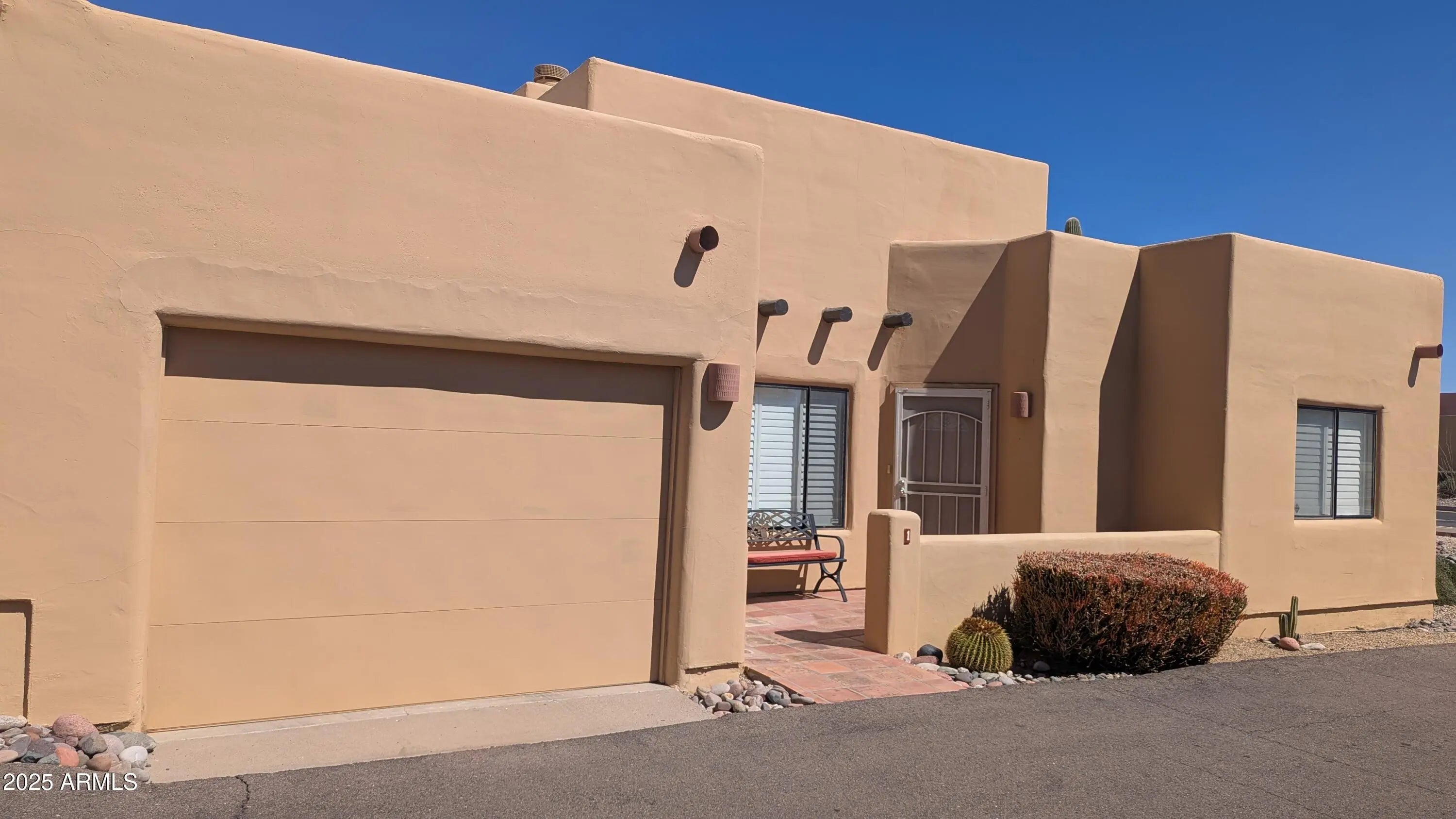 Discover this beautifully updated patio home with an excellent floorplan, ideally situated in the heart of Carefree. A new roof, fresh painted interior and a new ac in 2024 add to the peace and comfort. Enjoy the convenience of festivals, farmers markets, charming shops, and delightful restaurants just steps away. The inviting great room features travertine floors, a vaulted ceiling with clerestory windows, a central gas kiva fireplace, plantation shutters and is plumbed for a wet bar. The open dining area seamlessly connects to your private patio, perfect for relaxing or entertaining. The kitchen is tastefully updated with granite counters, stainless steel appliances, a built-in microwave, solid wood cabinets, and convenient pull-out shelves. The spacious primary bedroom offers direct access to the back patio along with a luxurious ensuite bathroom featuring a walk-in shower (with a large bench & grab bars), dual sinks, and a generous walk-in closet. The second bedroom has lots of windows making a nice bright room with an adjacent guest bathroom also boasting a walk-in shower with elegant tile work and granite countertops. For added convenience, the inside laundry room includes shelving for extra storage. Step outside and explore all that Carefree has to offer, including its beautiful desert garden. World-class golf courses, scenic hiking trails, and mountain biking routes are just minutes away. For water enthusiasts, Bartlett Lake and Lake Pleasant provide excellent boating and water sports opportunities. With the airport less than 45 minutes away, this home is an ideal destination for seasonal enjoyment. Please note that the complex is transitioning away from rentals