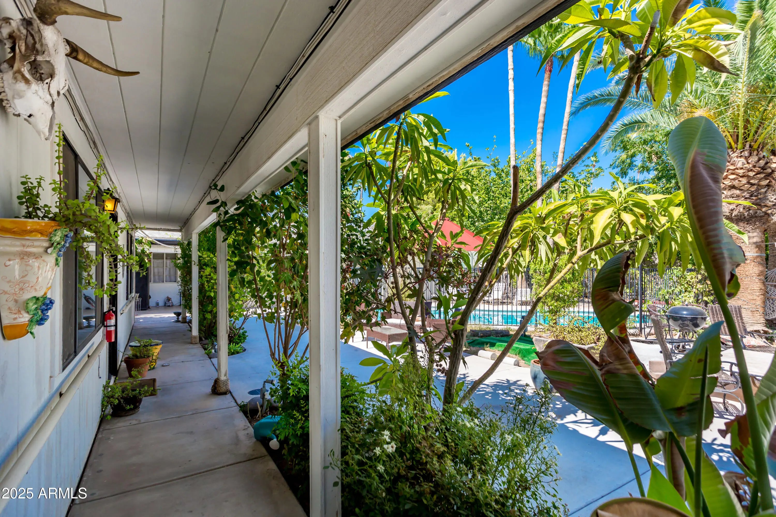 Historic Medlock Place - R-3 Zoned Half Acre Oasis Rare offering in the Medlock Historic District! This 1958 mid-century ranch sits on a flood-irrigated ½ acre with a lush food forest of citrus, pomegranate, fig, mango, jackfruit & more. Zoned R-3, the property is perfect for short-term rentals, bed & breakfast, assisted living, multi-rental income, or as a private retreat. The main home features updated baths (2023), original stained concrete floors, split-zone AC, kitchenette in primary, and gas fireplace. Enjoy a resurfaced pool, outdoor shower, covered patio, and full perimeter security. Additional improvements include a 1,752 sq ft apartment building (duplex-ready), a 952 sq ft guest house, 350 sq ft laundry facility, and a 3-car garage with ample parking. Truly one-of-a-kind! Historic Medlock Place - Mid-Century Modern Oasis on Half Acre with Guest Units, Pool, Multi-Rental Income & R-3 Zoning Welcome to a rare opportunity in the heart of the Medlock Historic District. This 1948 mid-century ranch on a flood-irrigated half-acre blends vintage character, thoughtful updates, and extraordinary versatility. Zoned R-3, the property is ideal for multi-rental income, short-term rentals, a bed & breakfast, assisted living, multi-generational livingor simply enjoyed as your own private retreat in one of Phoenix's most beloved historic neighborhoods. Food Forest & Lush Grounds The property is a true urban oasis, lined with mature flowering oleander, bougainvillea, prickly pear, ocotillo, hibiscus, roses, plumeria, and more. A thriving food forest offers Mexican lime, fig, pear, blood orange, orange, ruby red grapefruit, multiple mulberries, moringa, atemoya, mango, sapodilla, pomegranate, pink lemon, jackfruit, kumquat, and lemon trees. The grounds feature RainBird drip irrigation in the backyard, pop-up sprinklers in the front, and flood irrigation throughout. Main Ranch Home (1948) The main residence offers three AC split systems for zoned climate control, updated bathrooms (2023), a primary suite with kitchenette and 220v power, and original stained concrete flooring. Other highlights include re-insulation (2024), copper electrical conduit, a fire sprinkler system (2018), wood and cellular blinds, stackable washer/dryer, and a cozy gas fireplace. Outdoors, enjoy a resurfaced pool (2018) with newer pump (2024), outdoor shower, and gas line hookups for heating or firepit. Patio and underground wiring with lighting were added in 2019. The home is fully gated with coded Schlage locks and modern security including Google lighting controls and cameras. Apartment Building (1978) The 1,900 sq ft apartment building offers double-paned windows, granite counters, stained concrete flooring, and two AC units (4-ton and 3-ton). Originally designed as a duplex, it can be easily re-configured, with quotes on file. This structure provides excellent rental income potential, staff housing, or guest accommodations. Guest House & Additional Facilities A 900 sq ft guest house with four-ton AC (2020) includes stained concrete floors, ceiling fans, a full kitchen, walk-in closet, stackable washer/dryer, and gutters with shade sails. A separate 350 sq ft laundry facility includes two washers, two dryers, AC, and fridge. The property also includes a three-car garage with wall-to-ceiling shelving and updated garage door mechanism (2020). Infrastructure & Updates Upgrades include: new roof (2018), fresh exterior paint, raised foundation throughout, four functional elevated water heaters, multiple electrical panels (three main, seven sub-panels), copper plumbing/electrical, ABS sewer lines, and gutters on both main and guest structures. Parking includes a concrete pad for five vehicles plus alley parking with gated access for four more. Rare Offering With its historic setting, extensive fruit trees, pool, multiple residences, and flexible R-3 zoning, this property offers endless opportunitieswhether as a multi-rental income investment, boutique hospitality property, assisted living facility, or a one-of-a-kind private retreat hidden within Phoenix's vibrant core.