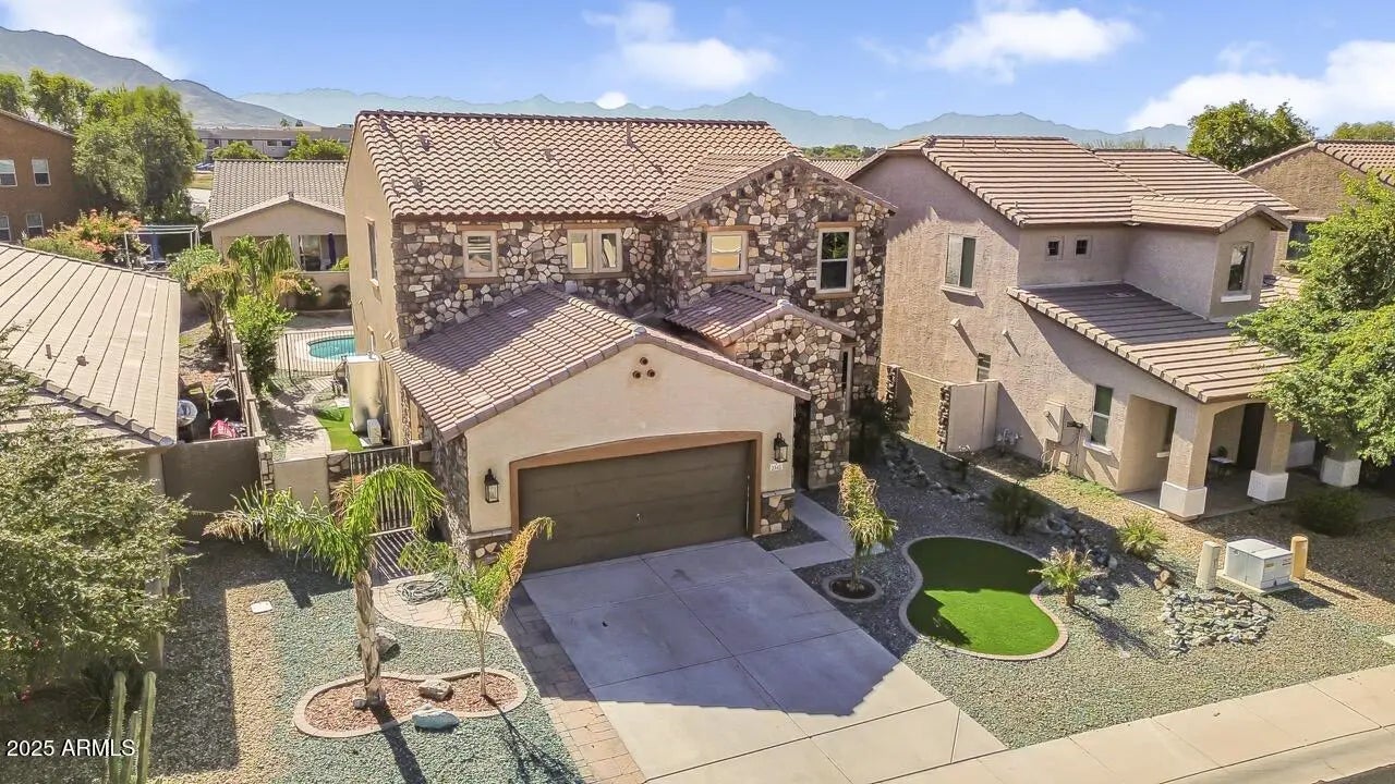 Welcome to this beautifully upgraded two story home that perfectly blends comfort, style and functionality. With 3 spacious bedrooms, 3 bathrooms, a den- plus loft and small office. Modern finishes throughout, including elegant flooring throughout, designer lighting, kitchen has upgraded cabinets, quartz countertops and backsplash. The garage has new cabinets installed. New AC 2025/2024. Step outside to your lush, landscaped backyard with a fenced pool and pergola. Designed for both entertaining and relaxation. The exterior stone accents add touch of charm and curb appeal. Located in a desirable neighborhood near the famous T Bone Steakhouse, hiking trails and minutes from the airport. This stunning home combines style, comfort and Arizona outdoor living at its best!