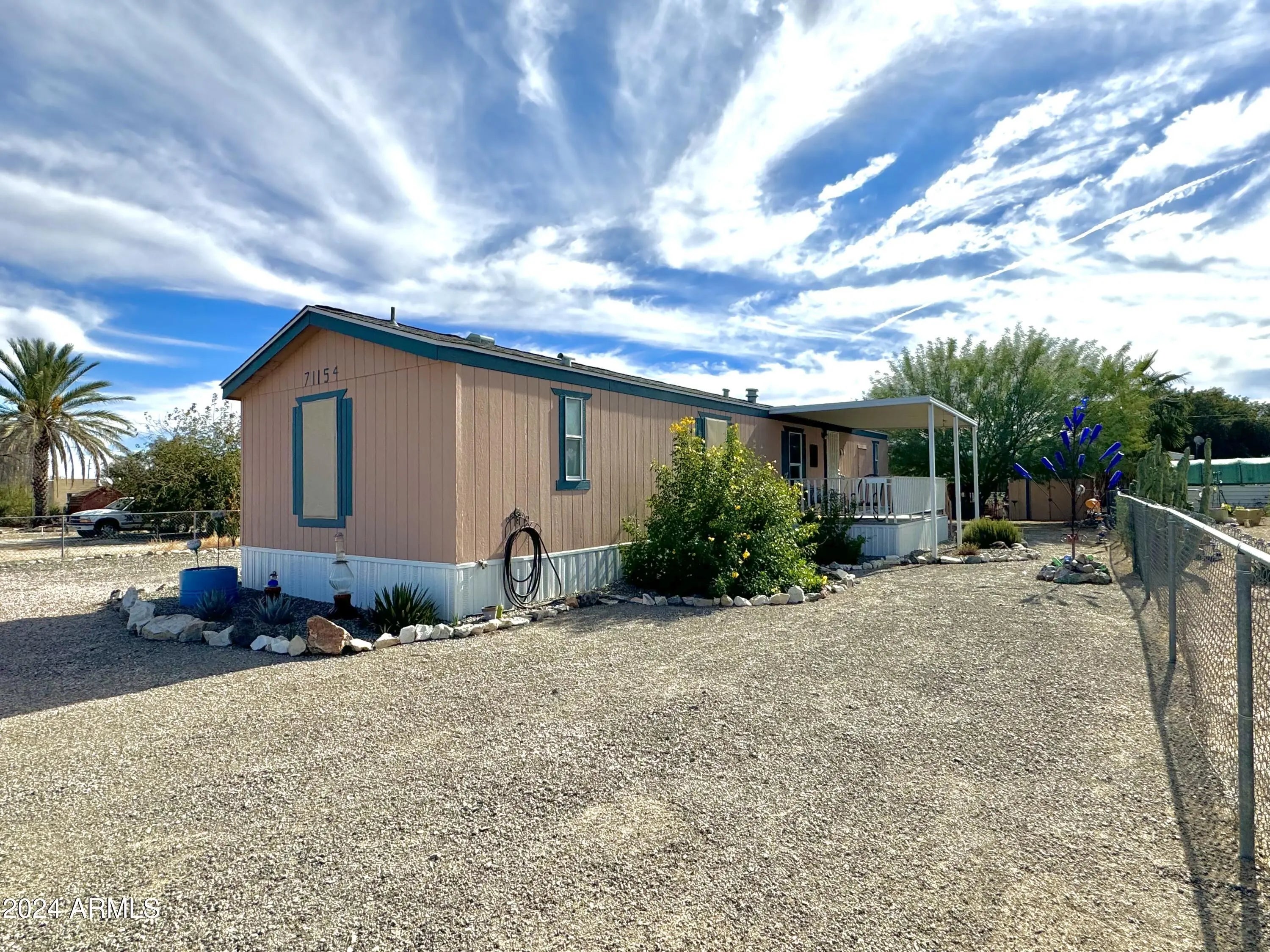 *BRAND NEW SEPTIC! HOME IS FINANCEABLE* Beautifully updated 3 bed, 2 bath home on a spacious 1/4-acre lot! Fully fenced with 3 RV gates and an RV hookup. Prime location right off HWY 60 with alley access. Large detached single-car garage with workshop, sink, vanity, toilet, storage cabinets, & laundry area (washer & dryer included). There's also an additional storage shed with shade. Enjoy the sunrise and sunset from your covered porch with recently resurfaced deck. This property is turn-key with a new roof, new windows, new AC unit, updated interior, & recently painted exterior. Inside you're welcomed by an open-concept living area. The tasteful kitchen showcases painted cabinets with new hardware, new flooring, backsplash, tons of counter space, breakfast bar, gas stove with hood, dishw asher, & sink overlooking the yard. There is even an eat-in kitchen area that also makes a nice office space. The kitchen opens to the great room with vaulted ceilings & door to back porch. Your master suite boasts a walk-in closet & en-suite bathroom with new flooring, painted vanity with backsplash, & tub/shower combo. 2 additional bedrooms on the opposite side of the home. Guest bathroom also has a painted vanity with backsplash, new flooring, & walk-in shower. Inside laundry hookup in the large storage closet that also doubles as a pantry. Mature trees, gravel, & decorative landscaping add to the charm of this beautiful property. This is the perfect place to call home. *Seller Financing available.* Come see today!
