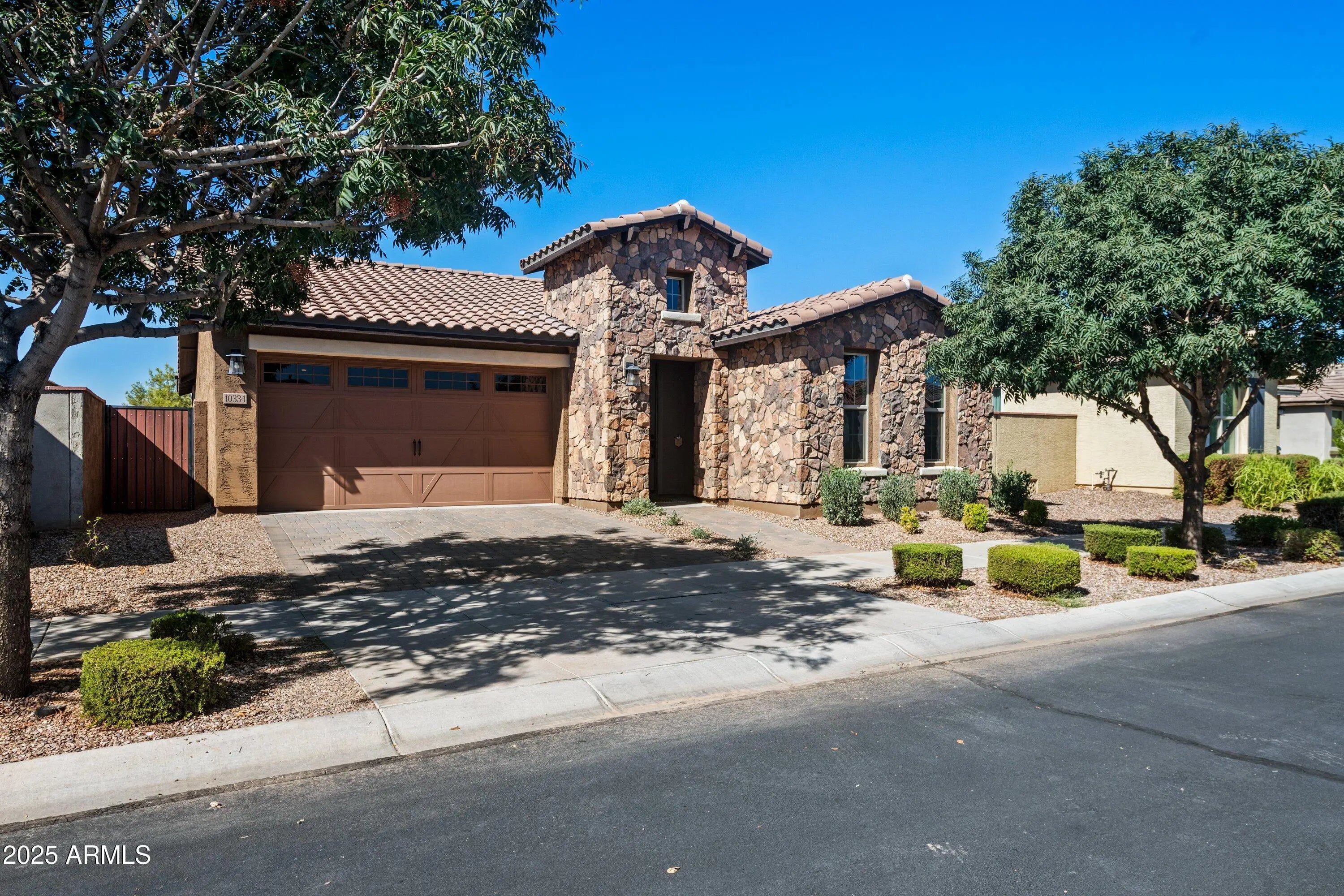 Welcome to 10334 E Corbin Ave in Mesa's highly sought-after Eastmark community. This beautifully designed single-level home offers 3 bedrooms, 2.5 bathrooms, & large bonus room with designer built-ins & 2,284 square feet of open living space. The interior features porcelain plank tile flooring for style & durability, custom accented walls throughout, upgraded fixtures, gourmet kitchen with granite countertops, & extra large island with ample cabinetry flowing seamlessly into the dining/ living areas. The master suite is a private retreat with direct backyard access, complemented by modern bathrooms & a spacious laundry room. Outdoors, enjoy a professionally landscaped yard with no rear neighbors for extra privacy,. With a three-car tandem garage that offers thoughtful storage, this home combines function with elegance. Eastmark residents enjoy access to parks, trails, community events, and convenient proximity to schools, shopping, and major freeways. This property is move-in ready and offers the perfect blend of comfort, style, and location.