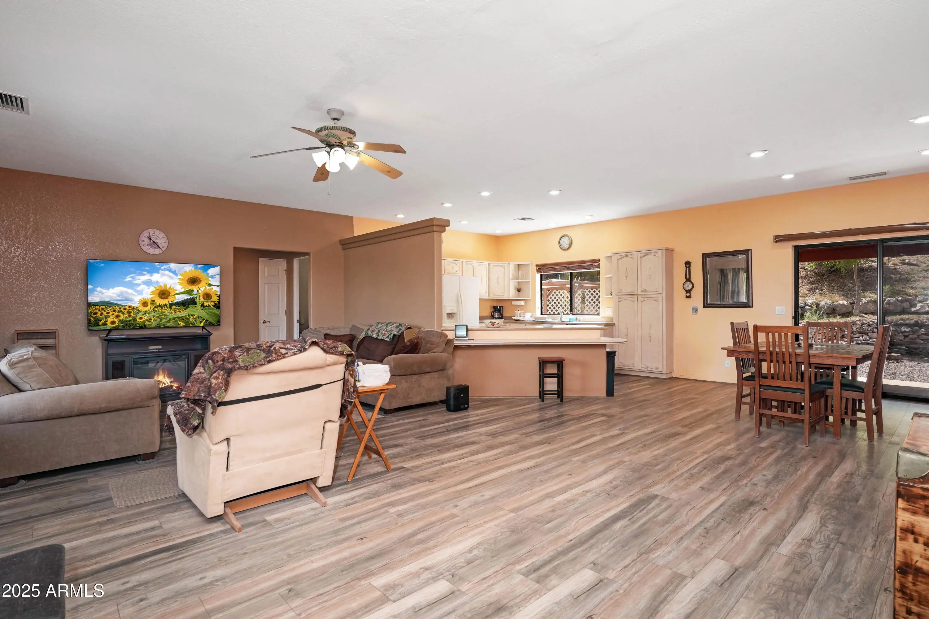 NOW OFFERING $5000 in Seller Concessions! Come and see this lovely santa fe style home today! This spacious 3-bedroom, 2-bath home offers over 1600sqft of living space and sits on a large lot set against the backdrop of Arizona's high desert. Home has a new roof, new LVP flooring and solar to keep those energy costs down. You'll love the open living area that connects to the kitchen with plenty of storage and work space. The split-bedroom layout offers privacy, while the primary suite features its own bath and a walk-in closet. With no HOA, you have more freedom to make the place your own. Set in a quiet area, you're close to outdoor spots like Beaver Creek and Montezuma Well, but still within reach of Cottonwood and Sedona.