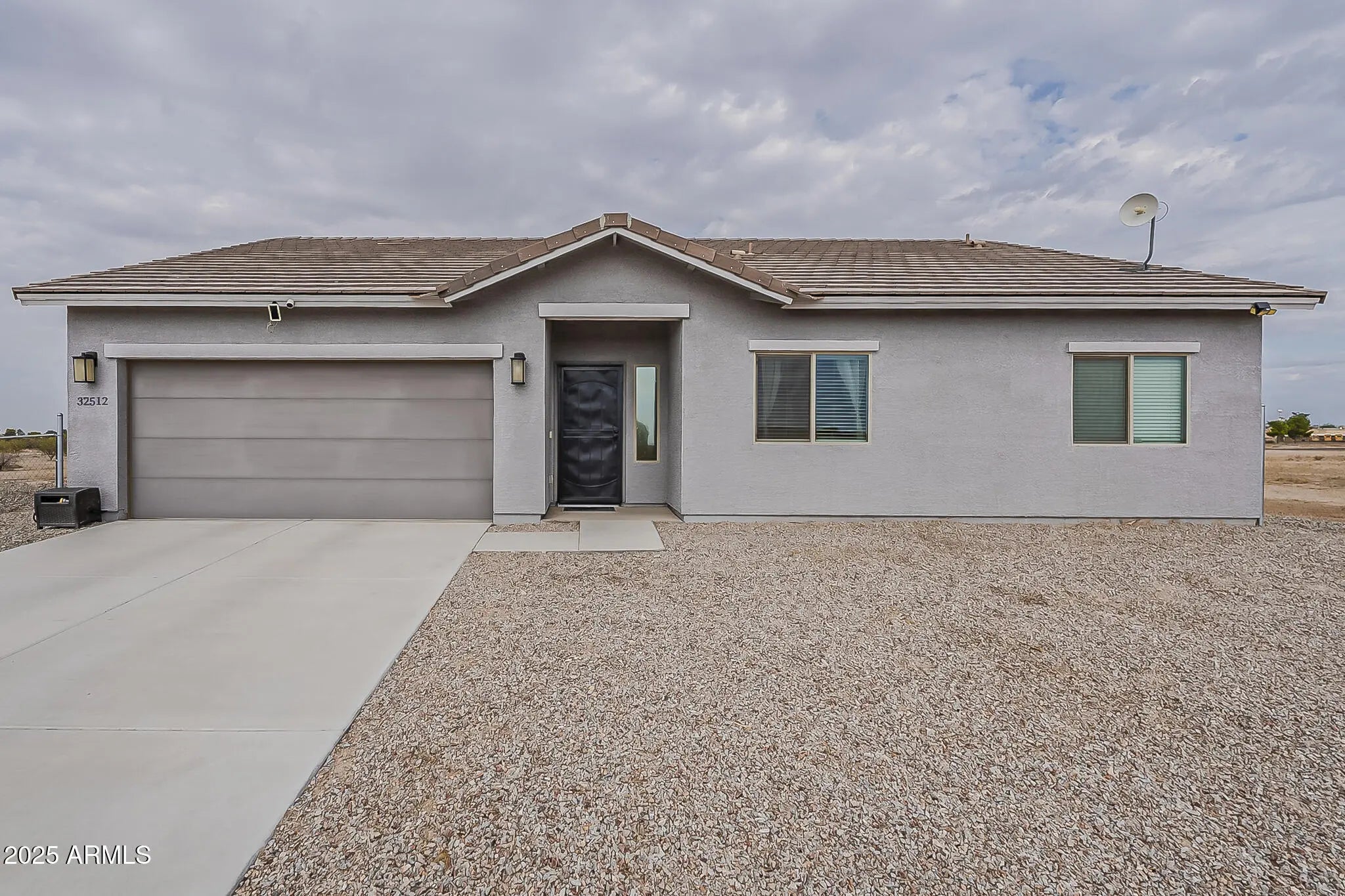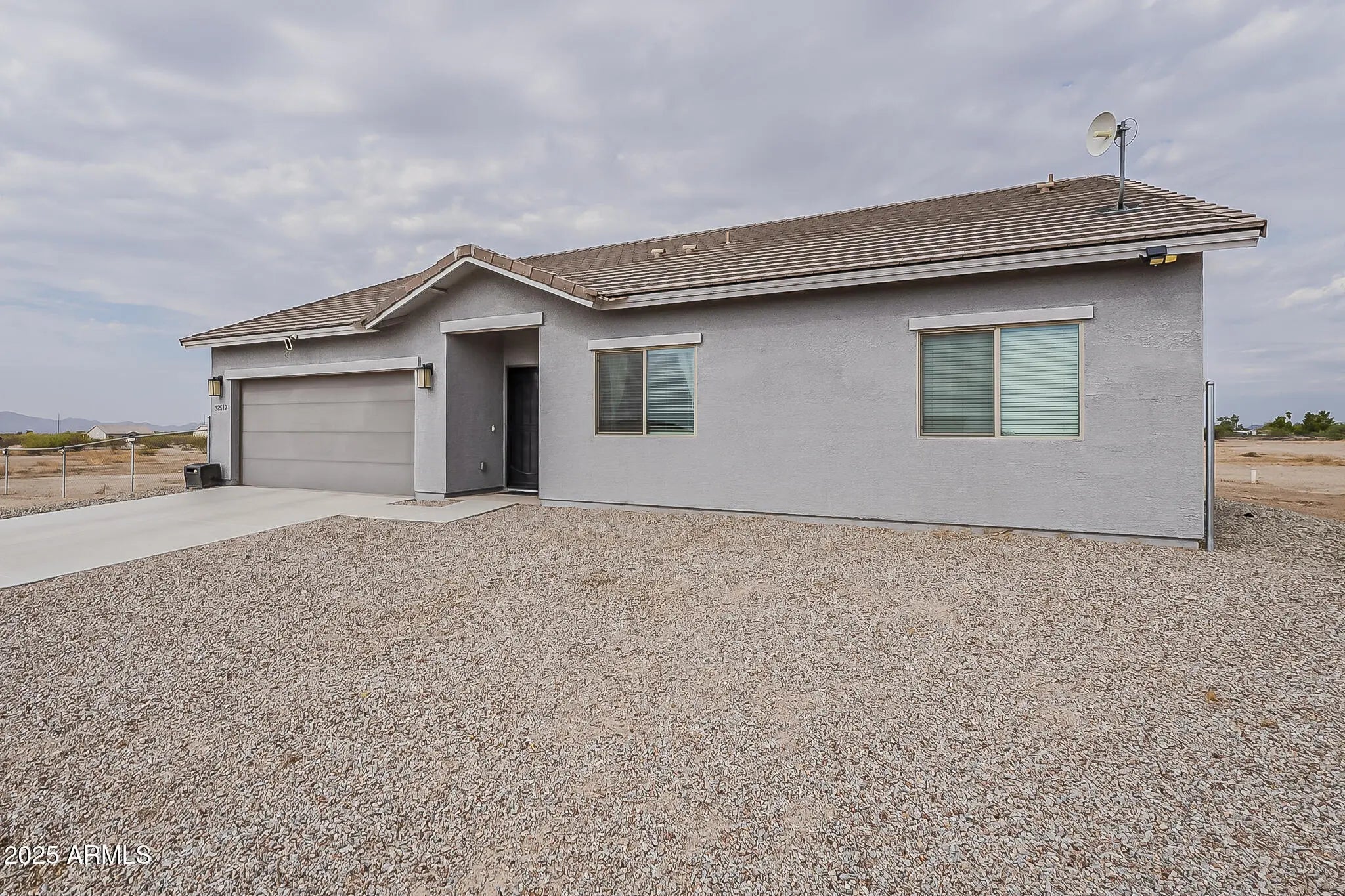 Charming single-story home with 3 bedrooms and 2 bathrooms on a full acre of land. Features include tile flooring, a modern kitchen with granite countertops, white cabinets, and stainless steel appliances. The open layout provides a spacious feel, while the primary suite offers comfort and privacy. Enjoy a covered patio perfect for outdoor living, plus a 2-car garage and driveway for ample parking. The backyard is a blank canvas, ready for your personal touch to create the outdoor oasis you've always dreamed of. Whether you envision a pool, garden, or extended patio, the possibilities are endless. Located in the peaceful community of Wittmann, this home combines modern living with a small-town feel don't miss your chance to make it yours!