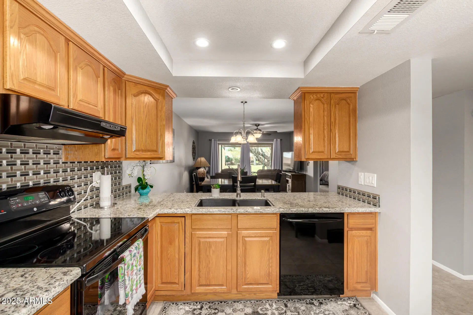 Beautifully updated home on a golf course lot in Fountain of the Sun, a gated 55+ community in Mesa. The interior features new LVP flooring, new ceiling fans, and a kitchen with granite counters. Both bathrooms have been upgraded, including a fully tiled step-in shower. The home is exceptionally clean, well maintained, and move-in ready. All windows and both sliding glass doors were replaced in 2020, and a new AC and heat pump were installed in 2023 for efficiency and comfort. The back patio has been resurfaced and extended with decorative stamped concrete, offering a perfect space to enjoy golf course views. Washer, dryer, and refrigerator convey with the sale. Fountain of the Sun offers an 18-hole executive golf course, clubhouse, pool and spa, pickleball, walking paths, fishing lakes, and a variety of clubs and activities, with shopping, dining, and medical services nearby.