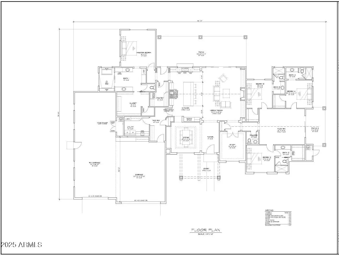 Discover exceptional luxury in this one-of-a-kind custom home designed for the ultimate lifestyle. The expansive attached RV garage with oversized doors accommodates your toys, while the deep 2-car garage provides abundant storage. Inside, entertain effortlessly in the gourmet kitchen featuring a generous island and walk-in pantry, flowing seamlessly to the great room. Host elegant gatherings in the dedicated formal dining room. The private master suite offers a spa-like retreat with dual vanities and spacious walk-in closet. Three additional en-suite bedrooms provide luxurious privacy for family and guests in a thoughtful split-bedroom layout. A separate study creates the perfect work-from-home space, while the versatile flex room adapts to your needs—home gym, playroom, or media room.