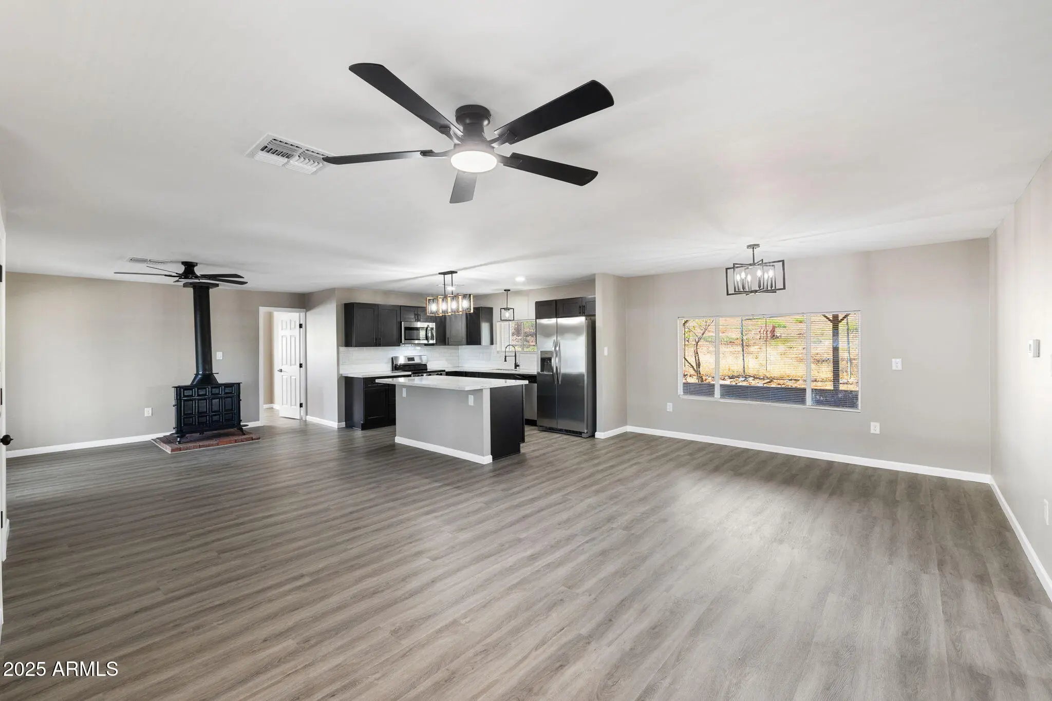 This fully remodeled three-bedroom, two-bath manufactured home in Spring Valley offers both charm and functionality. The split floor plan creates privacy, while the beautiful kitchen opens seamlessly to the dining and living areas, perfect for gathering and entertaining. A cozy wood-burning stove adds warmth and character, complemented by a brand-new HVAC system for year-round comfort. Two covered and enclosed patios provide extra living space, while a large attached storage area offers endless potential as a hobby room or workshop. The spacious laundry room adds convenience, and the fenced backyard backs up to state land, giving you peace and privacy. With a vacant lot next door, you'll enjoy even more breathing room. A large detached two-car carport provides plenty of parking. Don't let the age of this home hold you back we have a contact with non-conforming loan options