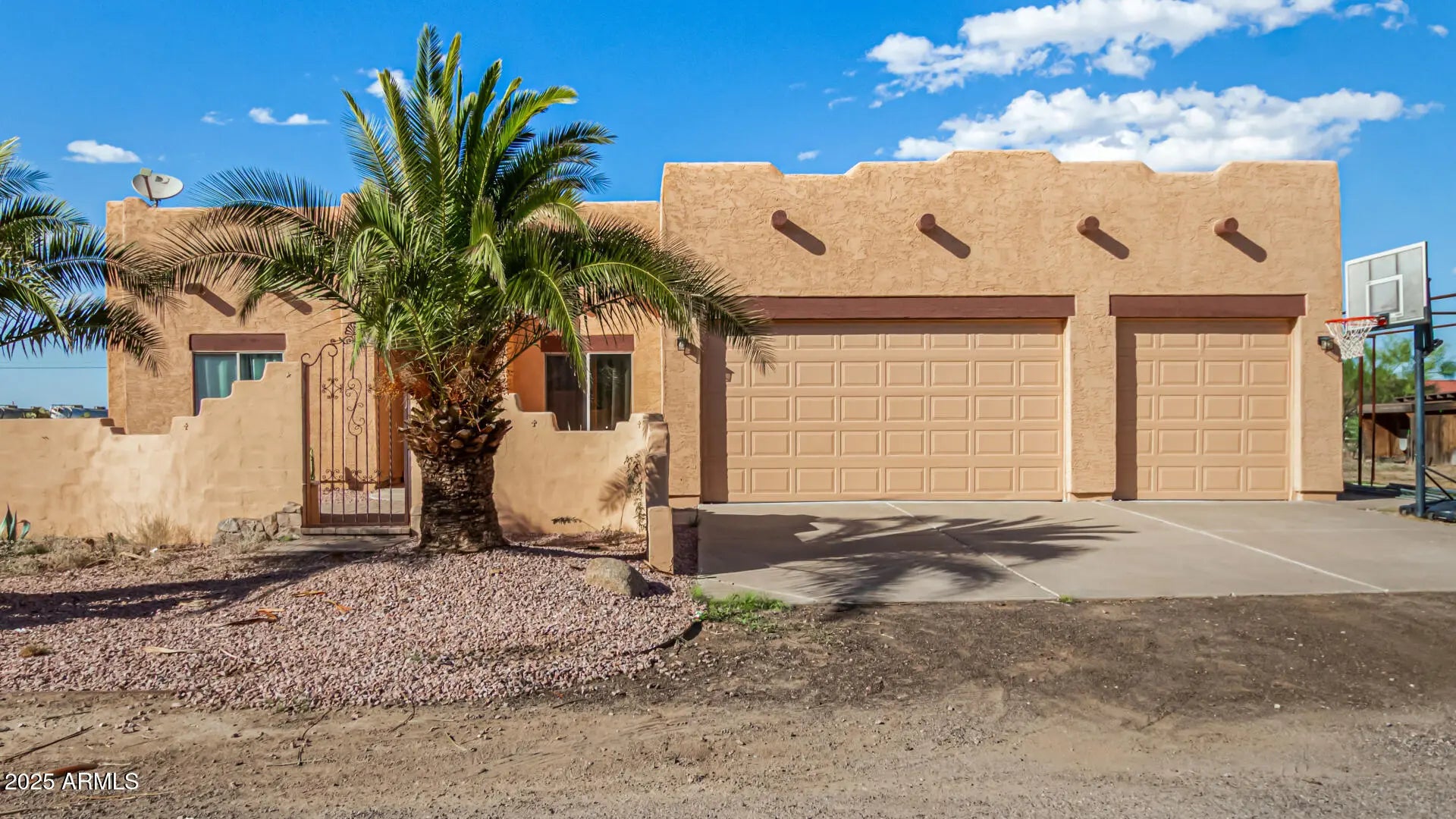 Look no further! Come and experience the taste of country living with a view! This charming horse property sits on nearly an acre and greets you with a 3-car garage and sweeping mountain scenery. Inside, a cozy fireplace warms the living room, while tile floors and a neutral palette create timeless appeal. The kitchen is a true showpiece showcasing stainless steel appliances, granite counters, wood cabinetry, and a walk-in pantry ready for all your culinary adventures. Retreat to the main bedroom featuring backyard access, dual sinks, and a spacious walk-in closet. Outside, you'll find a covered patio, sparkling pool, and plenty of room to roam corrals and stalls for your horses. Peaceful views, open skies, and endless possibilities, your desert escape awaits! Don't miss out! The batting cage is new. The Water softener, Microwave oven, Range, Dishwasher, and Refrigerator were all purchase within the last year. The washer and dryer convey, they were purchased a few months ago.