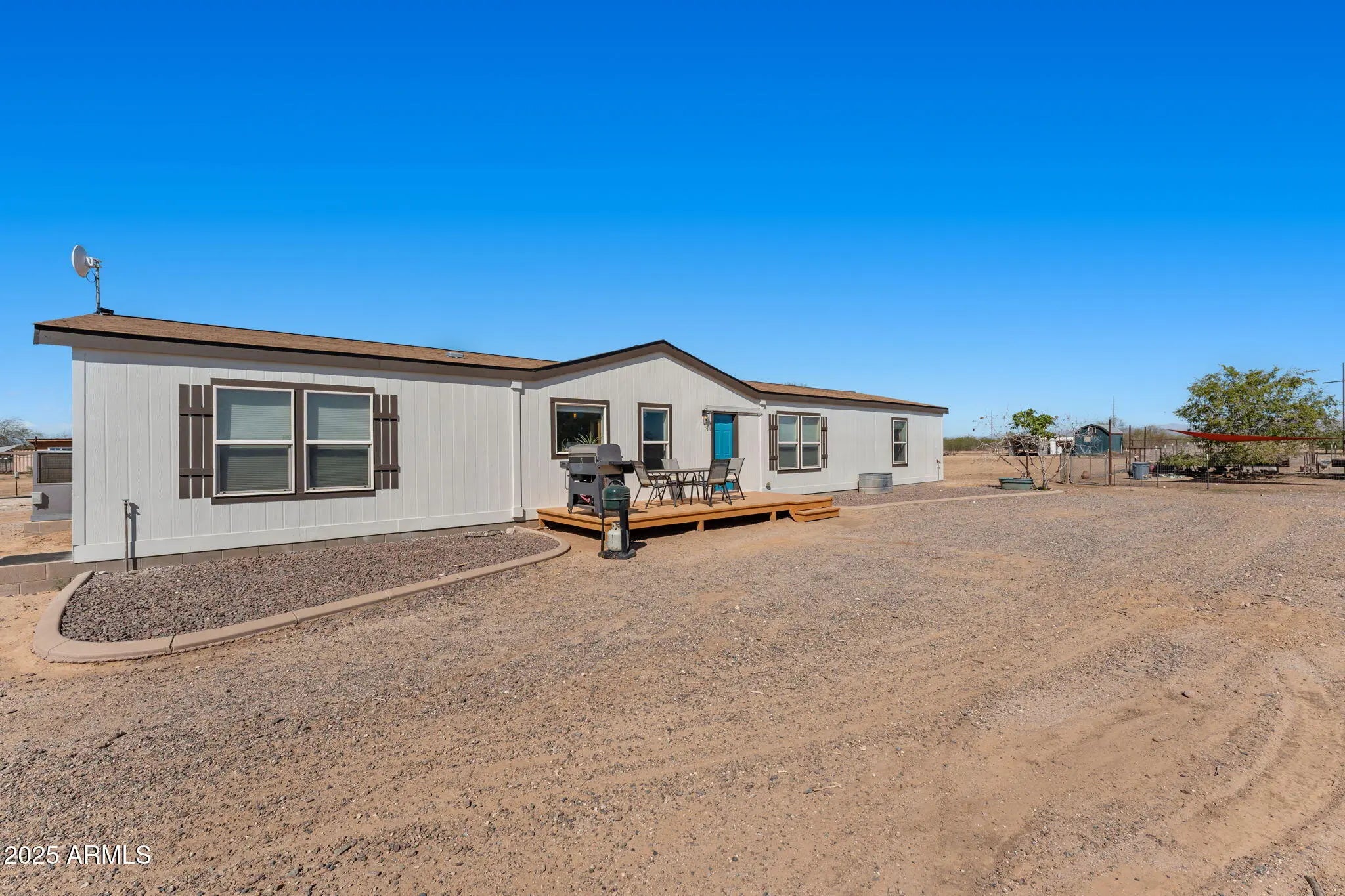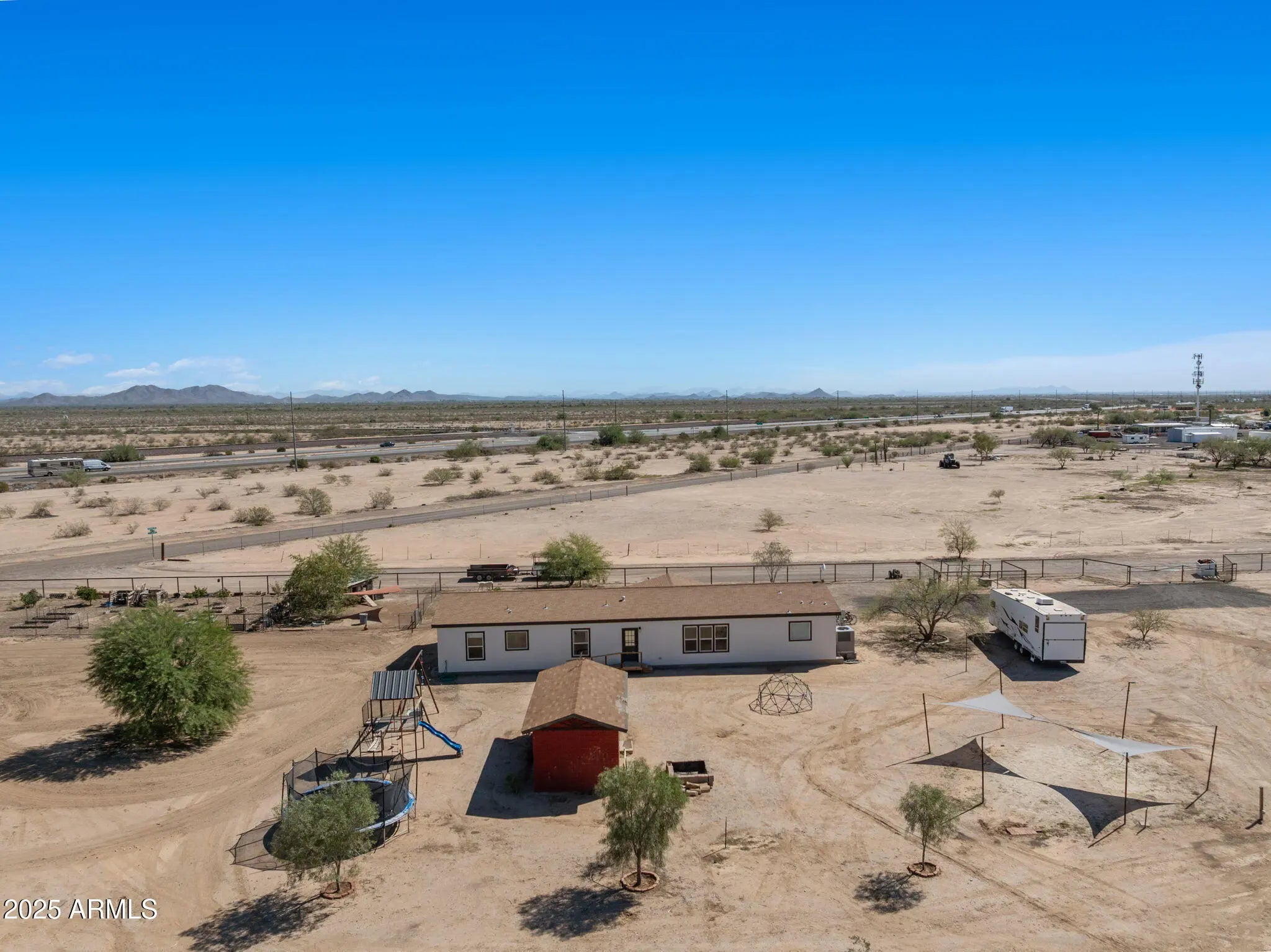 Escape to country living with this beautiful 2,128 sq ft home on 5 acres in Wittmann, Arizona—an incredible horse property with endless opportunities! This 4-bedroom, 2-bathroom home offers spacious living areas, a well-designed floor plan, and a large kitchen with stainless steel appliances. Outside, the property is thoughtfully set up and ready to make it your own. You'll find a charming brick storage/garden shed, a dedicated tack room, a garden area, and a chicken coop—all ready to support your rural lifestyle. For those needing space for projects, equipment, or hobbies, the massive 30' x 50' shop is a dream, featuring 14' high doors, 16' ceilings, and 400-amp service, while the home itself has 200-amp wiring and the tack room is equipped with 100 amps. The entire property is fenced with pipe and no-climb, and pipe horse corrals have been startedmaking it easy to customize the setup to your equestrian needs. With wide-open views and endless potential, this property offers the perfect blend of country charm, modern amenities, and space to grow!