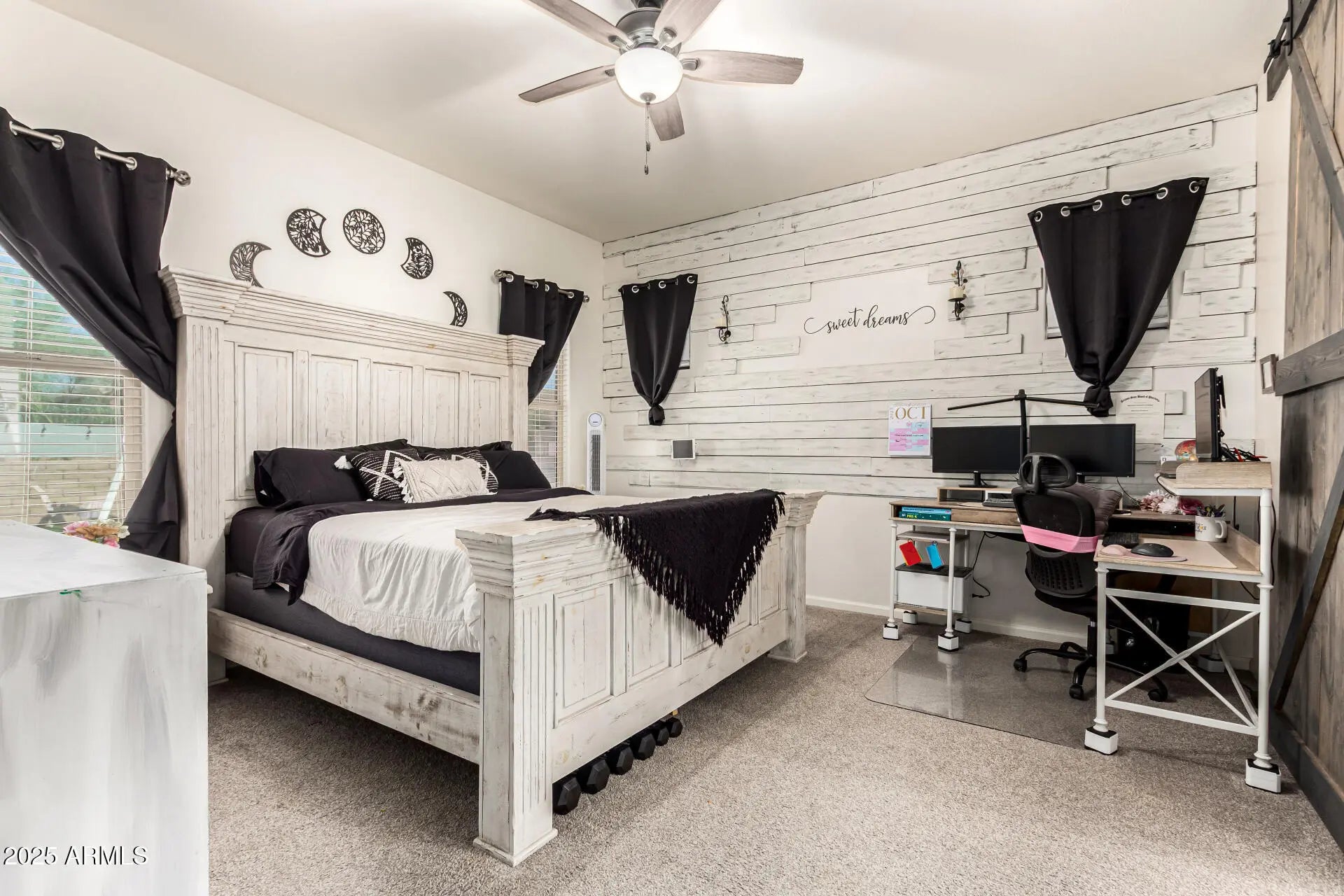 Welcome Home! 4 bed+ office, 2.5 bath Farmhouse style POOL home in Estrella Mountain Ranch! Upgrades galore- Spacious open bright layout paired with decorator accents, neutral paint, surround sound & multi-sliding doors to the amazing pool- Perfect for entertaining! The impressive kitchen boasts SS appliances, quartz counters, walk-in pantry, custom tile backsplash, recessed & pendant lights, white shaker cabinetry, and an island w/breakfast bar. The main bedroom has an ensuite with a barn door, dual vanities, & double walk-in closets. Enjoy the backyard oasis with a covered patio, artificial turf, pavers, & a sparkling pool! What a true beauty! 3 car tandem garage! Enjoy resort style living with 2 lakes, 2 rec centers w/ world class fitness centers & pools, water park, golf, hiking +