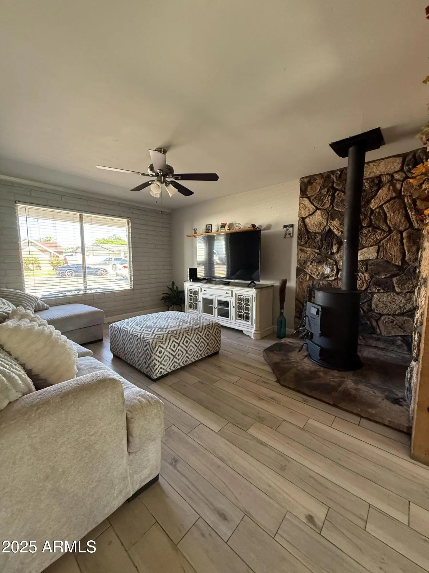 Beautifully updated 3 bed/2 bath Phoenix home! Open floor plan with tile flooring, fresh two-tone paint, and a cozy wood-burning fireplace with stone accents. Kitchen has crisp white cabinetry and island/breakfast bar. Master suite includes double sinks. Spacious backyard with block fencing and covered patio, plus $6K+ water softener/filtration system and reverse osmosis/alkaline system! This home qualifies for $0 down with a $17,500 grant—reach out for details! Prime location near schools, shopping, dining, I-10, I-17, and GCU.