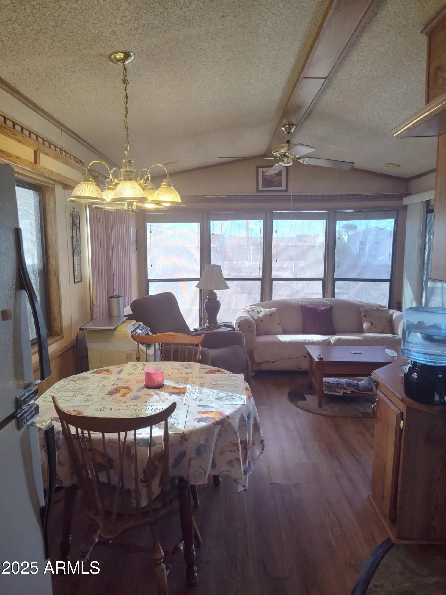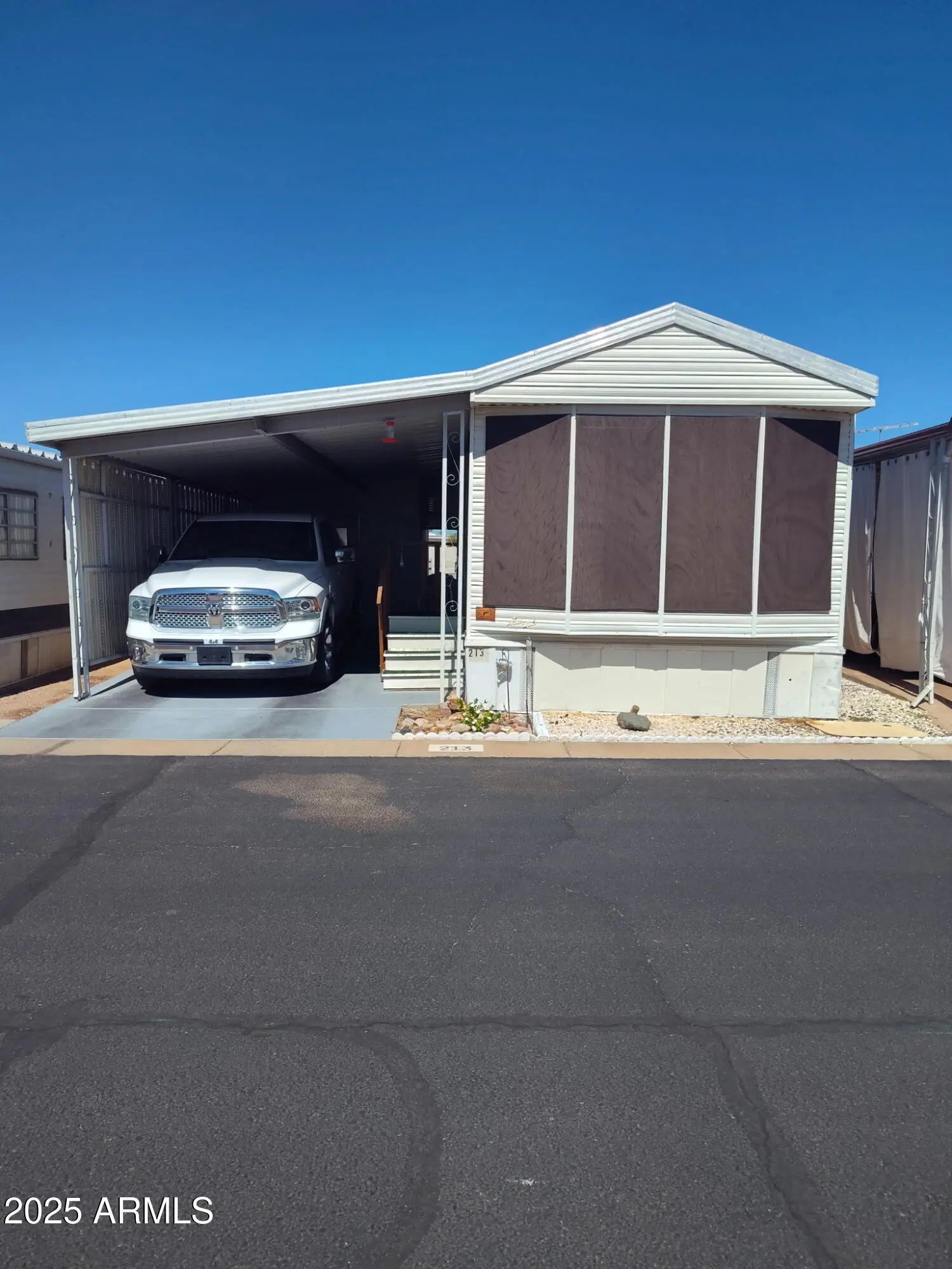 Charming Desert Retreat in 55+ Community with Scenic Views and Modern Comforts Welcome to this beautifully maintained home in a vibrant senior living community, designed for comfort, convenience, and active retirement living. Nestled in a peaceful desert setting, this residence offers both scenic mountain vistas and sparkling city views. Step inside to discover a spacious layout featuring wood laminate flooring, vaulted ceilings, and an abundance of natural light flowing through bay windows and a sliding glass door. Ceiling fans in both the bedroom and living room provide year-round comfort, complemented by central air conditioning and exterior sun screens for enhanced climate control. The thoughtfully designed U-shaped kitchen is a chef's delight.... showcasing ample cabinetry, a custom-shaped countertop, and a pass-through layout ideal for entertaining. A built-in hutch with glass cabinet doors adds charm and additional display space. Enjoy a relaxing soak in the full bathroom tub, while multiple closets, decorative shelving, and a storage-lined hallway ensure all your storage needs are met. Outside, a tall covered carport with awning easily accommodates a full-sized truck. The detached shed houses a full-size washer and dryer, offering added convenience. Community amenities include a refreshing pool and a welcoming atmosphere tailored for active 55+ living. Welcome to Parkhaven, a cozy corner where the living experience is shaped by amenities designed to meet both practical needs and leisure for those above 55. Parkhaven's clubhouse fosters community gatherings, featuring communal kitchens that foster bonds through shared meals. For your four-legged friends, a designated dog park awaits, offering a space for them to play. Versatile meeting facilities provide a backdrop for community engagement, while fitness enthusiasts can enjoy themselves in the well-equipped fitness center, and the hot tub serves as a retreat for relaxation. From practical laundry facilities to the library, Parkhaven seamlessly blends convenience with leisure. Outdoor camaraderie is encouraged with picnic and BBQ areas, and the recreation room becomes a hub for shared activities. Thoughtfully included restrooms and showers enhance daily comfort, RV storage caters to adventurers, and sports enthusiasts can engage in tennis, basketball, pickleball, and volleyball. Cap it all off with a refreshing dip in the pool, and Parkhaven emerges as more than a housing communityit's a place of shared experiences, creating a unique and enriching place to call home. Don't miss your chance to enjoy the best of desert living in this move-in ready gem!