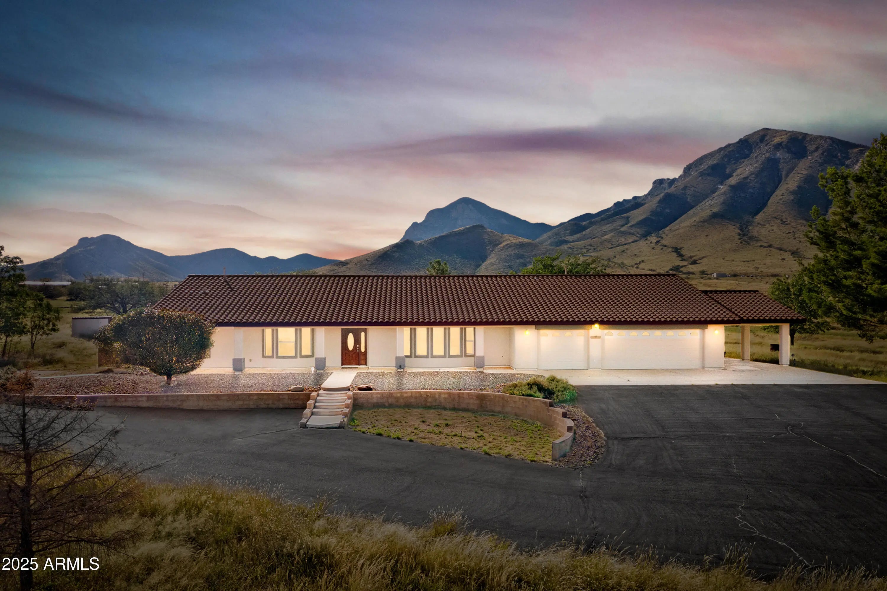 Welcome to your new magnificent estate on a 6-acre parcel located at the base of the mountains! Inside, the expansive and open living area boasts a kitchen that includes an extra-large kitchen island! The three bedrooms are generously sized, with the primary bedroom offering an unparalleled retreat—featuring a luxurious separate shower, a garden tub fit for royalty, and a spacious walk-in closet with multiple entries. One of the bedrooms grants access to a smaller fenced yard. Relax in the beautiful AZ Room! The impressive laundry room is equipped with a dedicated folding area and a convenient laundry sink. But wait, there's more—an attached workshop and a heated/cooled bonus room invite endless possibilities! And if that isn't enough, you also have an RV garage and so much more!