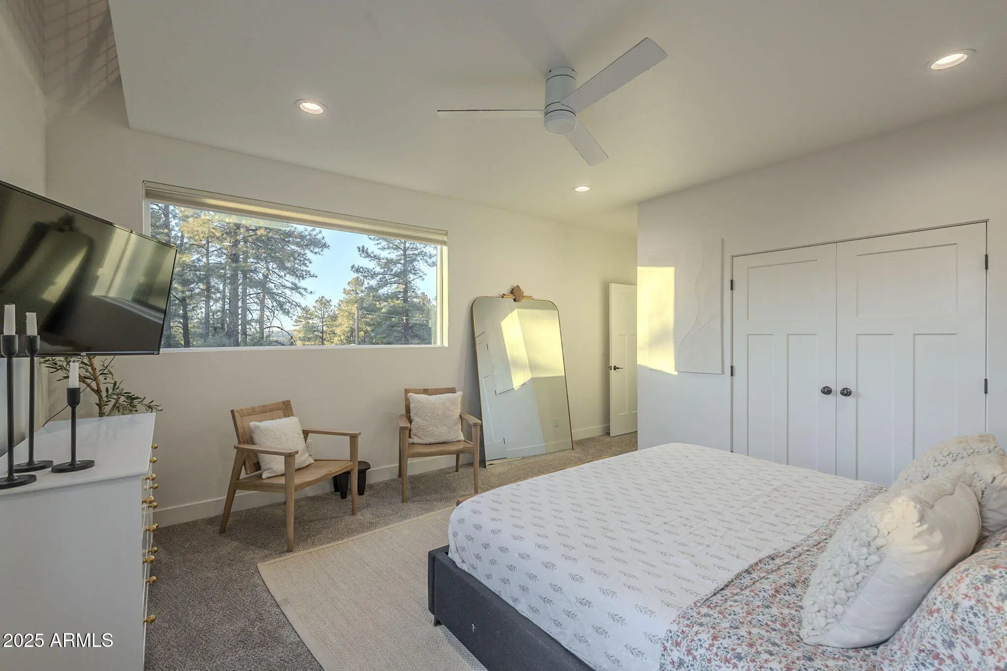 HUGE PRICE CORRECTION under market value and priced to sell quickly! Welcome to this beautifully built Flagstaff cabin, nestled in a secluded forest retreat. Constructed in 2021, this unique property offers 3 bedrooms and 2 bathrooms with an open kitchen filled with natural light from abundant windows. Professionally styled with tasteful finishes, the home also features a striking loft overlooking the main living area. Equipped with a Tesla battery and solar for complete off-grid power and a new AC unit for comfortable summer living, this cabin has all the luxury amenities you need for a serene, eco-friendly lifestyle. The home can come completely furnished making this a true, turnkey cabin or Airbnb for the next owners. Do not miss out on this opportunity