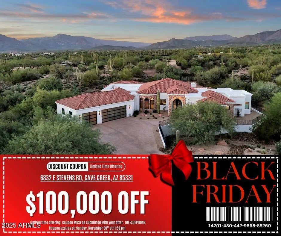 Welcome to this stunning, fully remodeled residence offering the perfect blend of luxury with an open-concept design, featuring light neutral tones that create a bright, airy flow with no closed-off spaces. Nestled on a private .98 acre cul-de-sac lot, this 4,656 sq ft home features 4 spacious bedrooms plus a den and bonus room, and 4.5 bathrooms. Every detail has been thoughtfully designed with top-to-bottom upgrades. A true chef's kitchen showcasing a Thermador Freedom induction cooktop, dual disposals, Thermador refrigerator/freezer, and custom Quartz countertops anchored by a dramatic 10-foot island, making this the ultimate centerpiece of the home for entertaining. The Primary Retreat boasts dual closets with custom California Closet built-ins, giving you exceptional organization and space for everything. Throughout much of the home you'll find high-end wood laminate plank flooring, 8' x 9.5" in size, offering a distinctive and upscale look. Escape outdoors to a serene desert setting and a generously sized backyard complete with a brand-new 14,000-gallon pool built by Presidential Pools (2025), perfect for year-round enjoyment under the Arizona sun. The property comes with NO HOA, giving you the freedom to truly make this home your own. Enjoy the unique lifestyle Cave Creek offers...horseback riding trails, golf courses, hiking and biking in the stunning Sonoran Desert or check out local art galleries, live music venues, and some of the Valley's best western-style restaurants and saloons. This home is a rare opportunity to experience the best of Cave Creek living, space, style, and location!