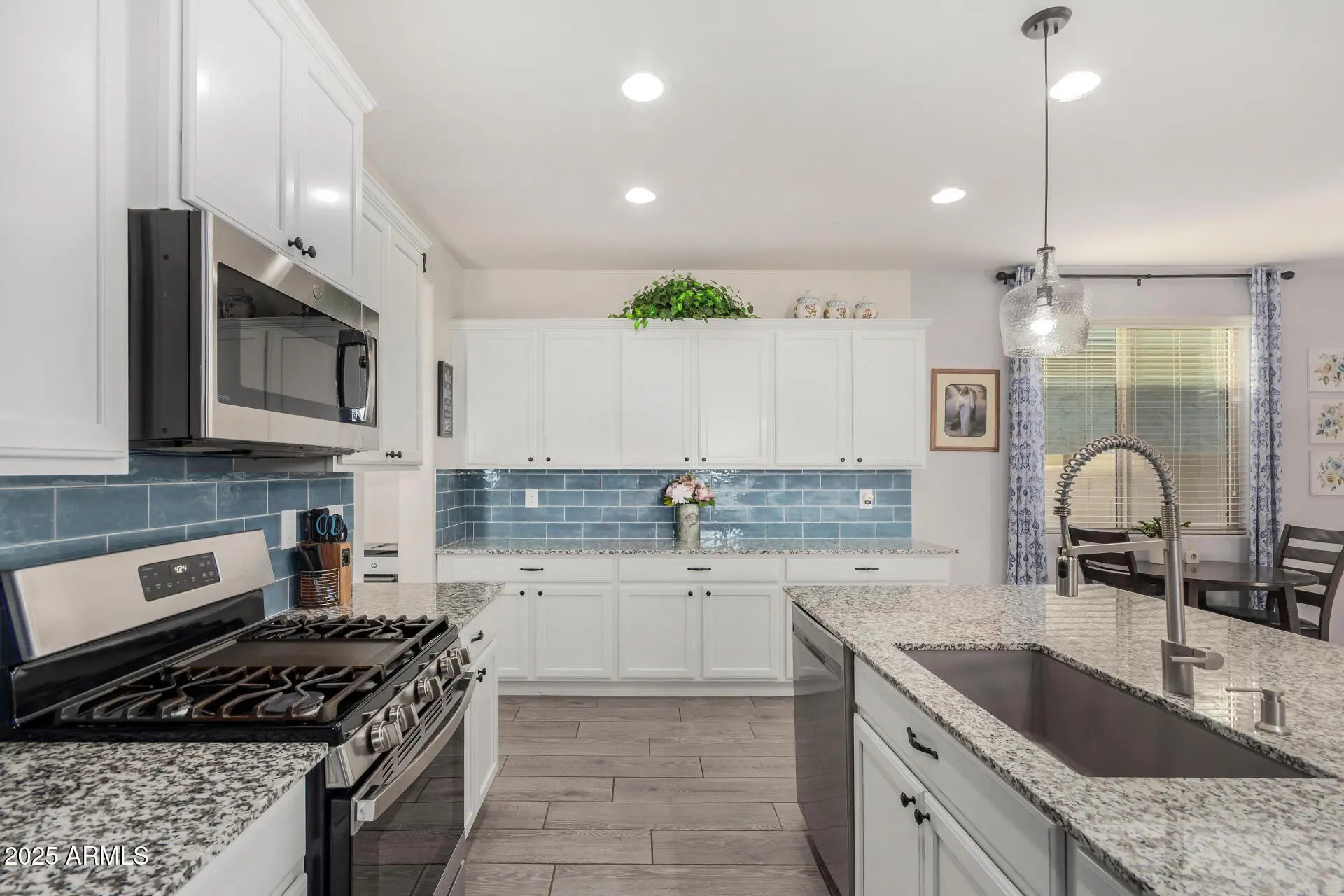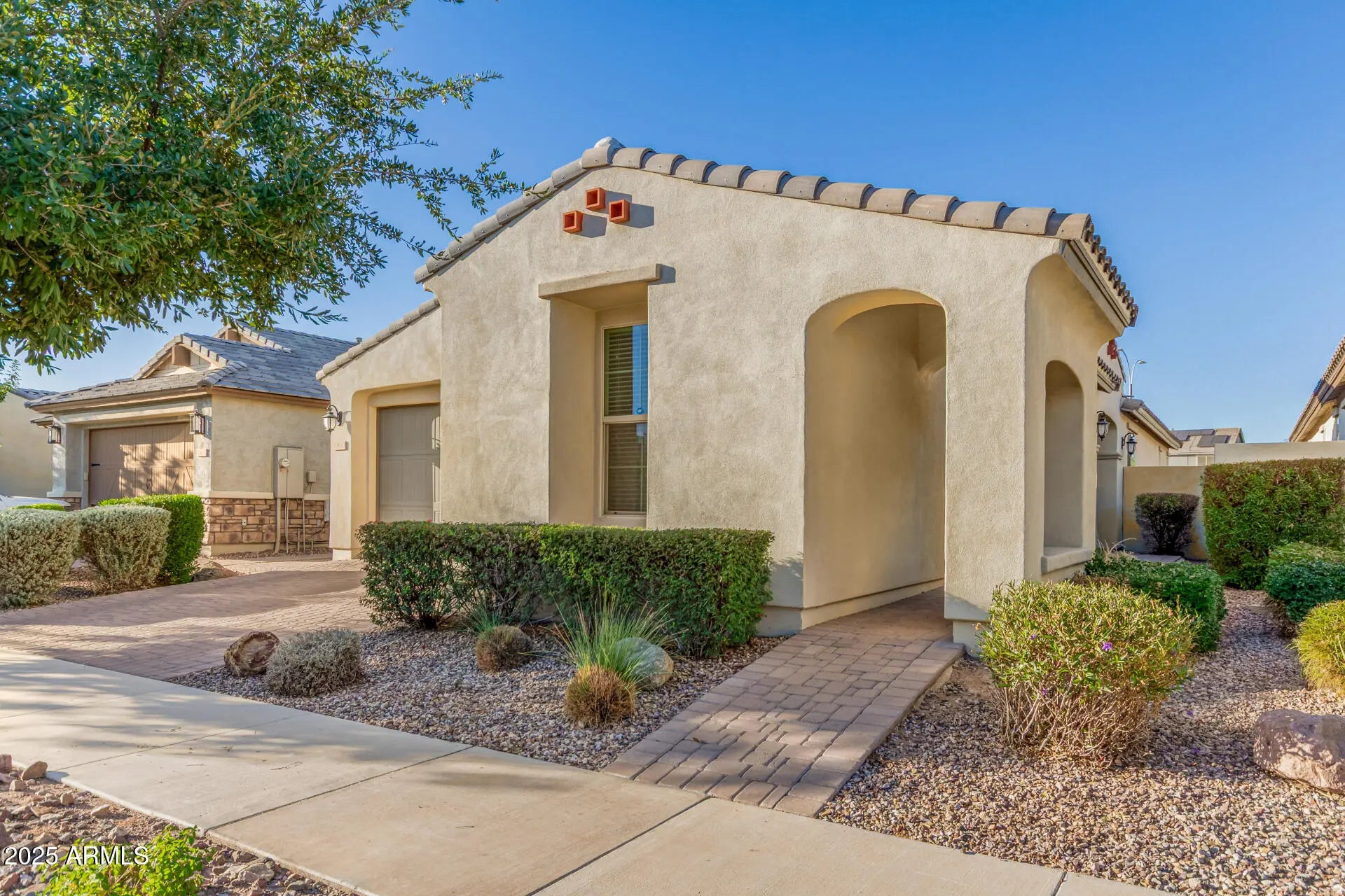 A beautiful 2 bed, 2 bath residence in Encore at Eastmark is now for sale! Featuring charming curb appeal, a low-care landscape, 2 car garage, and a paver driveway, it's sure to be the home for you! Discover formal dining & living areas w/wood-look tile flooring and neutral palette throughout. The fabulous kitchen is comprised of ample cabinetry w/crown molding, granite counters, tile backsplash, SS appliances, pendant lighting, SS appliances, HUGE island/breakfast bar. Primary bedroom showcases a walk-in closet and a private en-suite w/dual sinks plus a sliding barn door. You'll also find a cozy den perfect for an office or reading nook. Also including a lovely backyard, covered patio and artificial turf, this home is a true gem! Don't miss out!