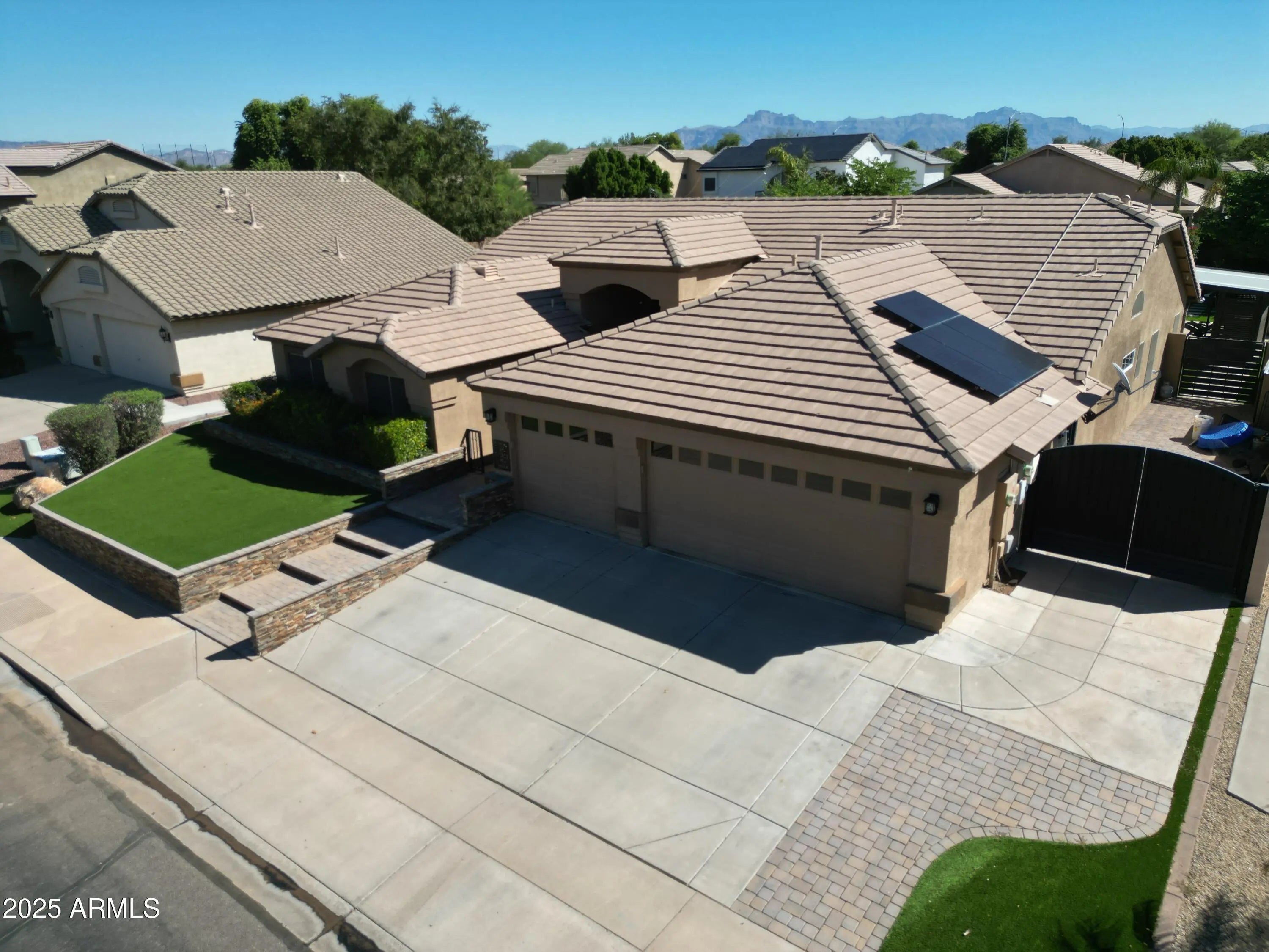 SELLER IS OFFERING UP TO $20K IN SELLER CONCESSIONS!! Amazing house in east Mesa. This 4 bed, 2.5 bath, 3000 sq ft home is pride of ownership! Once you drive up you can see why this house is different. Beautiful front yard landscaping with synthetic grass, iron front gate and extra pavers off of the driveway. Entry door is a custom 11ft iron door. Inside is full of custom upgrades. Master bathroom has been fully updated complete with walk in shower and huge closet. Entire home has oversized marble type tile or grey hardwood flooring. 7 different areas have had new custom cabinets installed and granite countertops. Iron work continues with matching pantry door, oversized chandelier and accent gating. RV gate is fully remote controlled with a quick and quite entry/access. Backyard is stunning complete with 2 spanning pergolas, built in BBQ, 10 person heated above ground spa, putting green, pool, outdoor fireplace, Bluetooth sound system and visually stunning lighting make the yard a must see!! Hurry before it is gone...